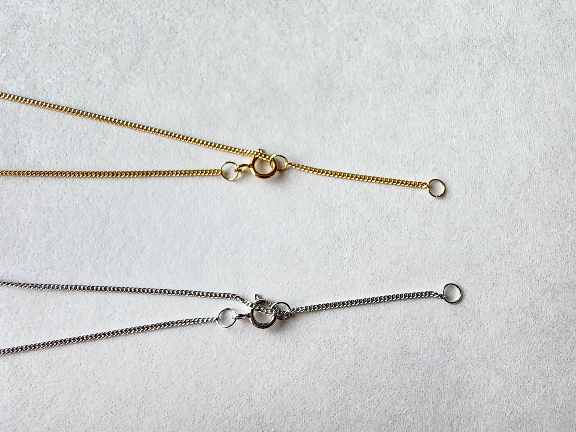 The chain measures 43cm in length and features an adjustable loop at 40cm, allowing you to easily switch between the two lengths for added versatility.
