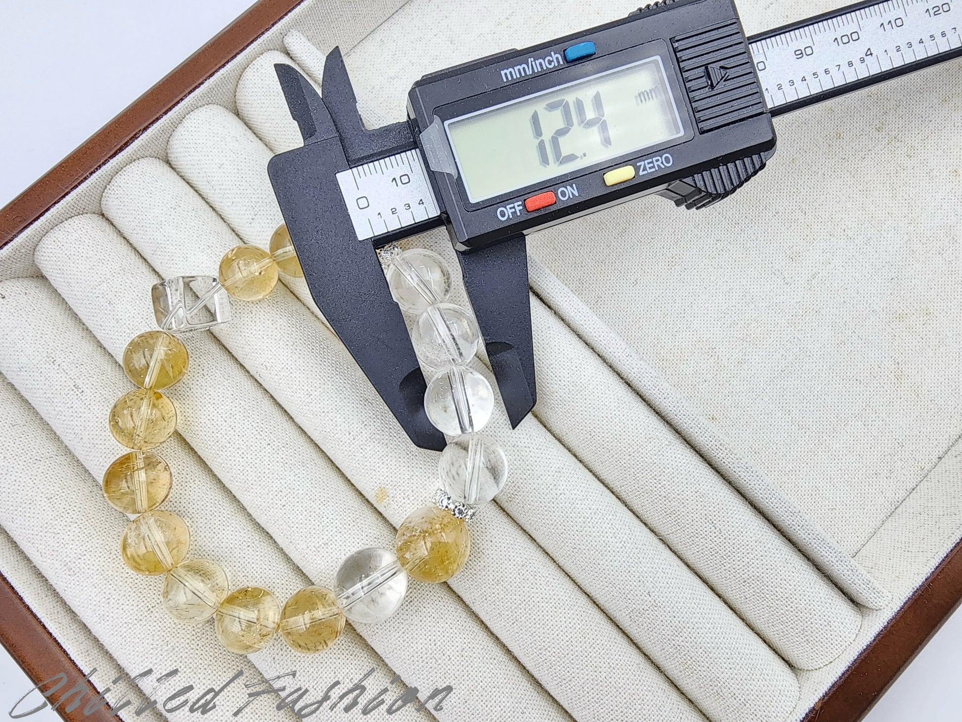 Please note: This bracelet is made with natural Citrine and Clear Quartz beads, each showcasing its own unique textures, internal inclusions, and color variations. Due to their natural origin, some beads may have minor surface imperfections such as pits, fine lines, or uneven textures. These features are not flaws but part of the stone’s organic beauty. Slight variations in bead size (approximately 10.4mm to 12.8mm) and appearance are to be expected, making each bracelet truly one of a kind. We strive to represent the piece as accurately as possible, but lighting and screen settings may cause slight color differences.