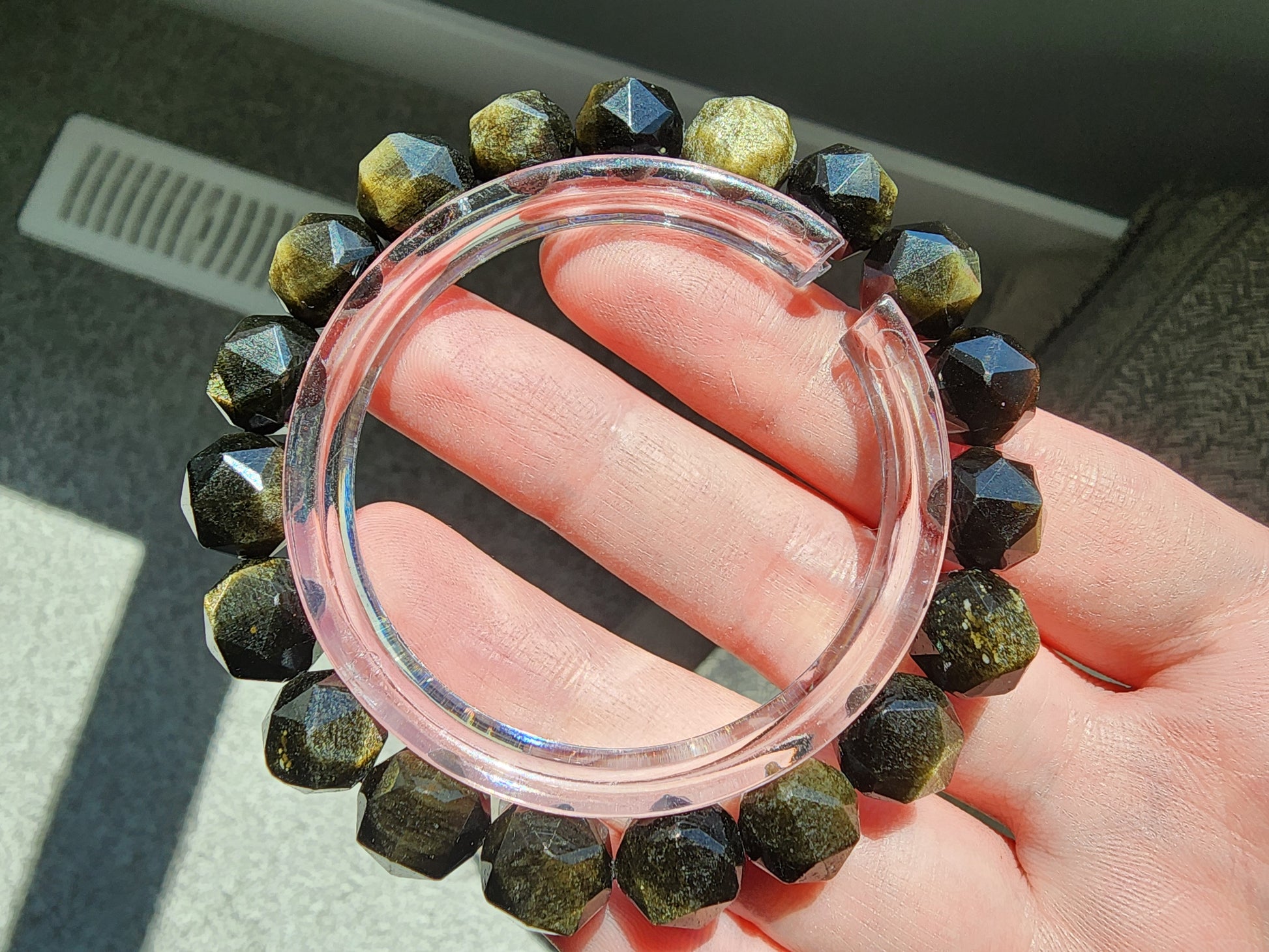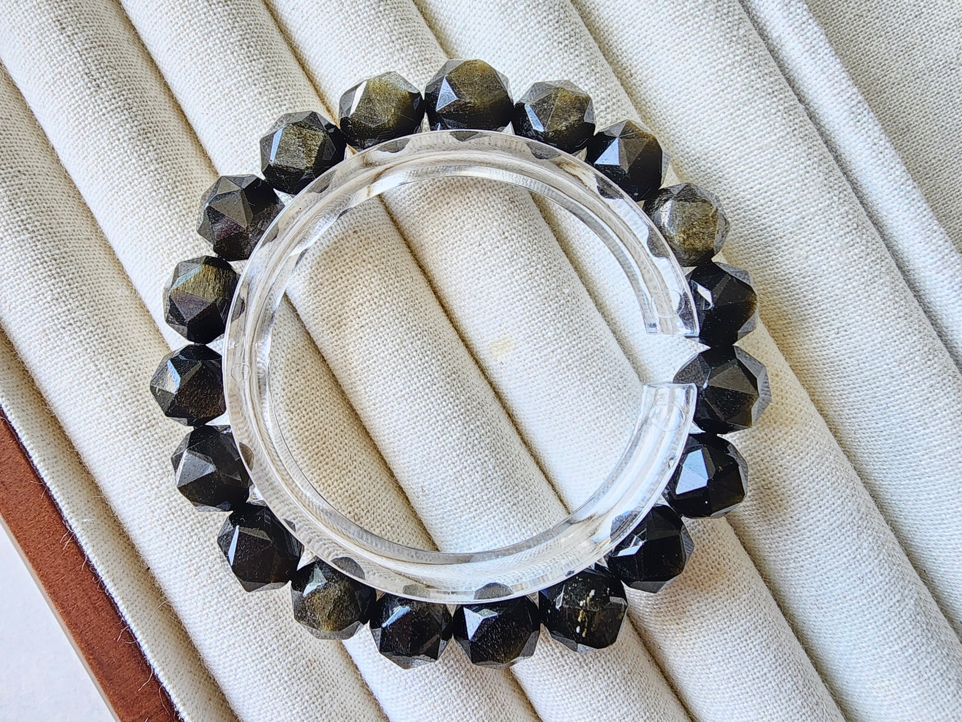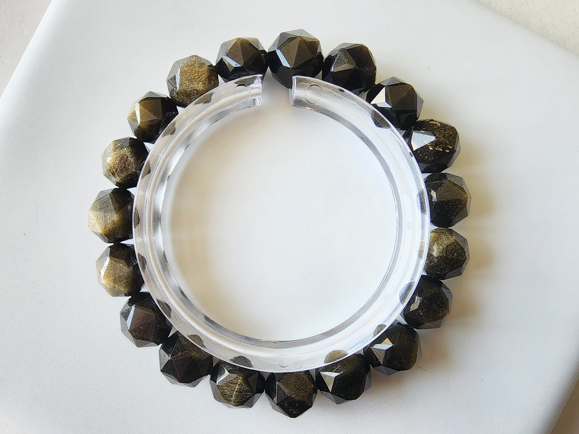 [Bracelet] 10mm Faceted Gold Sheen Obsidian Bracelet