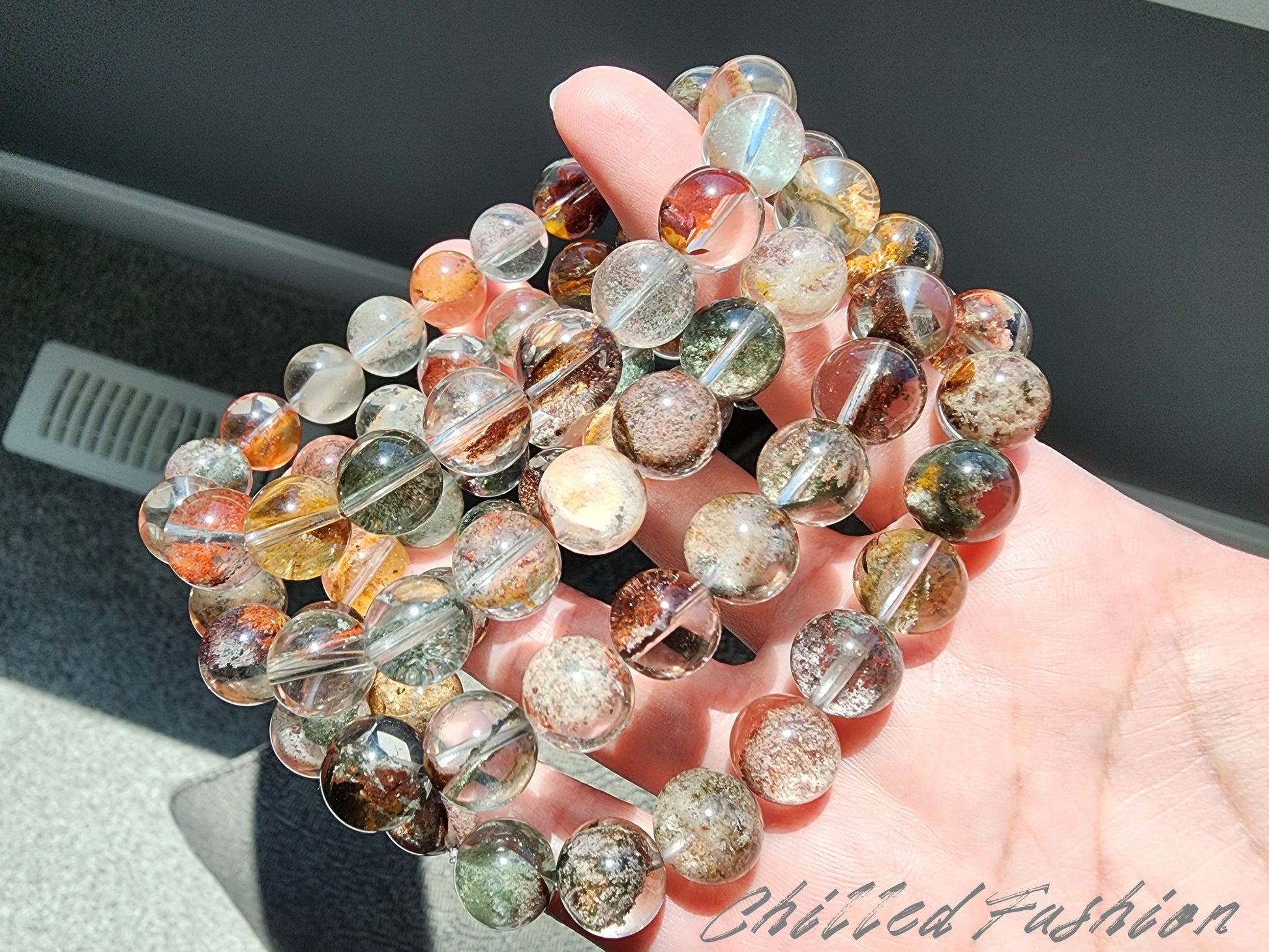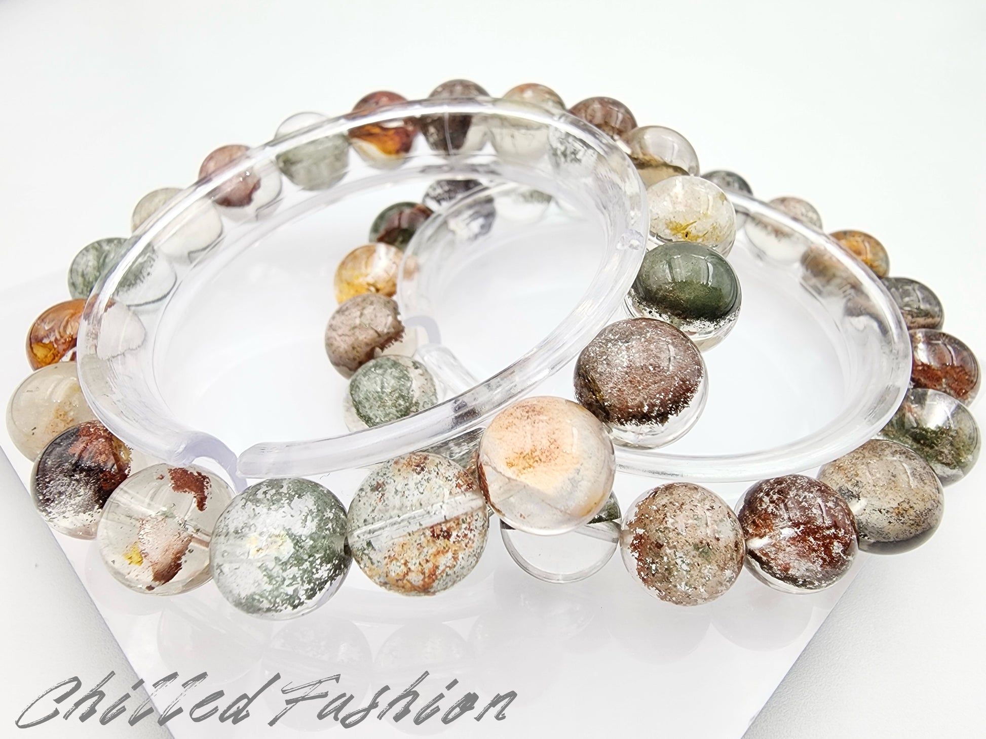 Please note: These bracelets are made from natural Colorful Garden Phantom Quartz, and each bead features its own unique color and internal inclusions. As no two stones are exactly alike, variations in hue, transparency, and inner patterns are to be expected. Some beads may have minor surface imperfections such as natural pits or texture differences—these are part of the stone’s organic formation and add to its one-of-a-kind character. We carefully select each bead to ensure overall harmony, while honoring the individuality of every piece.