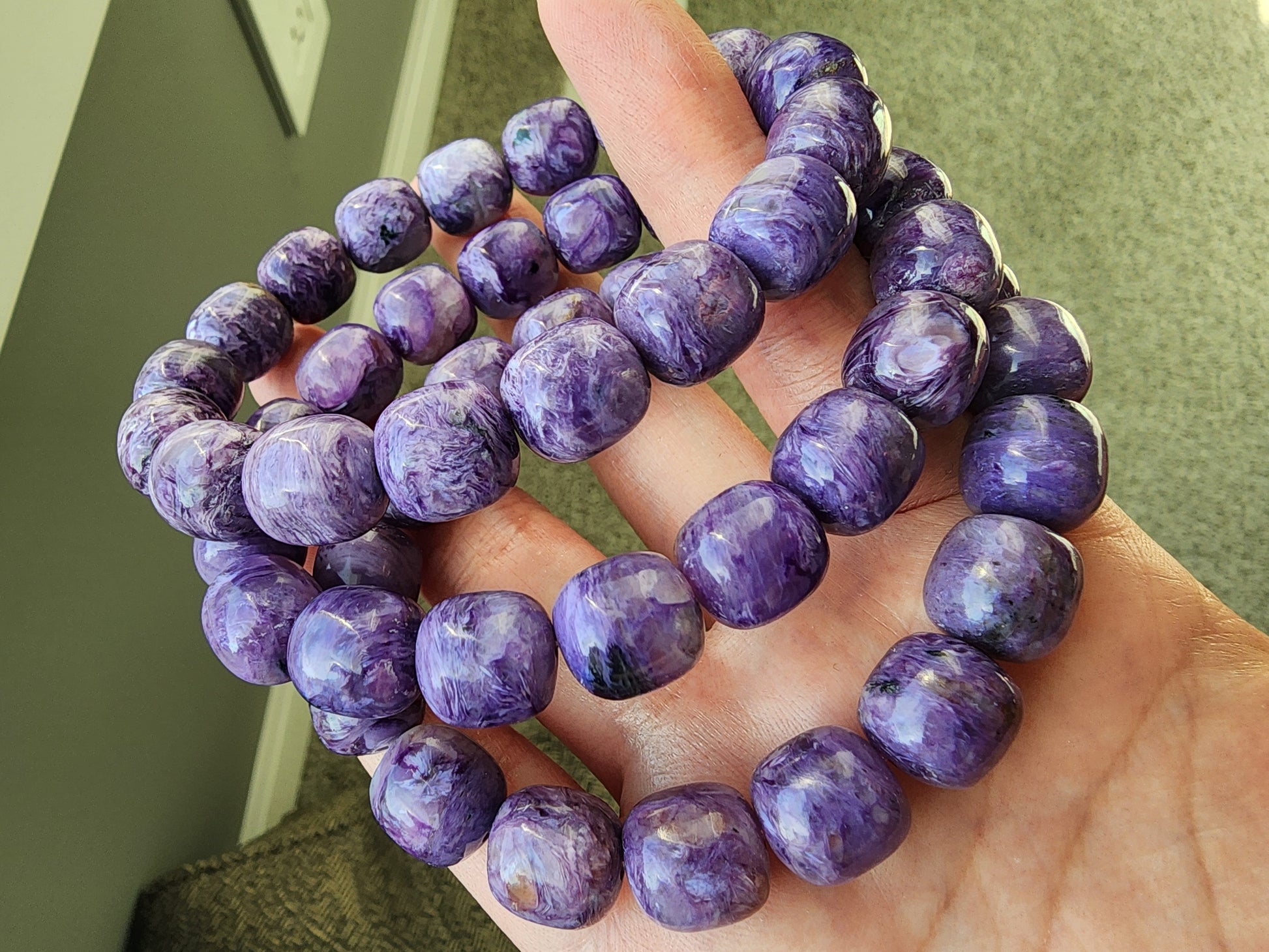 Please note that this Charoite bracelet is made from natural gemstones, and each bead is unique in color, pattern, and texture. Variations in swirling patterns, inclusions, and slight differences in size are part of the stone’s natural characteristics, adding to its individuality and charm. Additionally, since these are natural beads, the surface may not be perfectly smooth and may have minor imperfections such as small pits or natural textures. These do not affect the beauty or durability of the bracelet but rather highlight its authenticity. Due to the handmade nature of the piece, slight variations may occur. To maintain its luster, avoid prolonged exposure to water, chemicals, or direct sunlight. If you have any questions, feel free to reach out before purchasing!