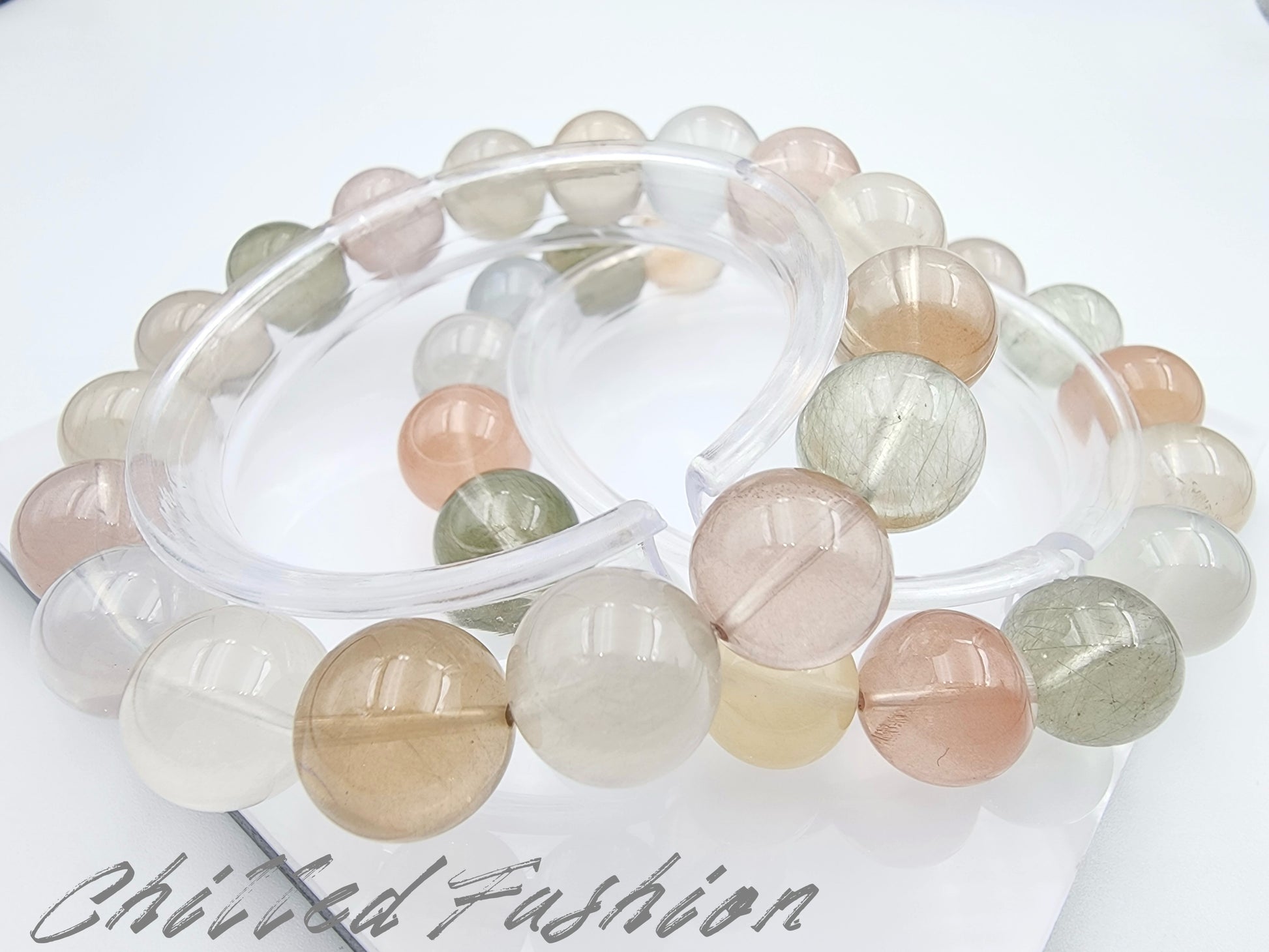 [Bracelet] 12mm Multicolor Rabbit Hair Quartz Bracelet