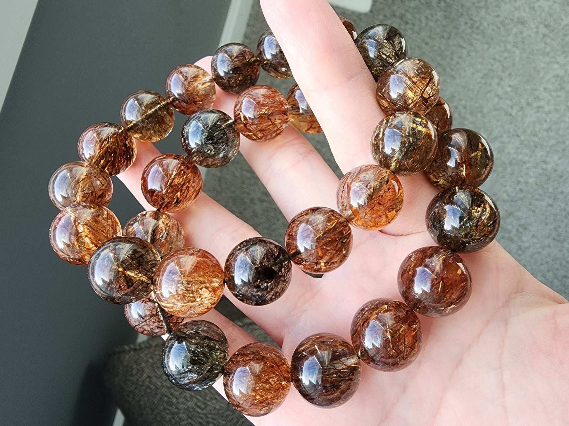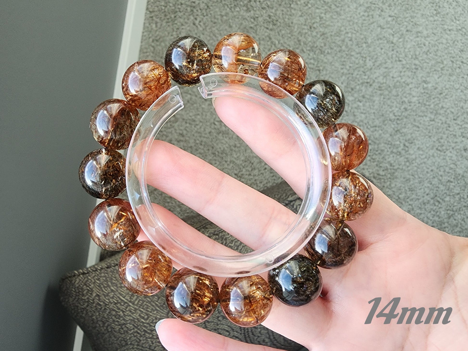[Bracelet] 14mm Black Gold Rutilated Quartz Bracelet