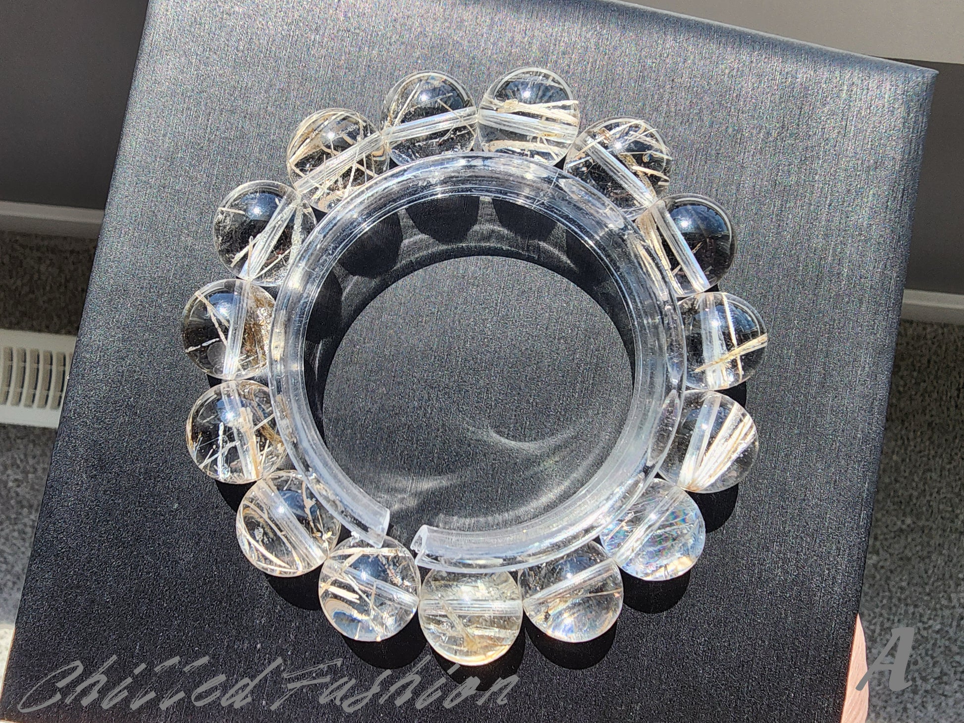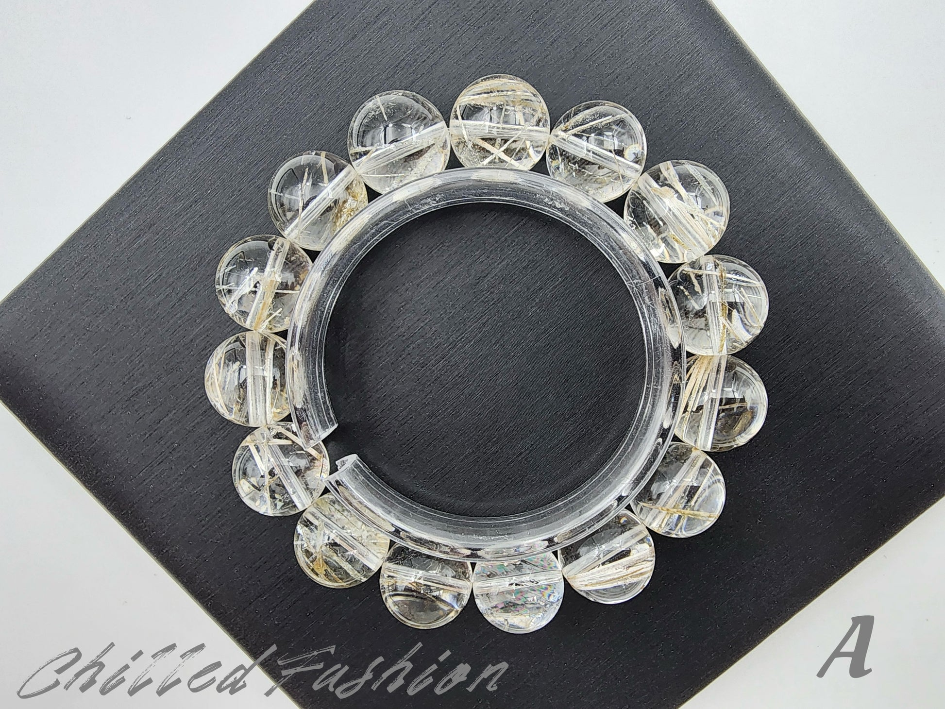 [Bracelet] 15mm Brazilian Snow Frost Rutilated Quartz Bracelet