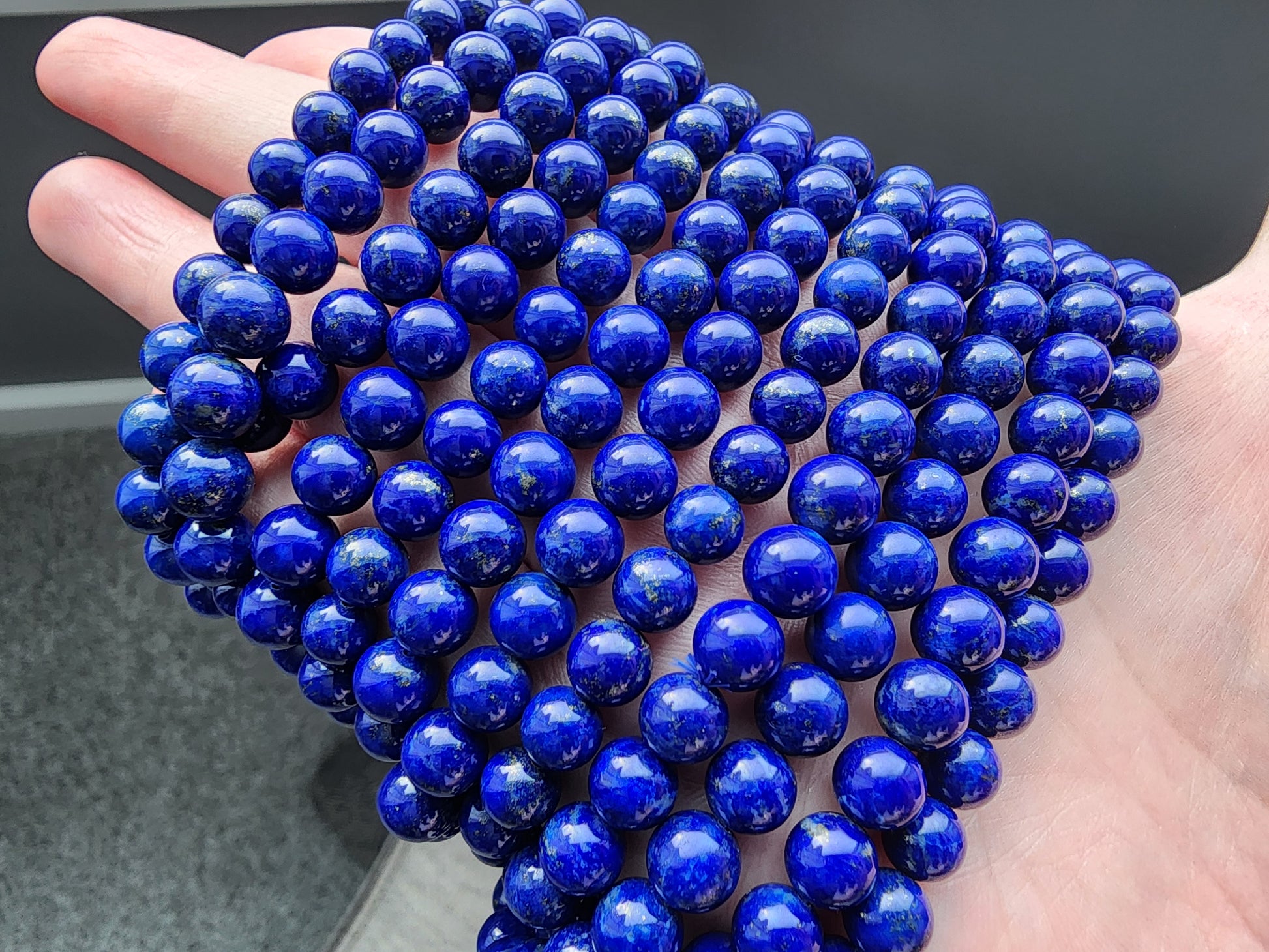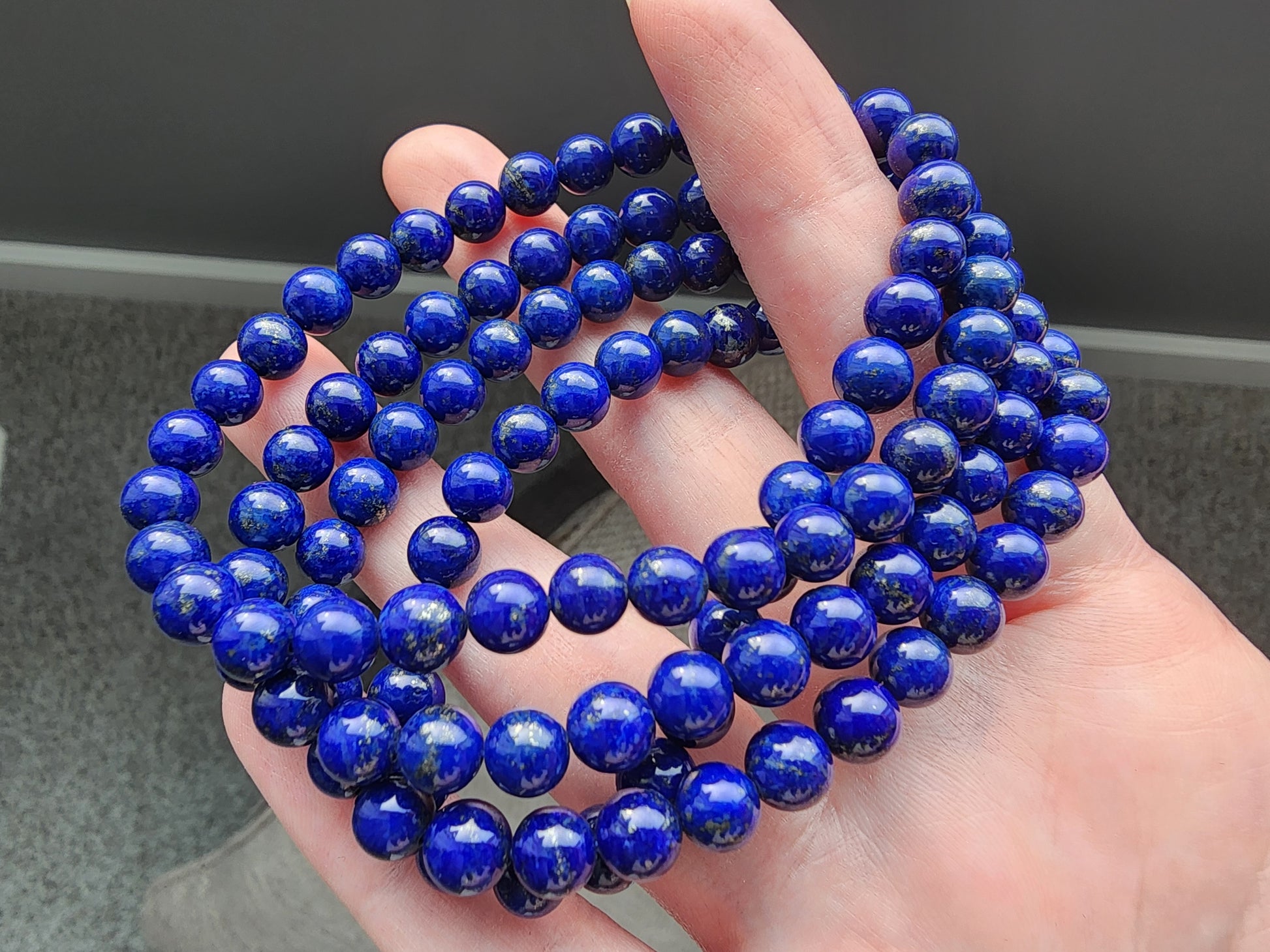 Please note that these Lapis Lazuli Four-Layer Bracelets are crafted with natural 6mm gemstone beads, and as such, slight variations in color, texture, and inclusions, such as golden pyrite flecks, are to be expected. Additionally, the surface of the beads may feature minor imperfections like small pits or uneven textures, which are natural characteristics of genuine stones and add to their unique charm. The elastic string used for the multi-wrap design ensures comfort and versatility but may require gentle handling to maintain durability. Thank you for appreciating the beauty and individuality of handmade, natural gemstone jewelry.