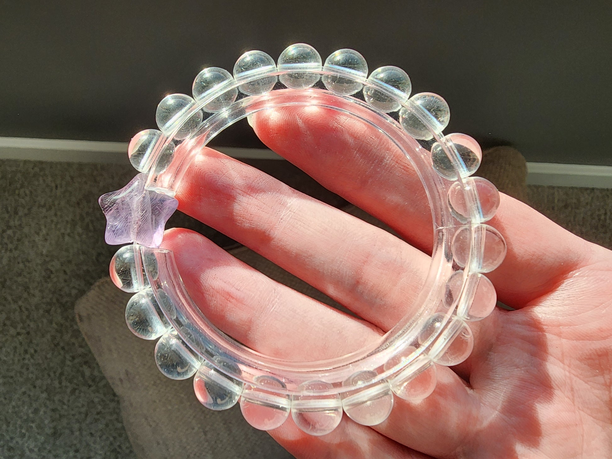 [Bracelet] 8mm Clear Quartz Bracelet with Amethyst Star Bead