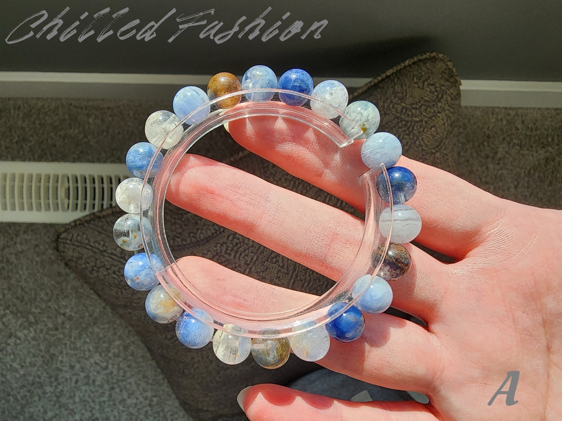 Please note: Each Dreamy Creamy Dumortierite bead features natural variations in color, inclusions, and texture—ranging from soft milky blue to deeper denim tones, sometimes with cloudy or translucent areas. These unique patterns are part of the stone’s natural formation and not considered flaws. Slight surface imperfections may also be present and are a normal result of the stone’s raw character. These natural characteristics make every bracelet beautifully one of a kind.