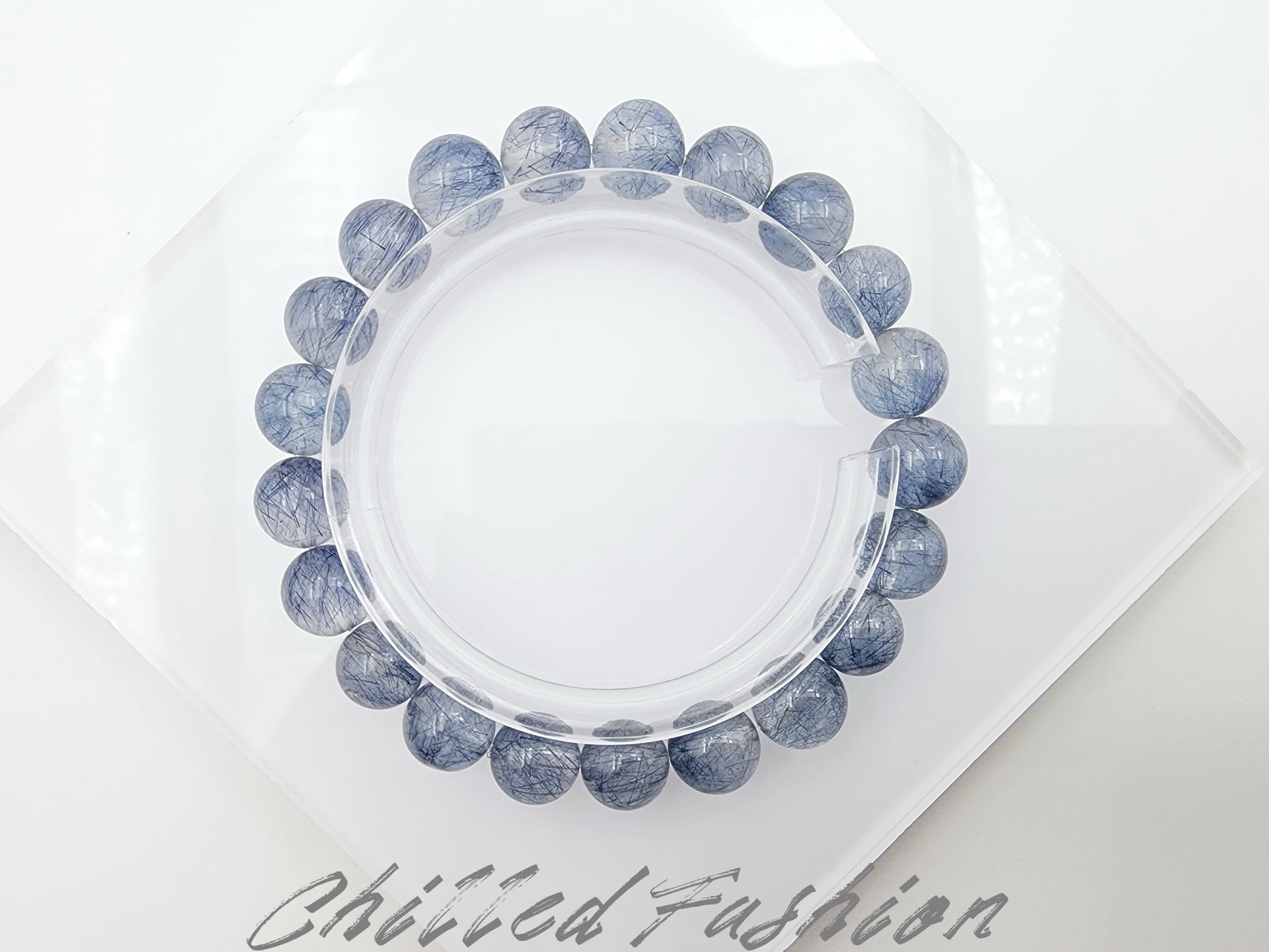 Please note: This bracelet is made with natural Blue Rabbit Hair Quartz, and each bead may display variations in color intensity, internal thread-like inclusions, and surface texture. These unique features are not flaws but part of the stone’s natural formation, contributing to its distinctive, ethereal appearance. Minor surface marks or inclusions are common in genuine quartz and highlight the organic beauty of each piece. We appreciate your understanding that every bracelet is truly one of a kind.