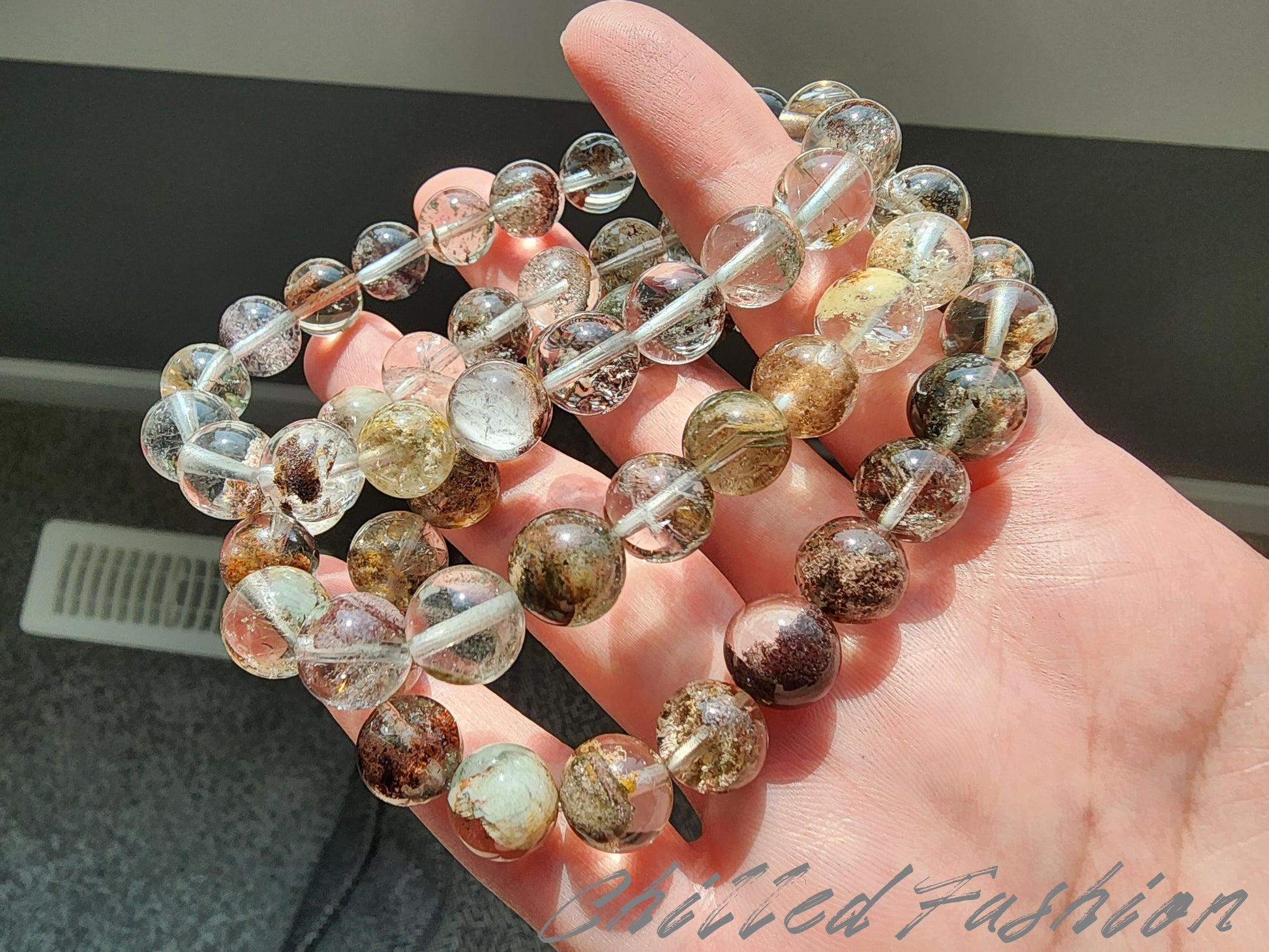 Please note that these Phantom Quartz bracelets are made with natural stones, and each bead may feature unique inclusions, color variations, or slight surface imperfections. These are not flaws but part of the stone’s natural character, reflecting the way it formed over time. As every bracelet is made from naturally occurring quartz, no two pieces will look exactly the same. We appreciate your understanding of the beauty in nature’s individuality.