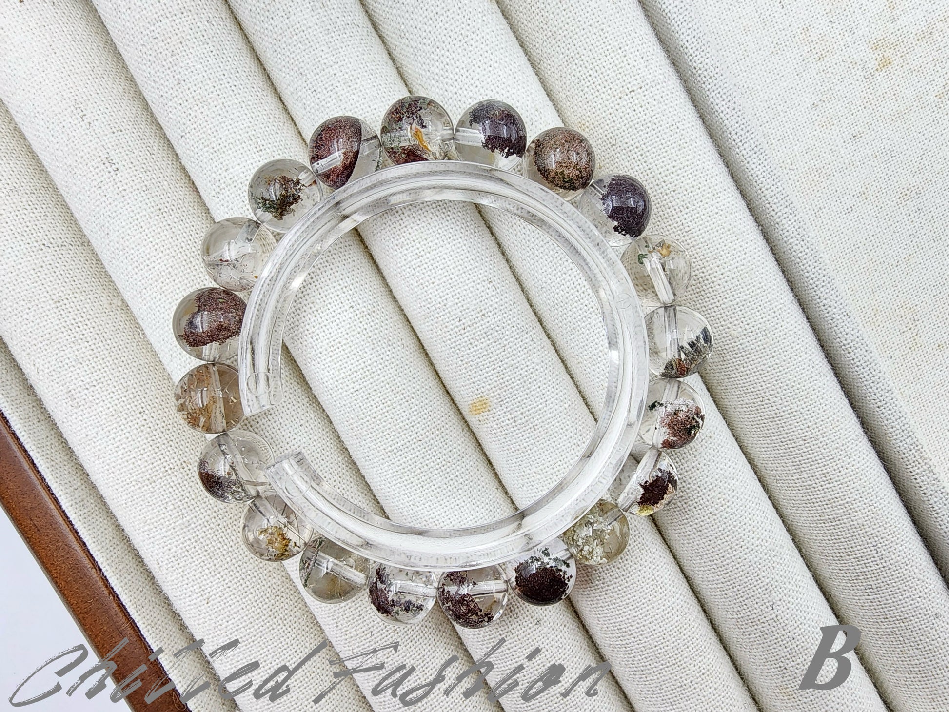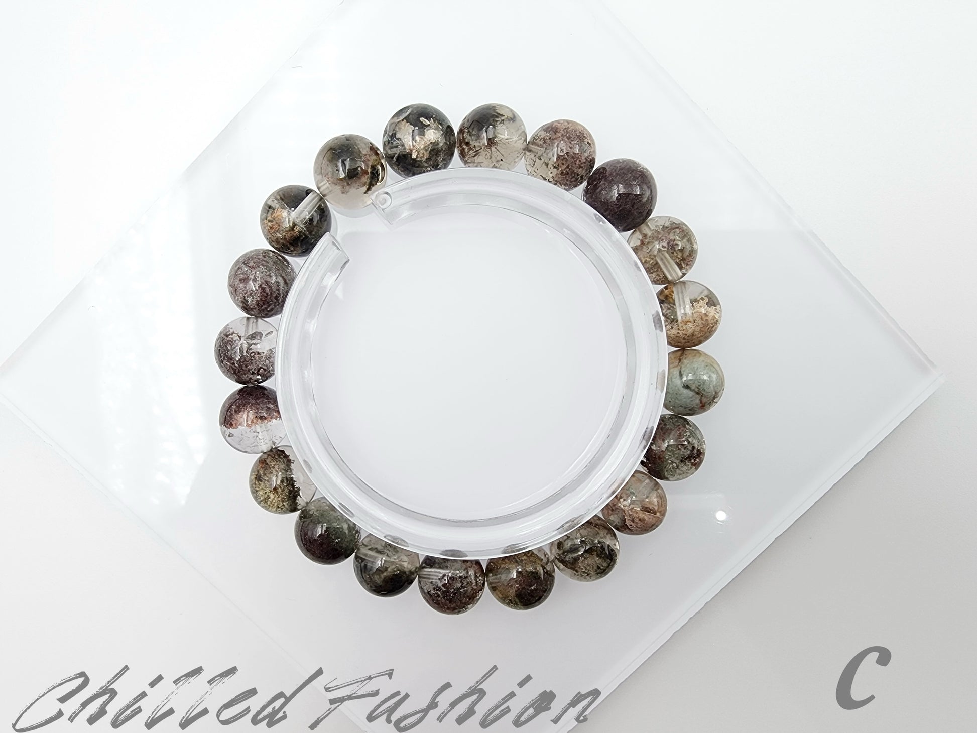 Each of these Phantom Quartz bracelets features natural mineral inclusions suspended within clear quartz beads, forming intricate and earthy patterns. With tones ranging from deep browns to soft greens and grays, every bead reflects the quiet beauty of nature in its natural form. Phantom Quartz is often associated with personal growth and transformation, believed to help release old patterns and encourage progress on one’s journey. No two bracelets are exactly alike, making each piece a meaningful and grounding companion in both style and spirit.