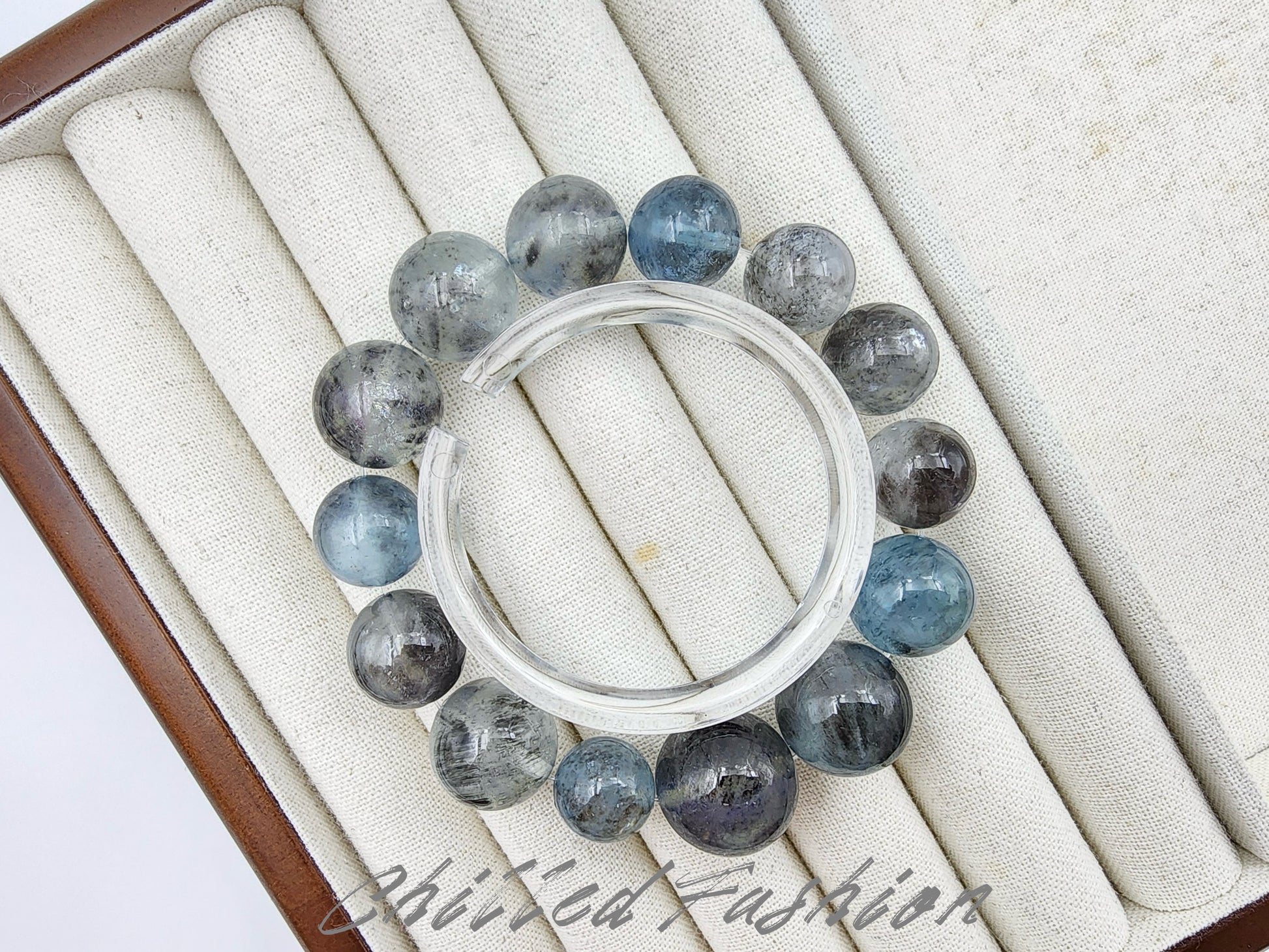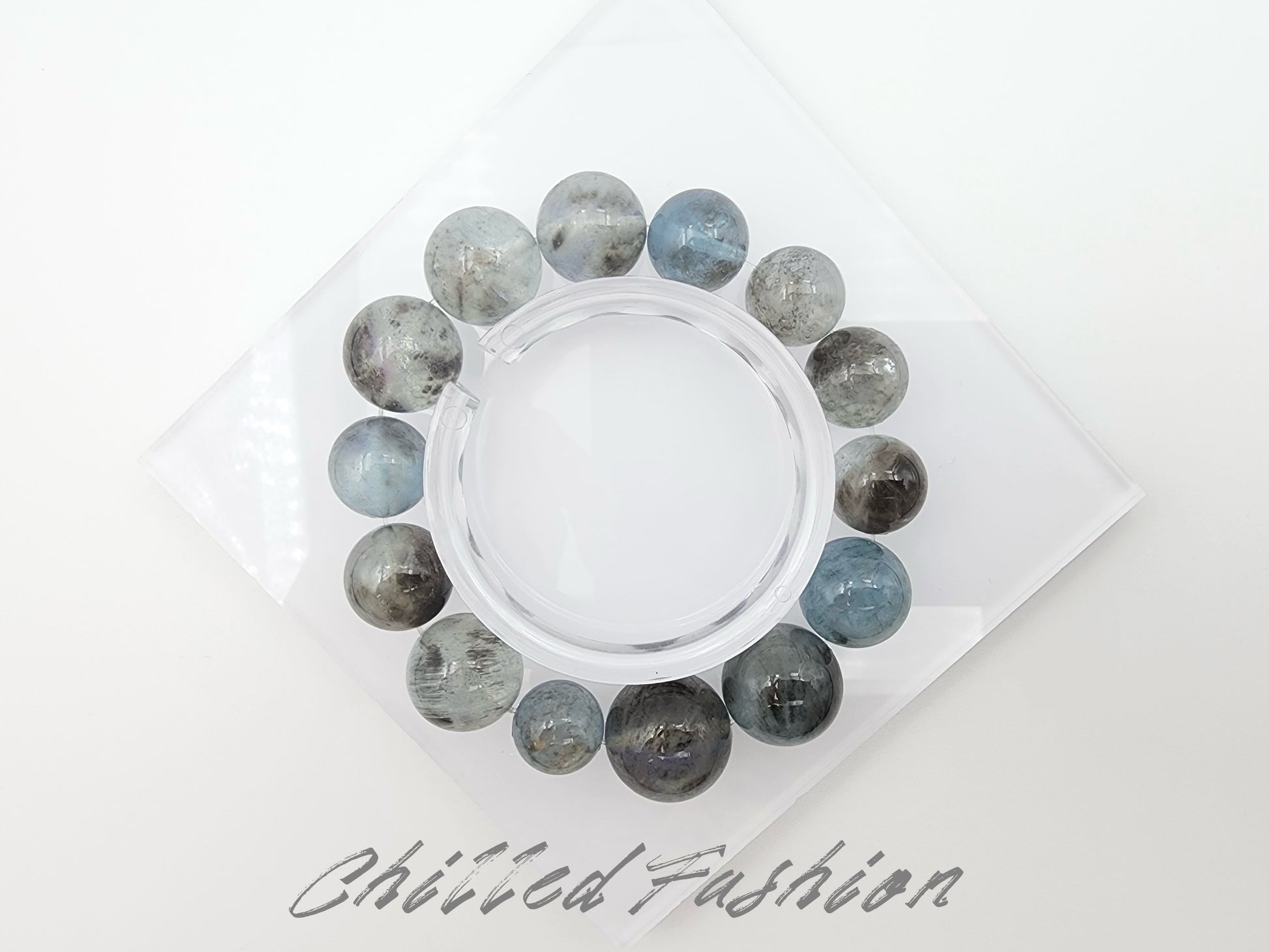 Please note that due to the natural origin of the Black Flash Aquamarine stones, each bead may feature unique inclusions, patterns, or surface imperfections. These variations add to the individuality and charm of the bracelet, making each piece one-of-a-kind. The iridescent flashes and natural textures are characteristics of this special gemstone, and slight differences in appearance should be expected.