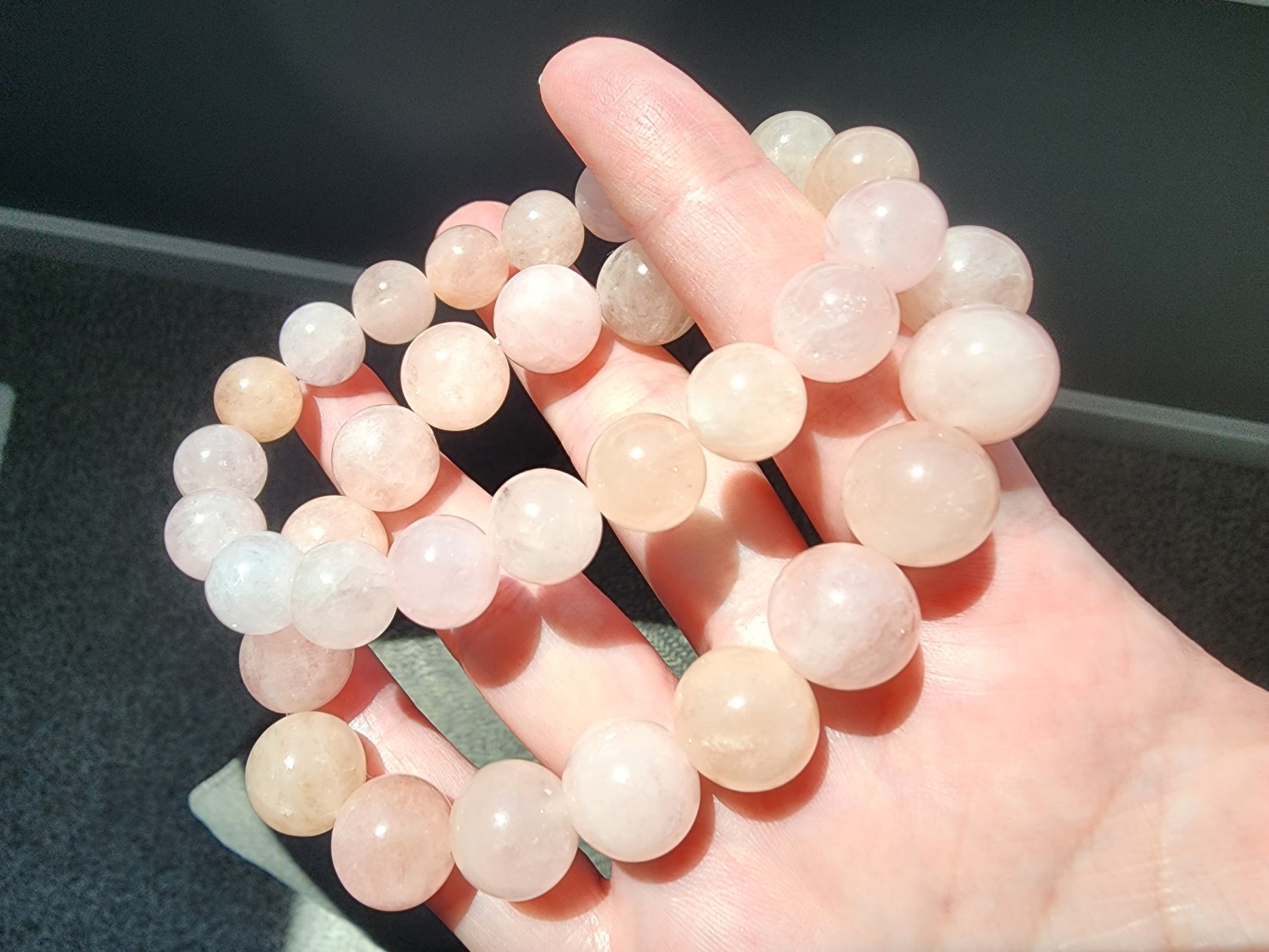 Embrace the beauty of nature's handiwork! These Pink Morganite round bead bracelets are crafted with genuine gemstones, each unique with variations in color saturation and surface texture. Some beads may have natural inclusions or minor surface imperfections, reflecting the inherent character of these crystals.