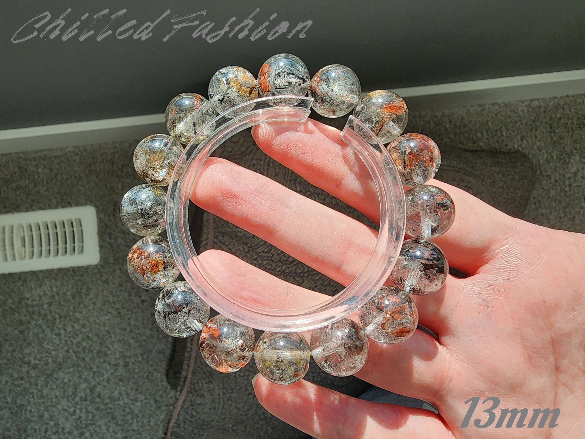 Please note that each Brazilian Thorn Rose Skeletal Herkimer Quartz bracelet is made with natural crystals, and no two beads are exactly alike. Variations in internal skeletal patterns, color distribution, surface textures, and natural inclusions are normal and reflect the unique formation of the stone. These characteristics are part of its raw and organic beauty, and are not considered flaws.