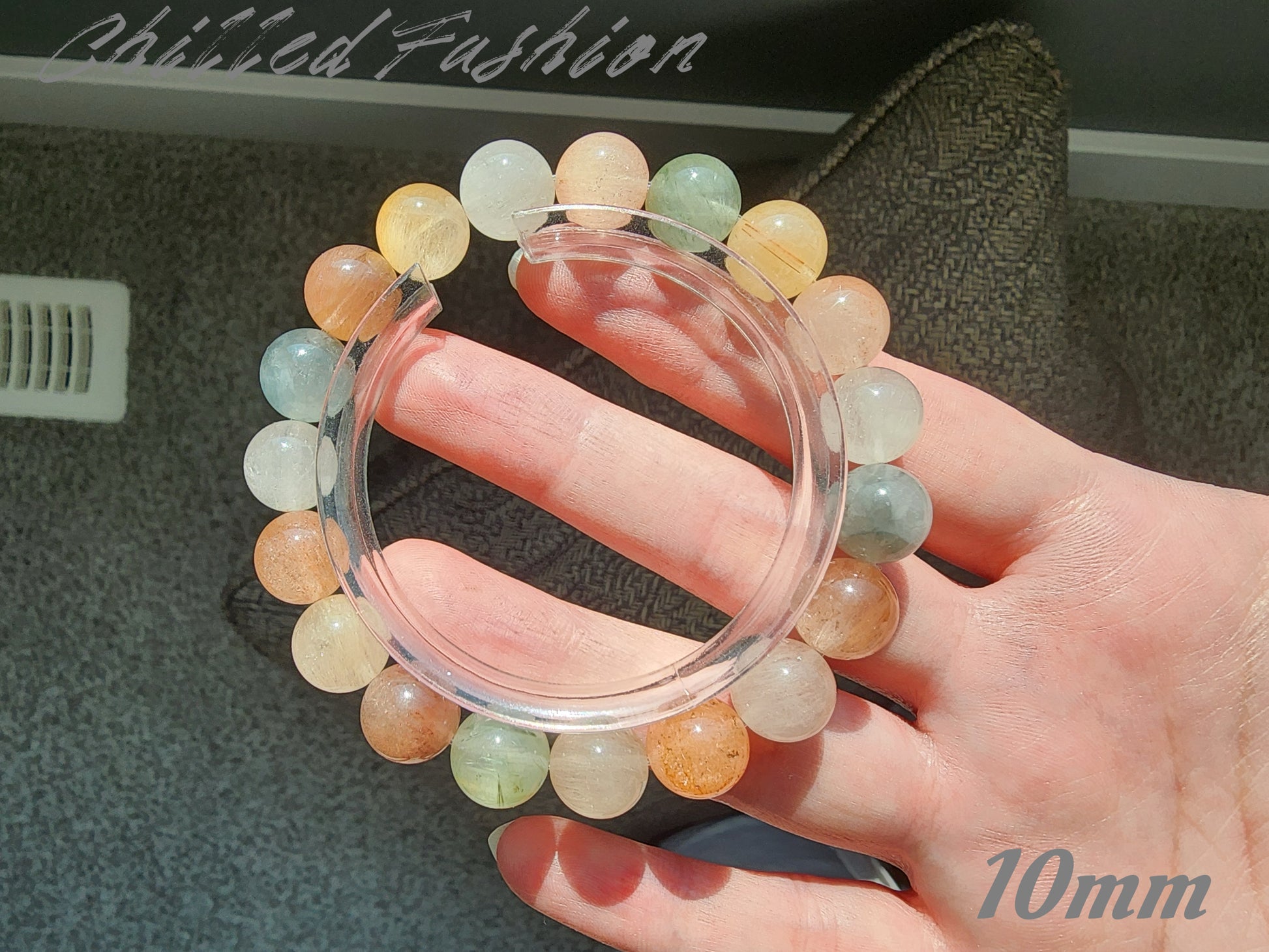 Celebrate nature's unique beauty with our Colorful Rabbit Hair Quartz Bracelet! Each bead boasts a one-of-a-kind color combination, showcasing the natural inclusions and textures of this captivating gemstone. As with all natural products, slight variations and imperfections may be present, adding to the charm and authenticity of this piece.