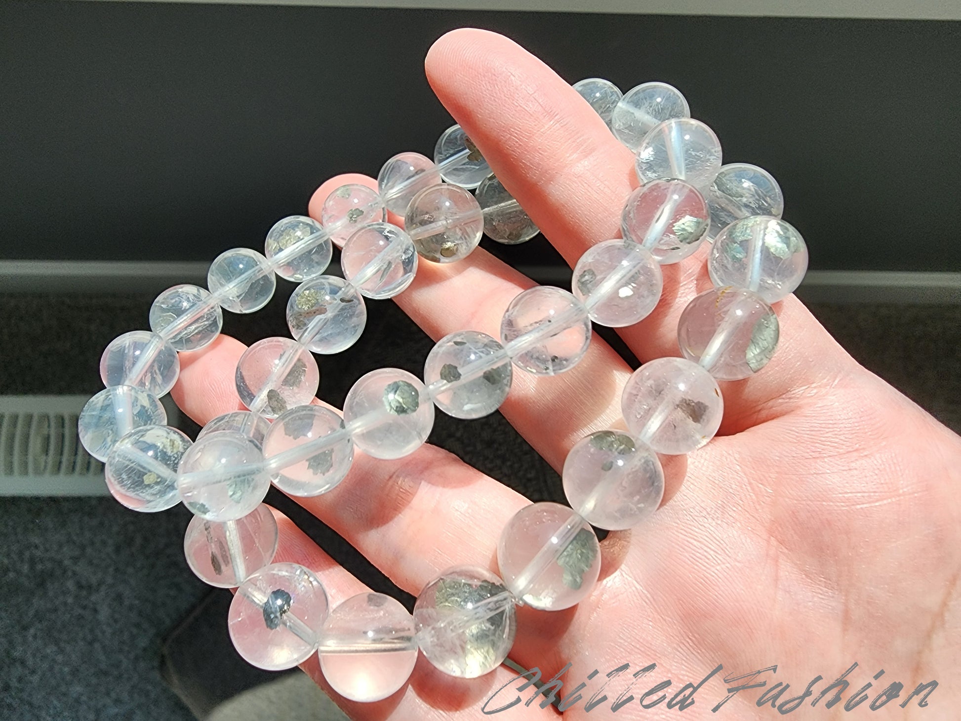 Please Note: Each bracelet is made with natural Chalcopyrite inclusions, meaning variations in bead clarity, inclusion patterns, and surface textures are expected. Some beads may have visible mineral inclusions, unique internal features, or slight surface imperfections due to the natural formation of the stone. These characteristics are not flaws but part of the bracelet’s authenticity and uniqueness. Please handle with care and avoid exposure to harsh chemicals or prolonged water contact to maintain its natural beauty.