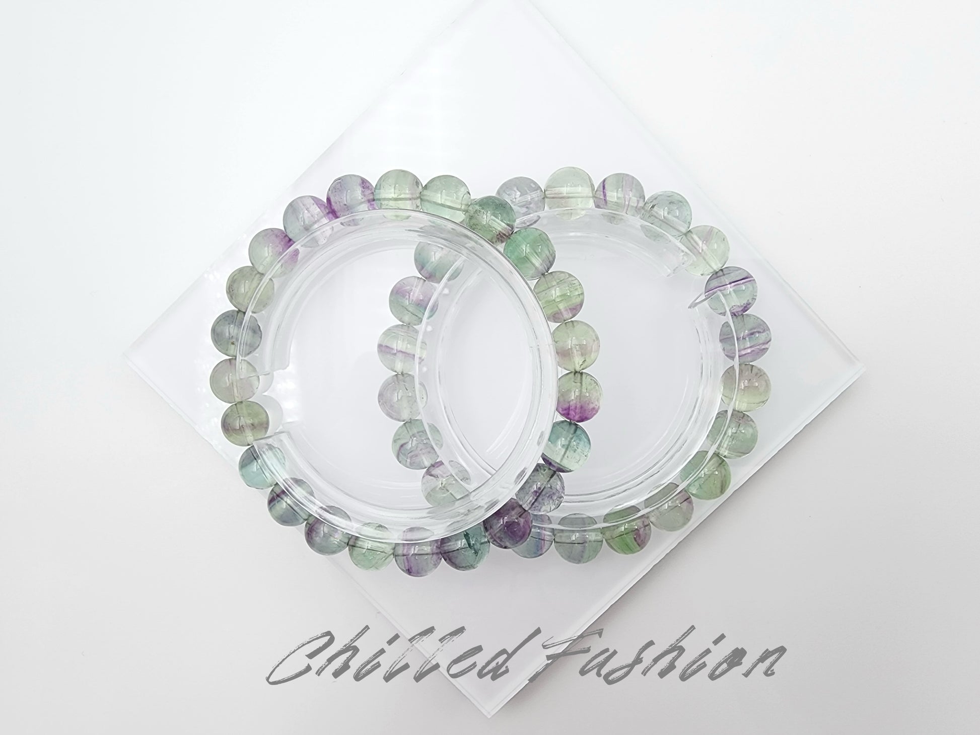 Please note that due to the natural variations in Fluorite, each Dreamy Rainbow Fluorite bracelet is unique, with slight differences in color patterns and bead sizes. As these beads are crafted from natural stone, they may contain inclusions and surface imperfections, which add to their unique character and beauty. Handle your bracelet with care to preserve its quality; avoid exposure to harsh chemicals, extreme temperatures, and prolonged sunlight. Clean gently with a soft cloth to maintain its luster. Embrace the unique charm and positive energy that these beautiful Fluorite beads bring into your life.