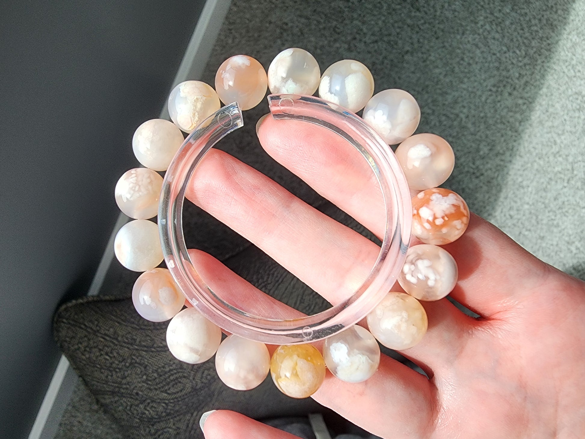Please note that this bracelet is made from natural Cherry Blossom Agate stones. As such, each bead is unique and may contain natural inclusions. The surface of the beads may not be perfectly smooth due to the natural characteristics of the stone. These features contribute to the natural beauty of the bracelet and make each piece one-of-a-kind. Thank you for understanding the unique nature of natural gemstones.