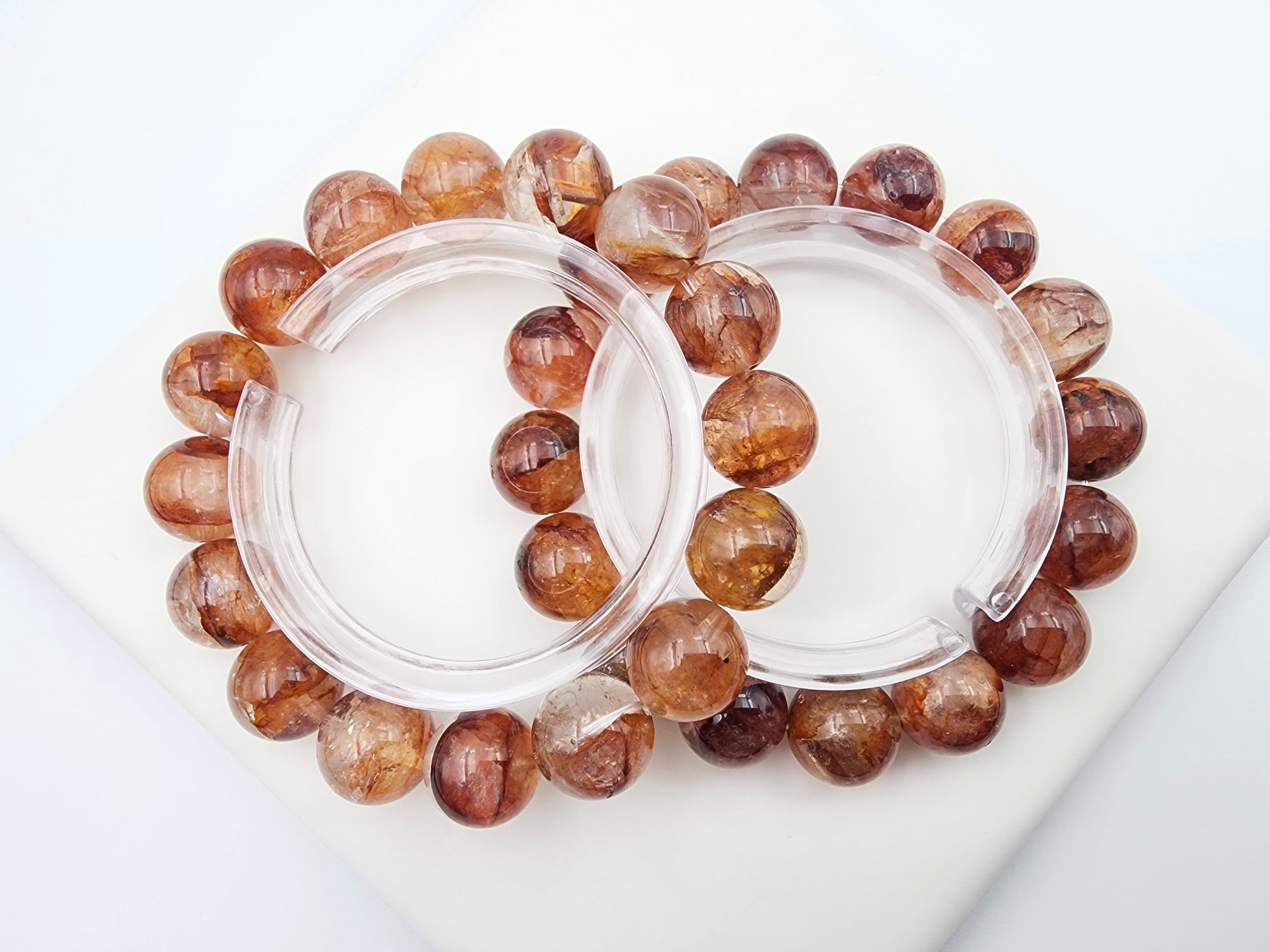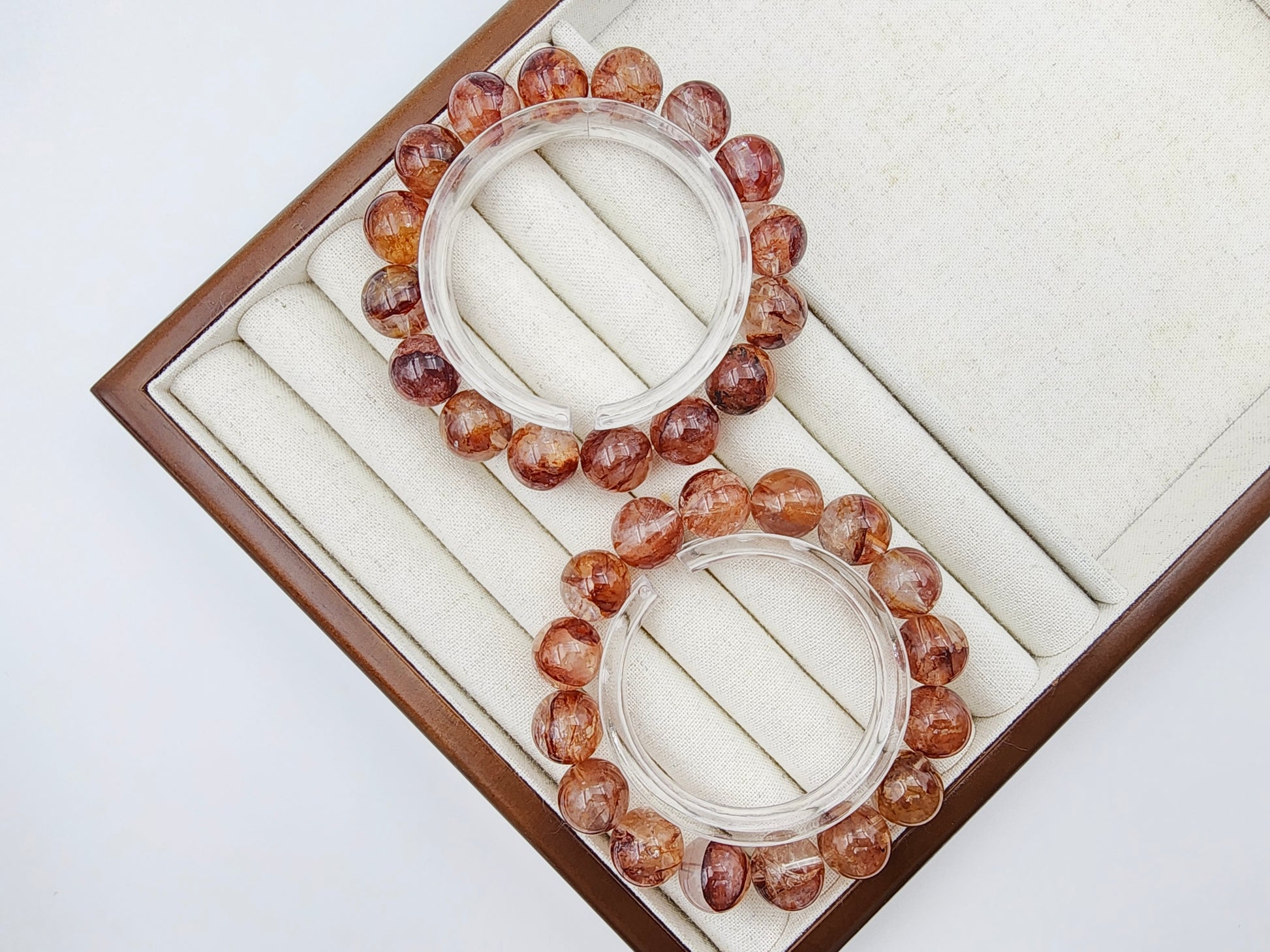 [Bracelet] Elegant 13mm Red Hematoid Quartz 红胶花 Bracelet - Healing Crystal Jewelry