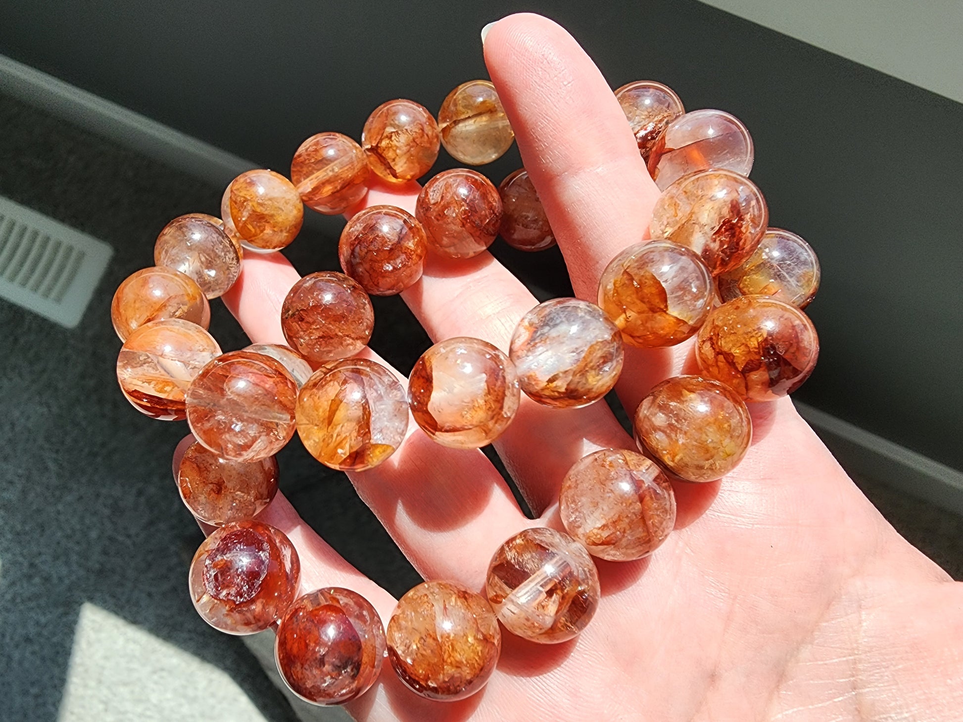 Embrace the distinctive allure of our 13mm Red Hematoid Quartz Bracelet. Each bead is unique, showcasing natural variations, inclusions, and imperfections. The surface may not be flawless, reflecting the authenticity of the gemstone. These characteristics add to the bracelet's charm, highlighting its natural origin. Crafted with care, your bracelet is a one-of-a-kind piece, celebrating the beauty of nature.