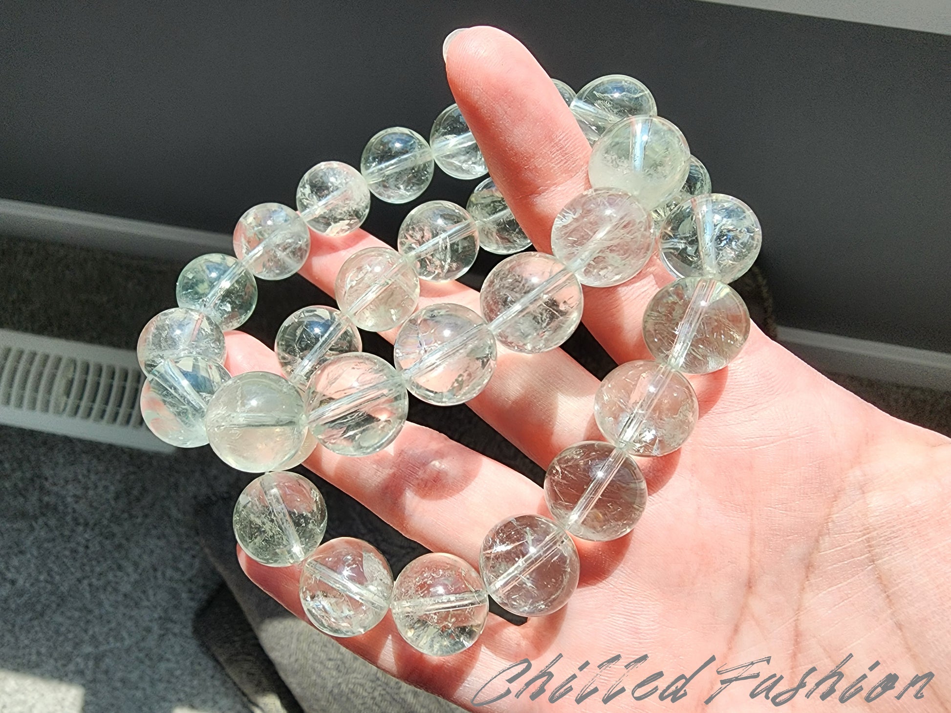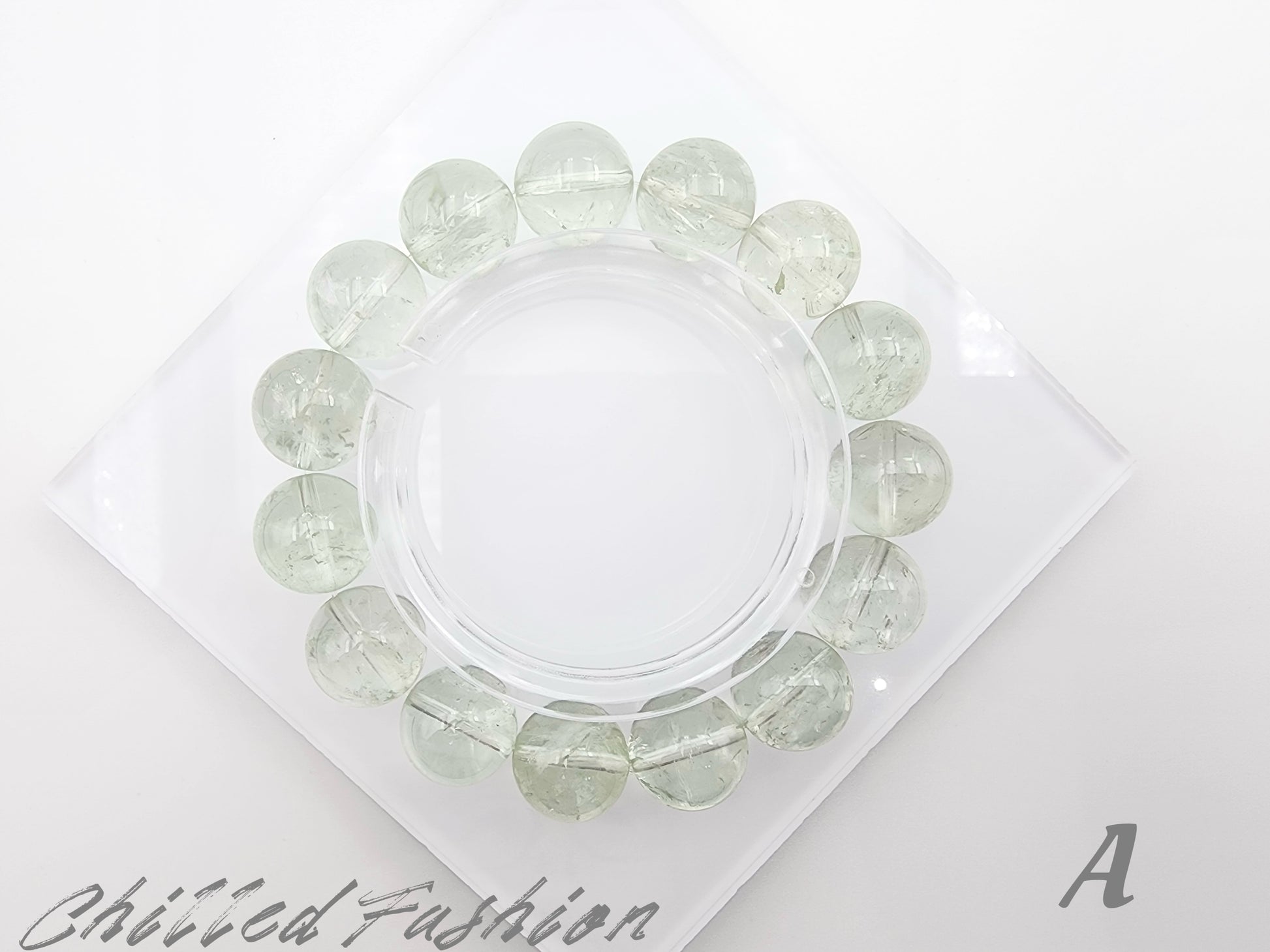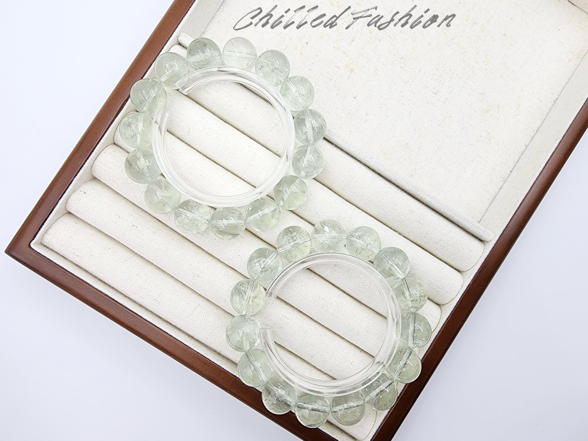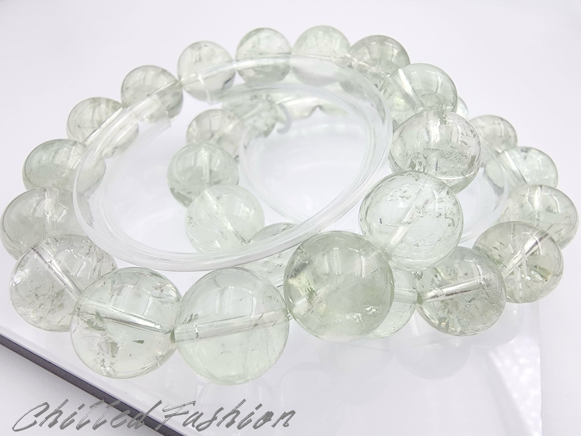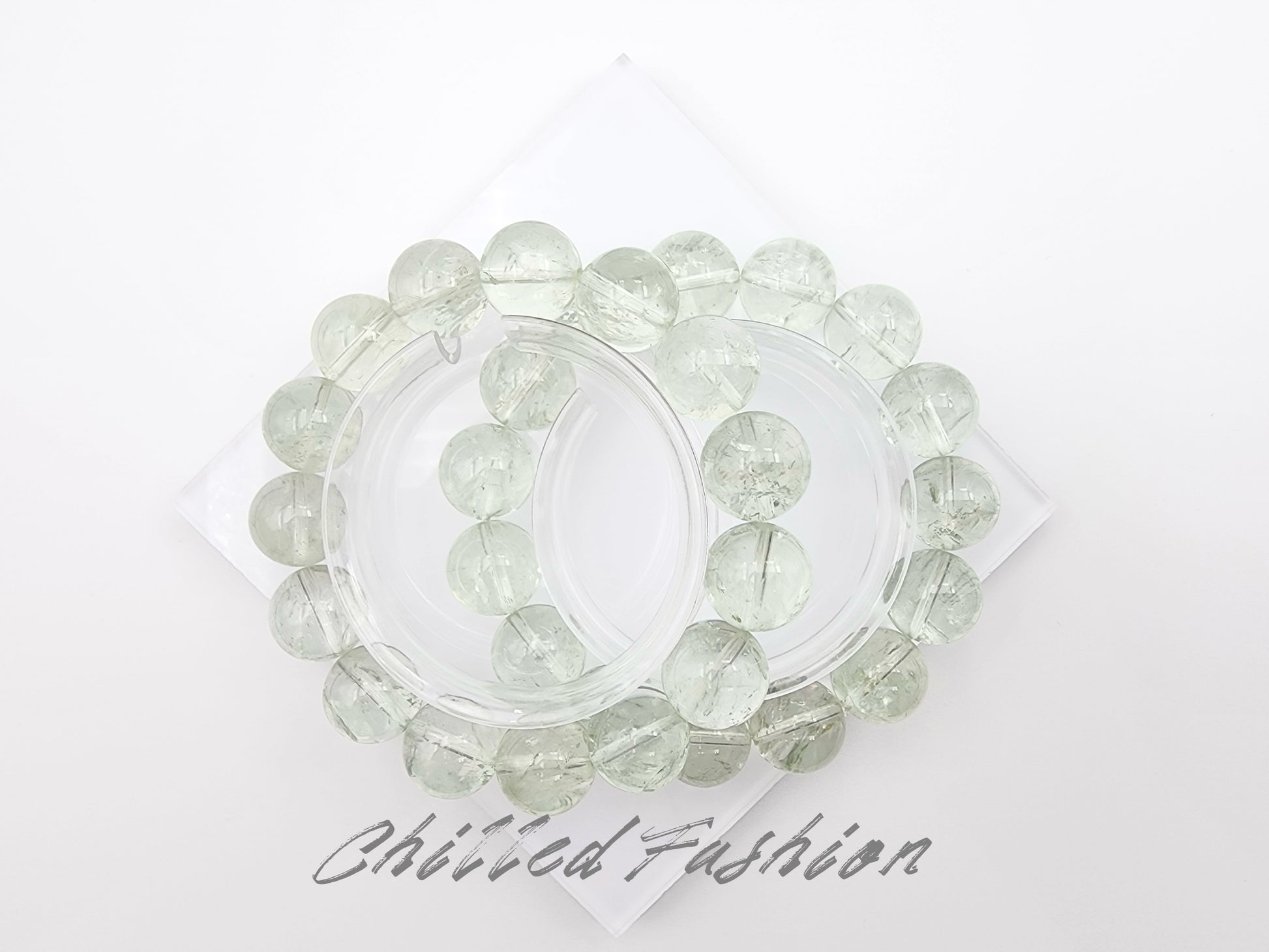 Please Note: This bracelet is made from natural Green Quartz. As with all natural products, each bead is unique and may not be perfectly round. The surface of the beads may have minor variations and natural stones may also have small inclusions. These characteristics are a testament to their natural origin and do not affect the quality or energy of the bracelet. Thank you for understanding and appreciating the beauty of nature.