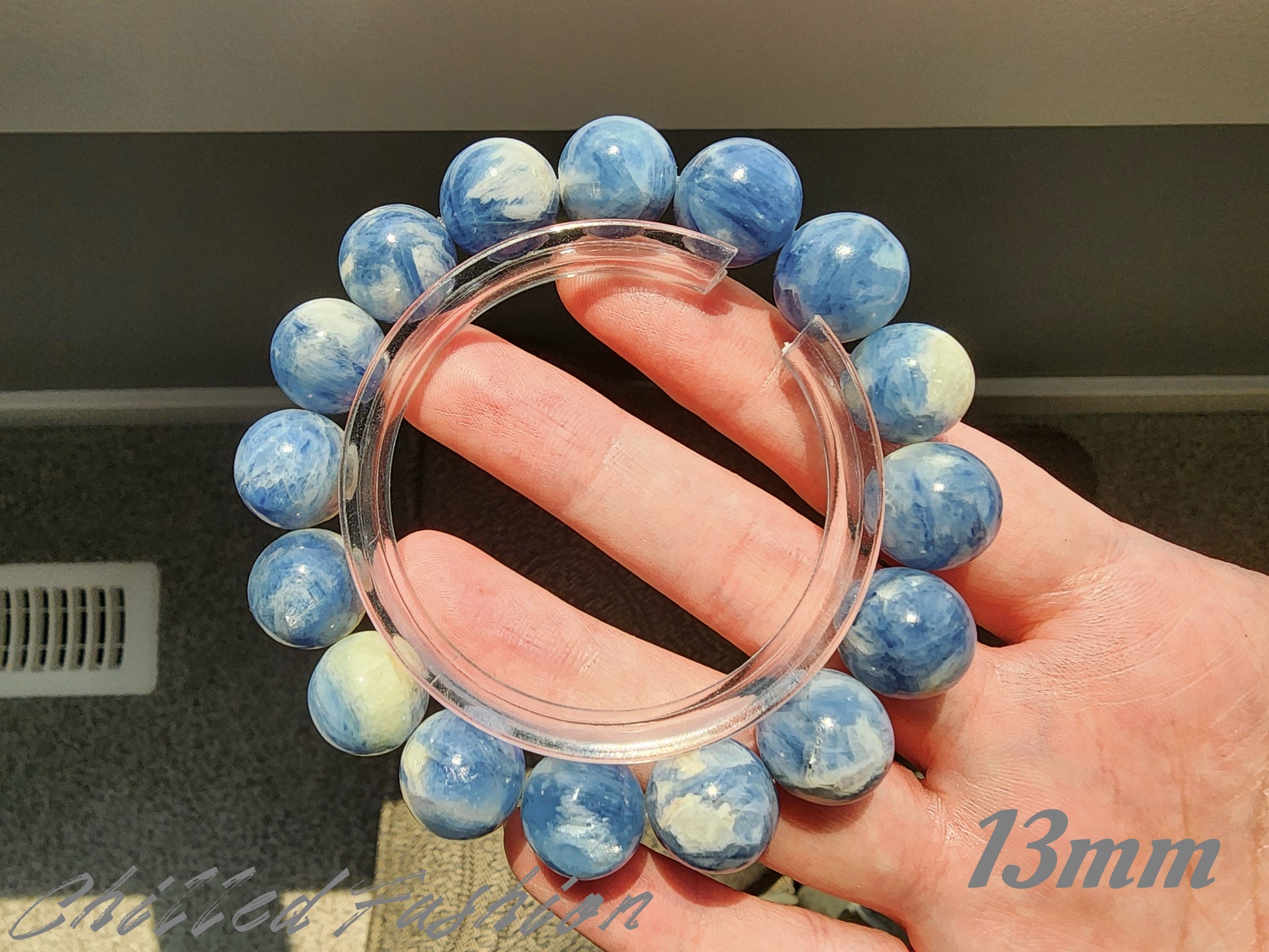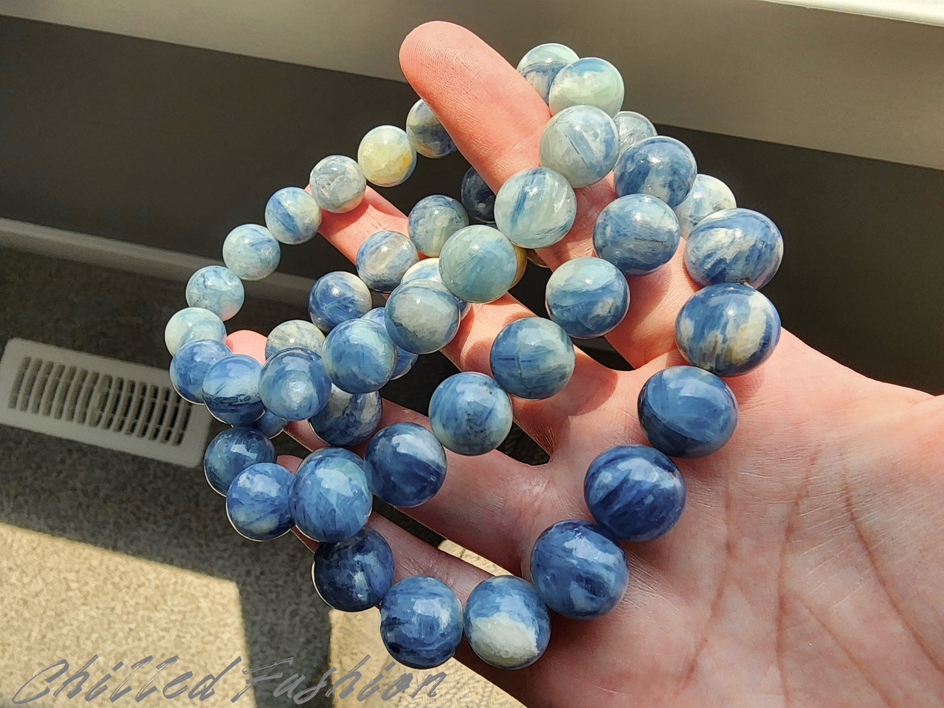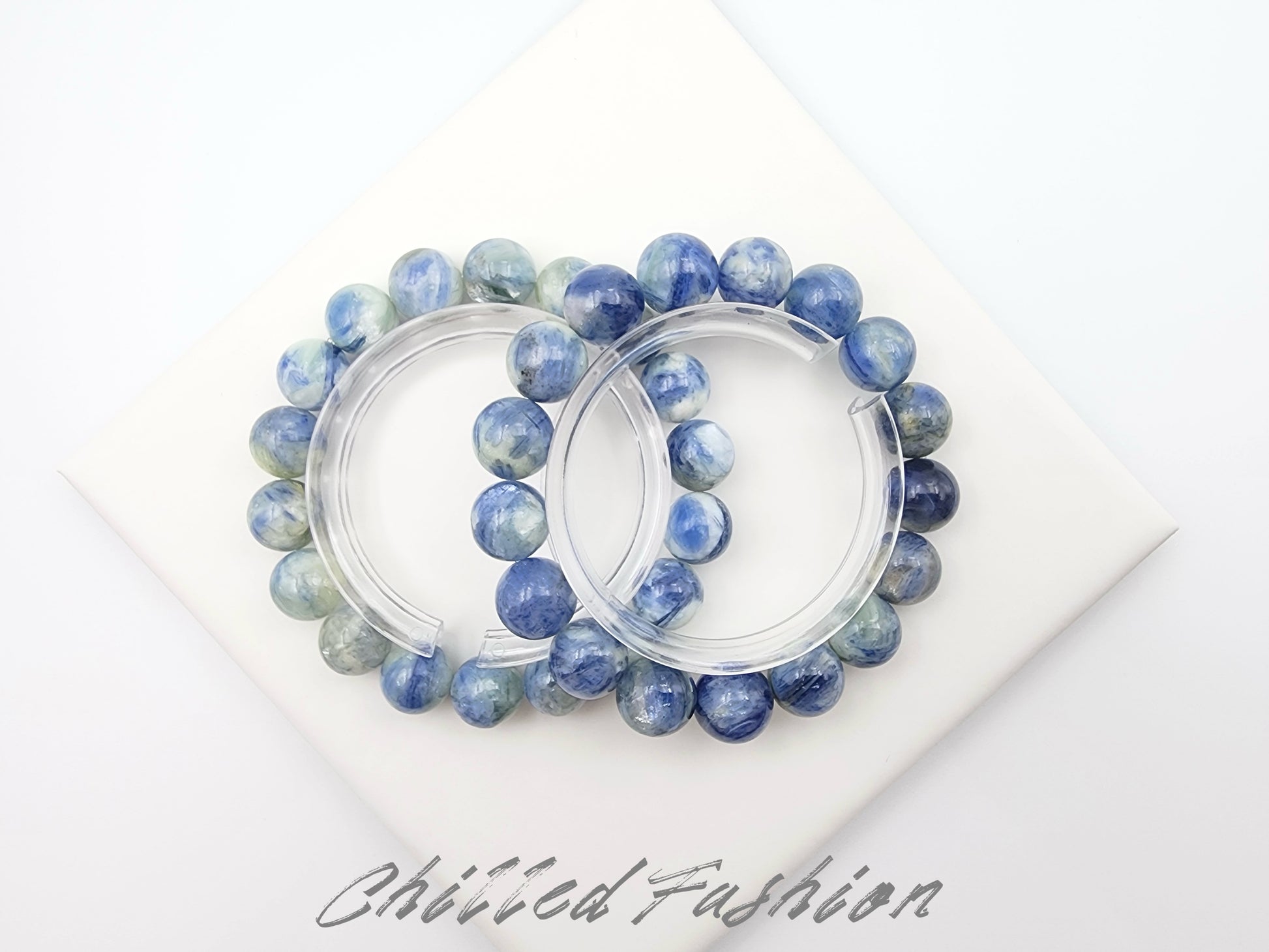 Embrace the beauty of nature with our Elegant Kyanite Beaded Bracelet. Each bead, slightly lighter in color than pictured, carries tranquil hues of nature’s blue. As these are natural products, the surfaces of the beads may not be perfectly smooth and some may have a slightly flat head. These minor imperfections add to their unique charm, making each bracelet one-of-a-kind. Thank you for understanding and appreciating the charming quirks of natural products.