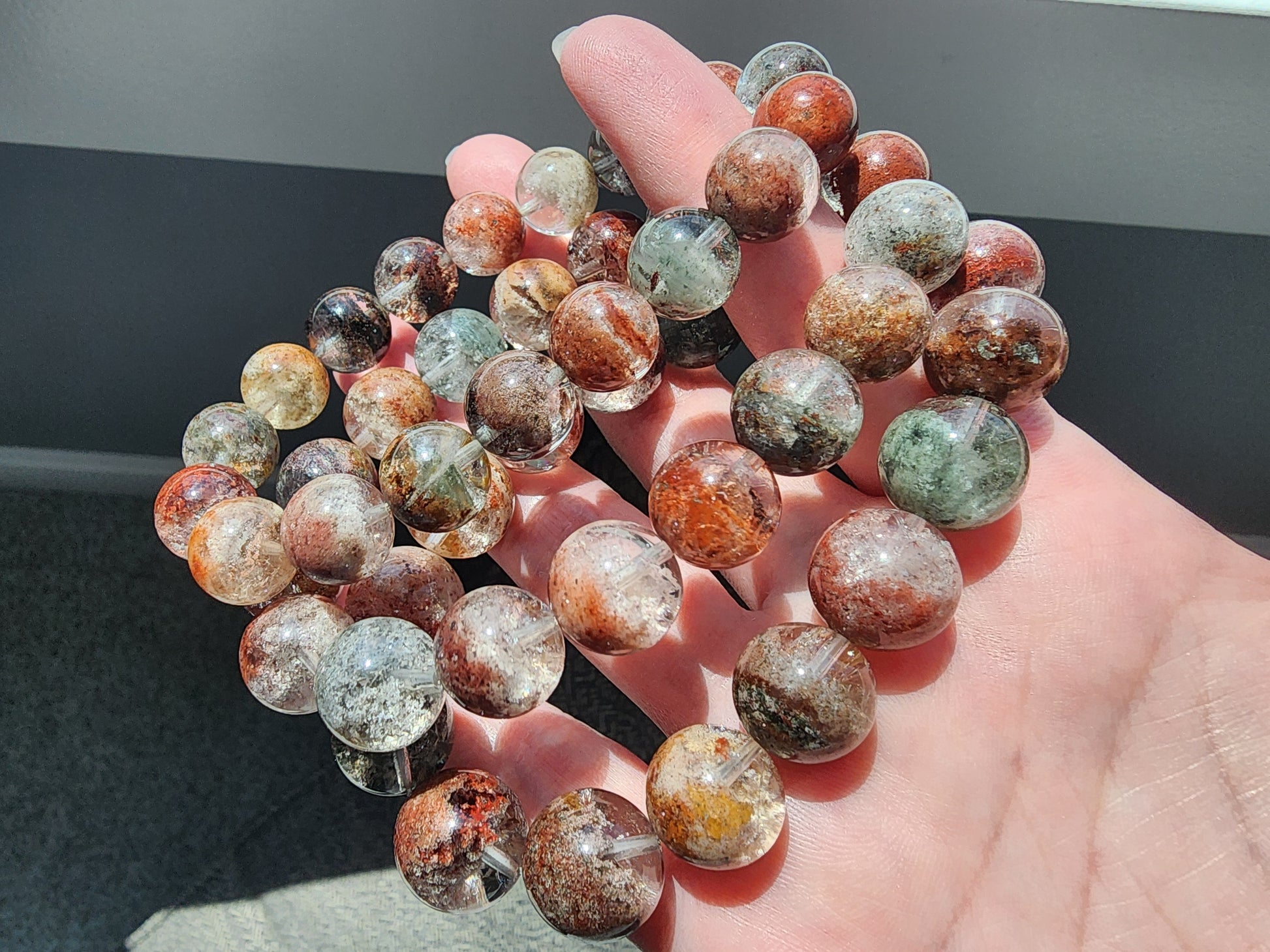 Please note that as this bracelet is made from natural Four Season Phantom Quartz, each bead is unique and may not be perfect. The surface or the inside of the bead may have natural imperfections, which are part of its charm and beauty. These imperfections do not affect the quality or effectiveness of the quartz. In fact, they make each bracelet one-of-a-kind, just like the seasons of the year. Enjoy this beautiful piece of nature’s art!