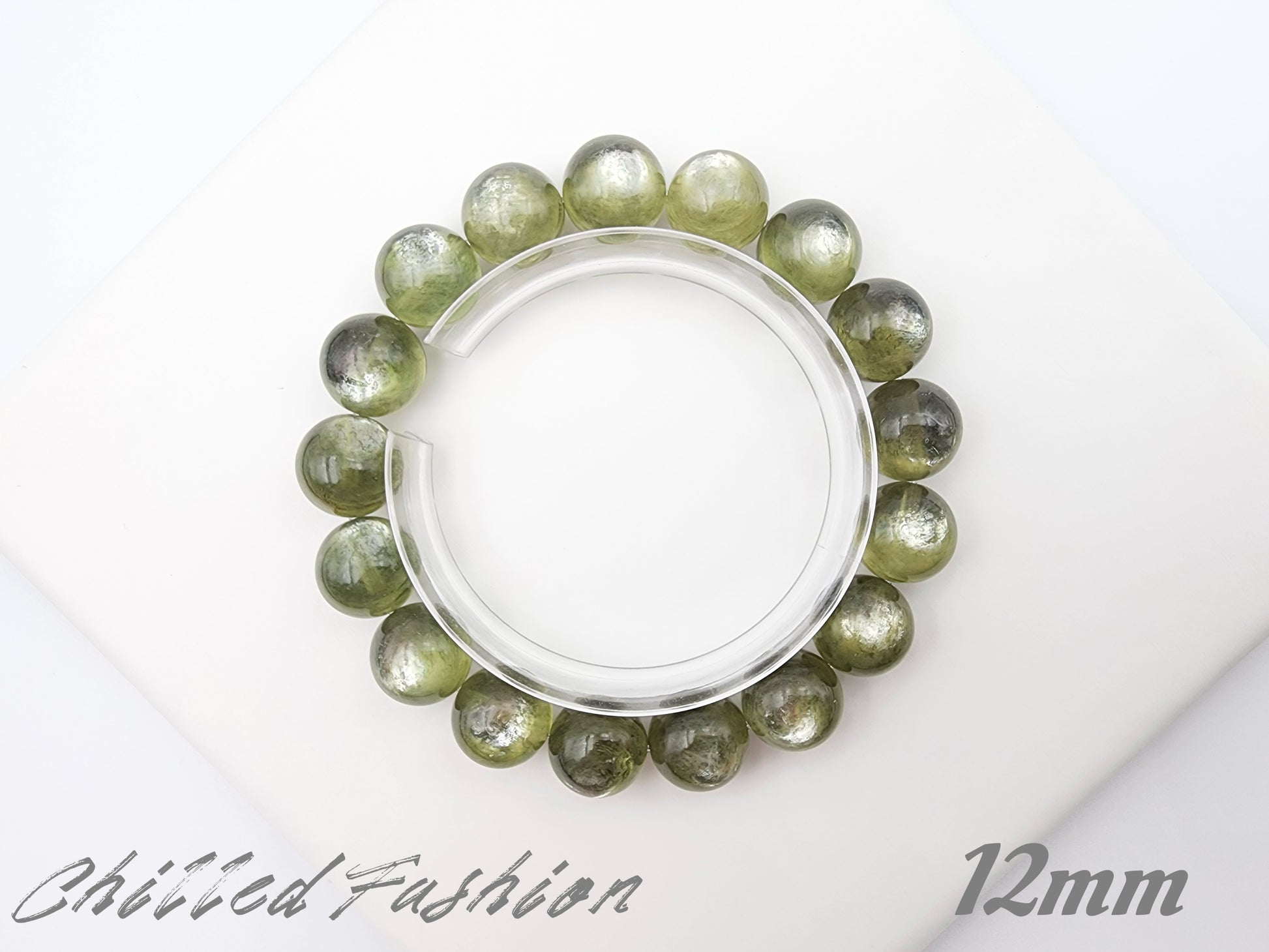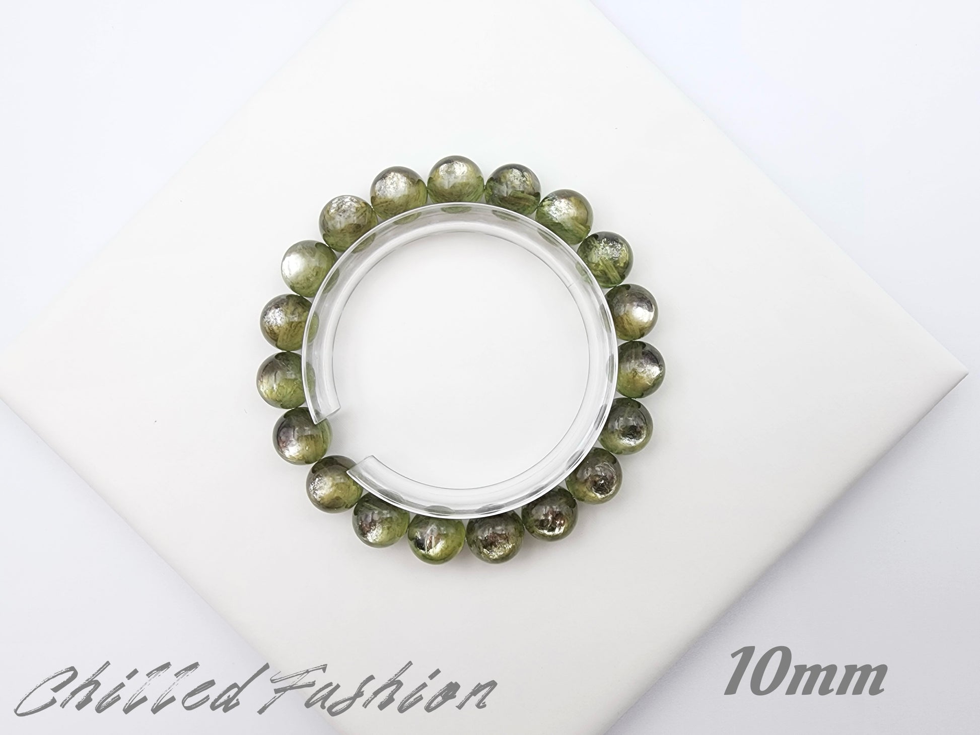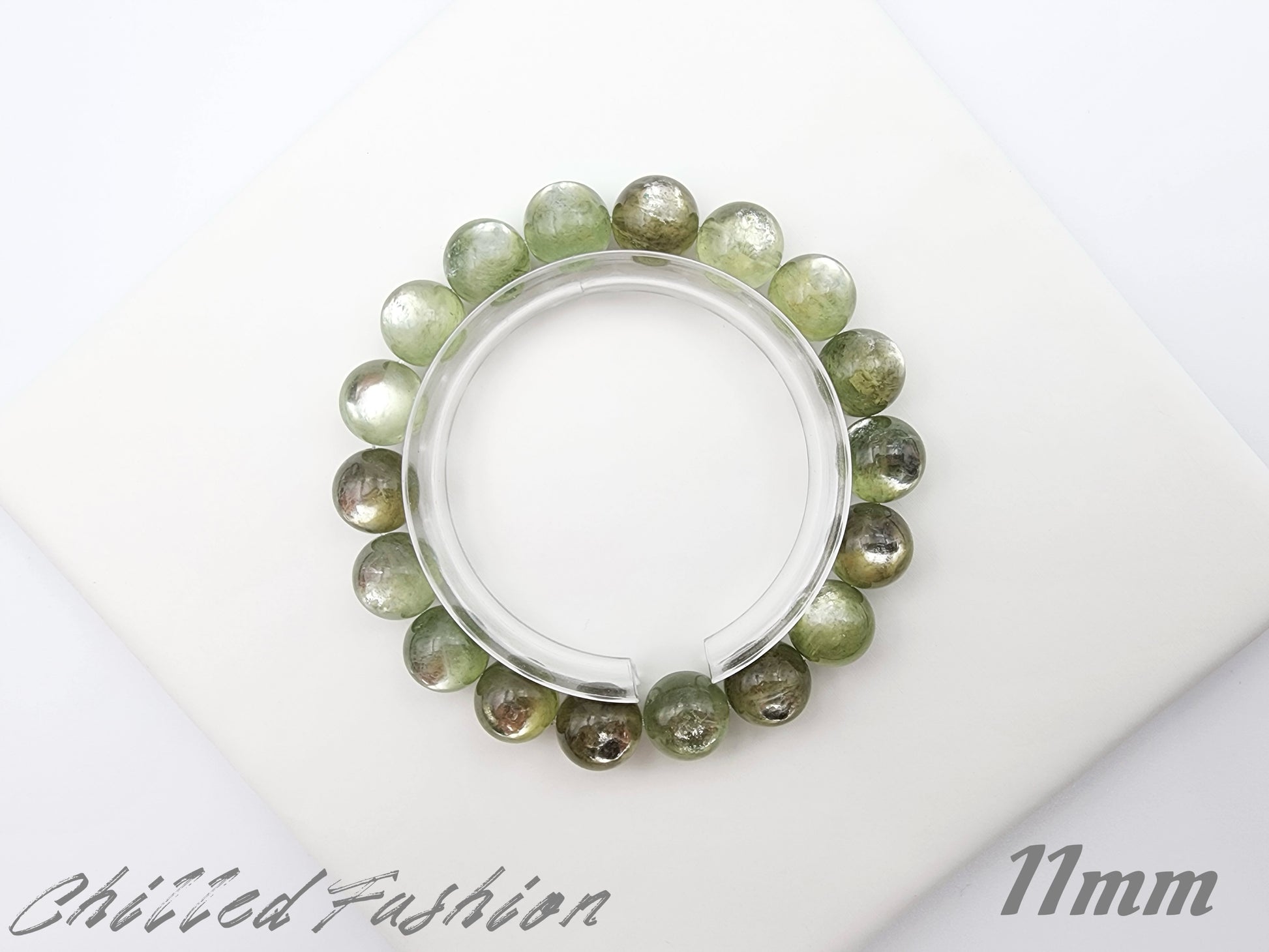 Embrace the beauty of nature's handiwork! Green lithium mica bracelets feature unique variations in each bead's color and surface, reflecting the mineral's natural formation. Due to the stone's delicate nature, the beads may not be perfectly round and are prone to breakage from strong impacts. This adds to the charm of your bracelet, making it a one-of-a-kind piece!