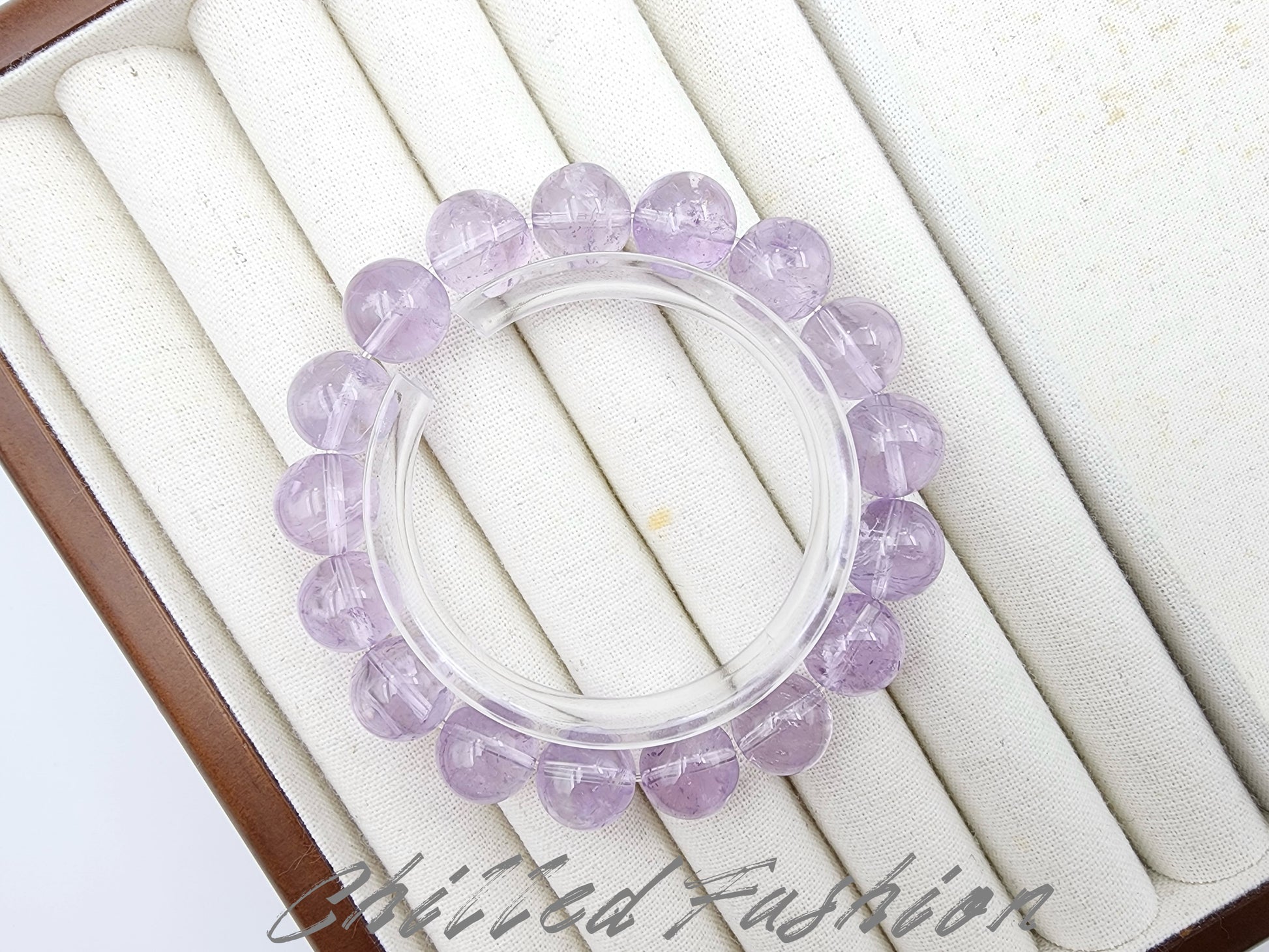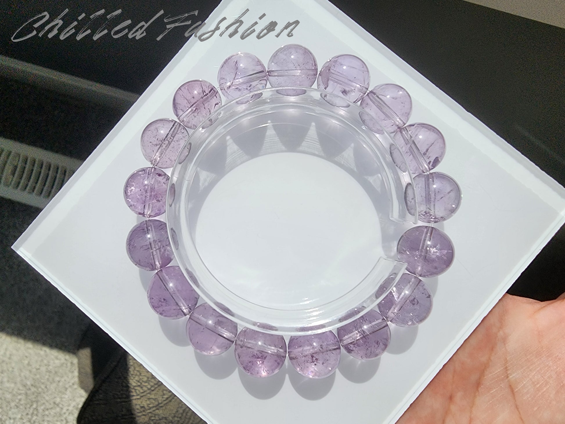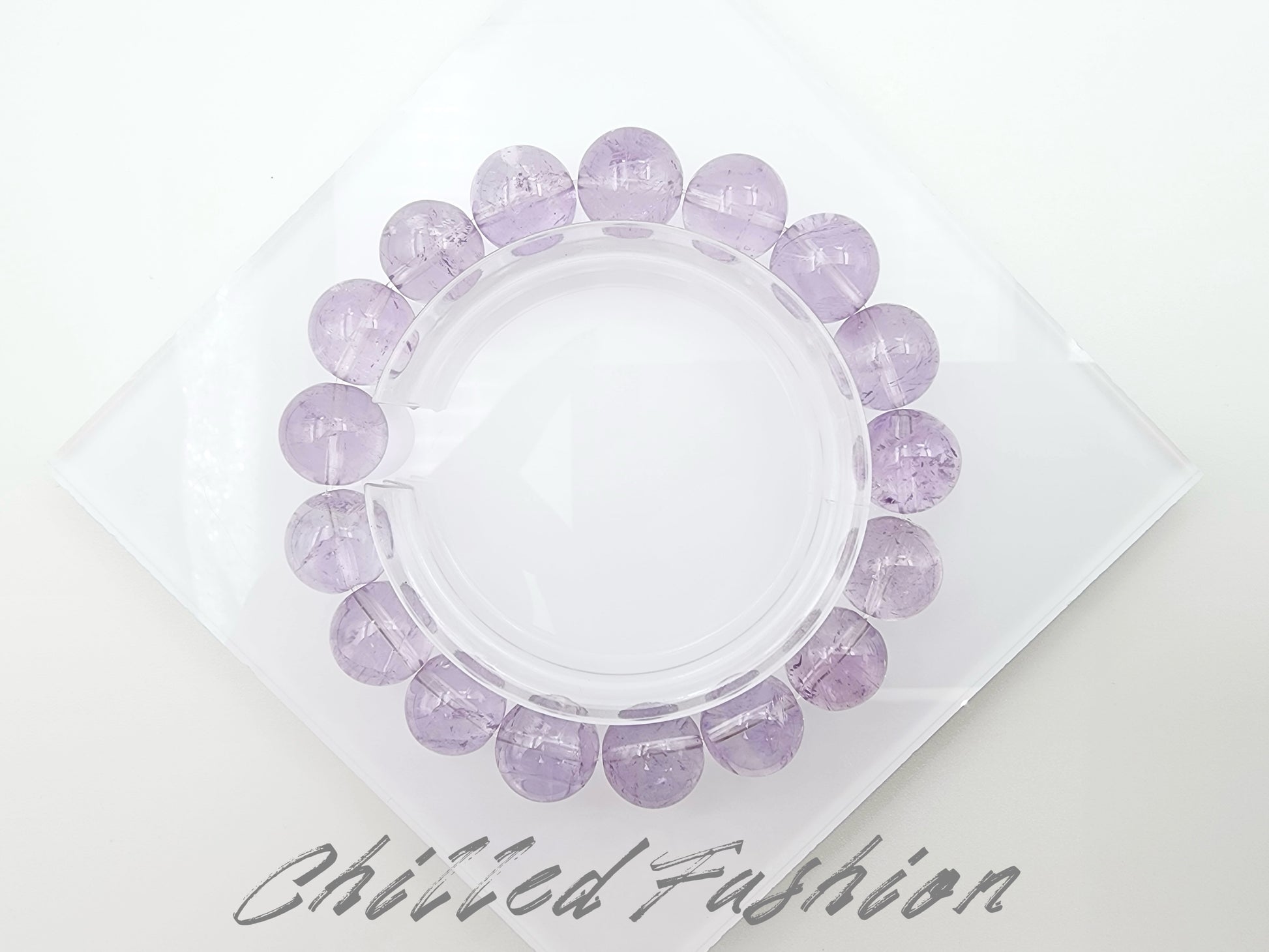 This 12mm Amethyst bracelet showcases the soft, ethereal beauty of light lavender hues in each polished bead. Known for its calming and spiritual qualities, Amethyst is a stone that inspires peace, clarity, and balance. With its soothing presence, this bracelet is perfect for daily wear, whether as a reminder to stay grounded or as a stylish accent to elevate any outfit. A timeless choice for those seeking tranquility, emotional harmony, and a touch of natural elegance in their jewelry collection.