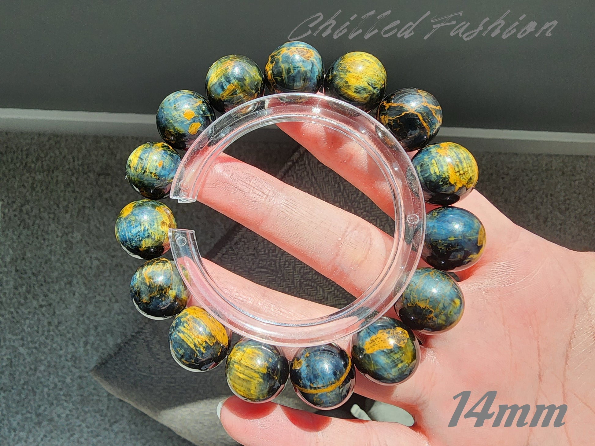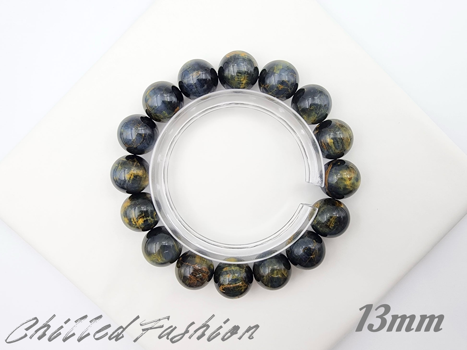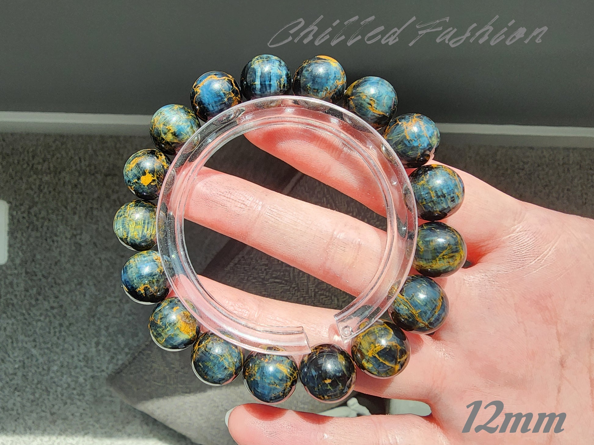 Please note that each Galaxy Blue-Gold Pietersite bracelet is made with natural stone beads, and variations in color, pattern, and chatoyancy are part of their unique character. Some beads may display more golden or blue tones, and slight surface imperfections or natural inclusions may be present due to the formation process of the stone. These features are not flaws but signs of authenticity, making each bracelet one of a kind.