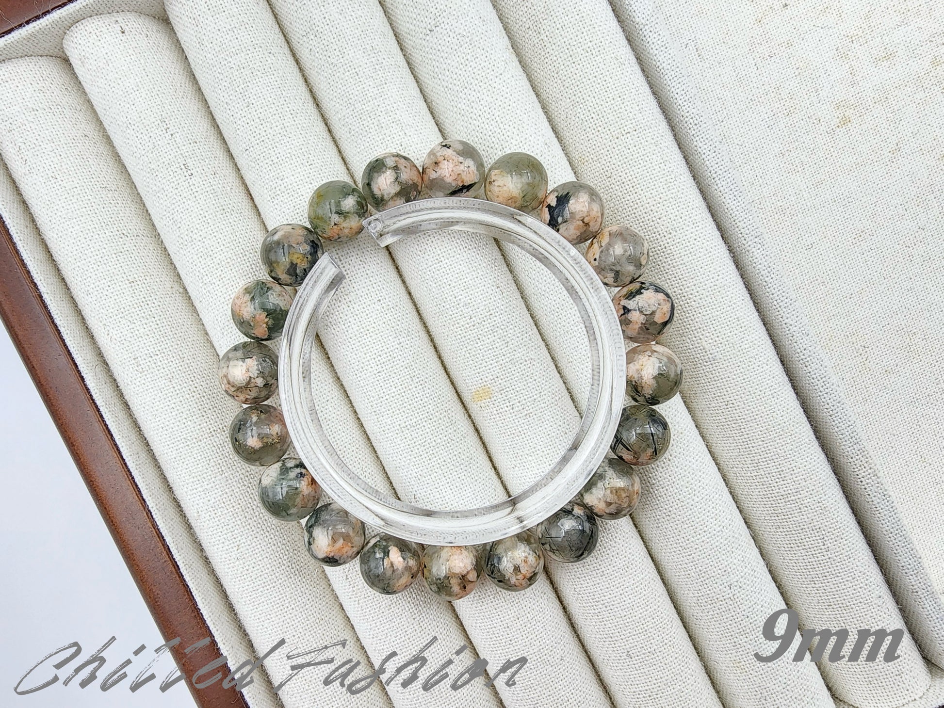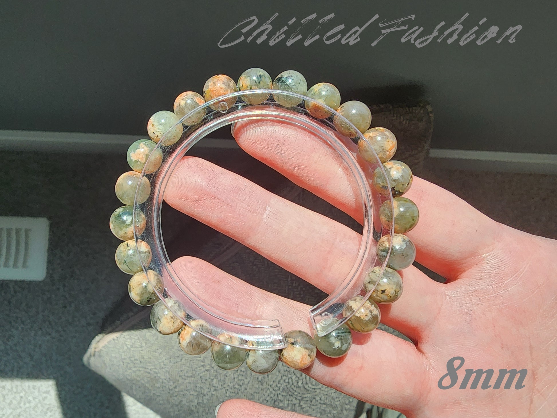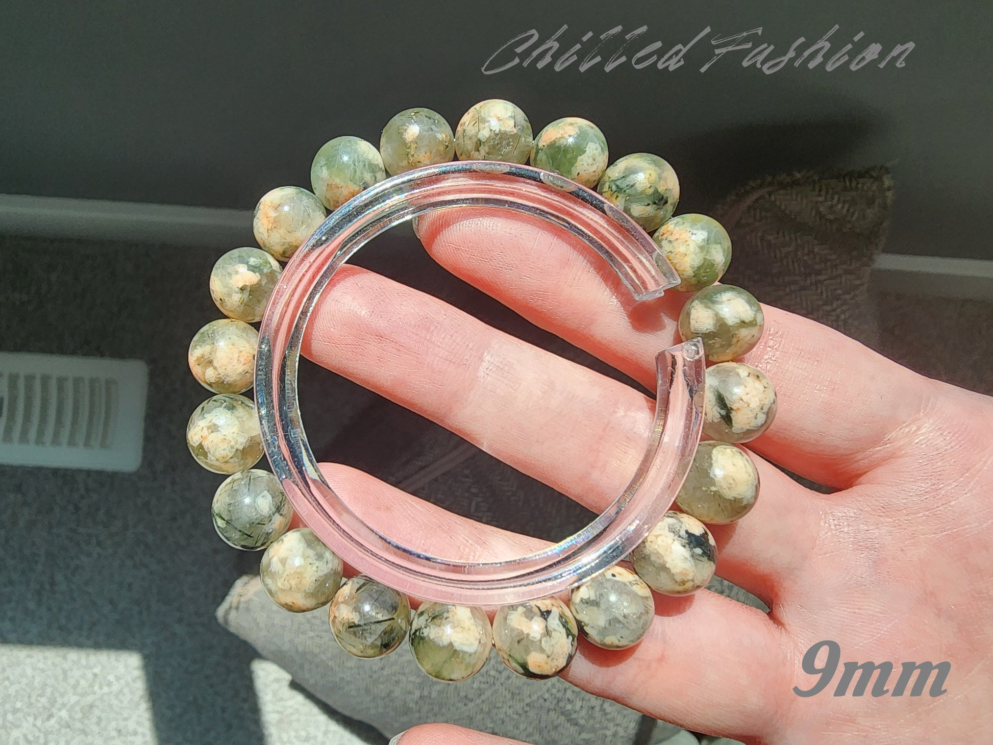 Please note that each Cherry Blossom Green Rutilated Quartz bracelet is crafted from natural gemstones, making every bead unique in appearance. Due to the organic nature of these stones, inclusions may be present within the beads, and there may be minor surface imperfections. These characteristics are a testament to their natural origin and add to the distinct beauty and charm of each piece. Embrace the uniqueness of your bracelet, knowing that no two are exactly alike.
