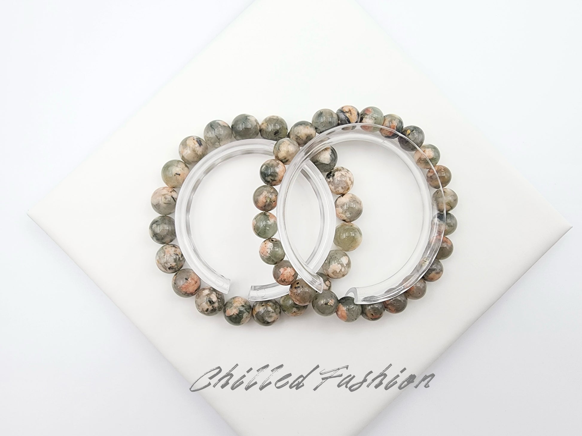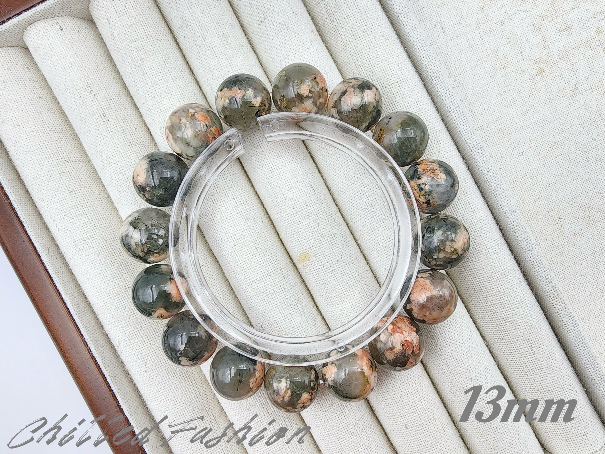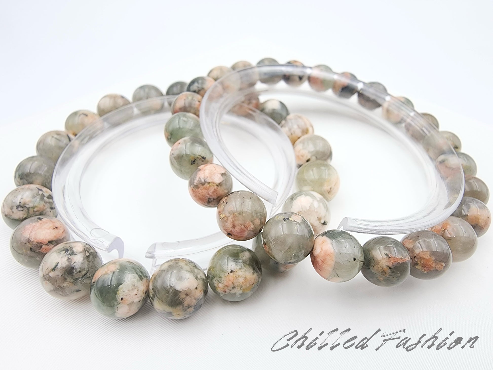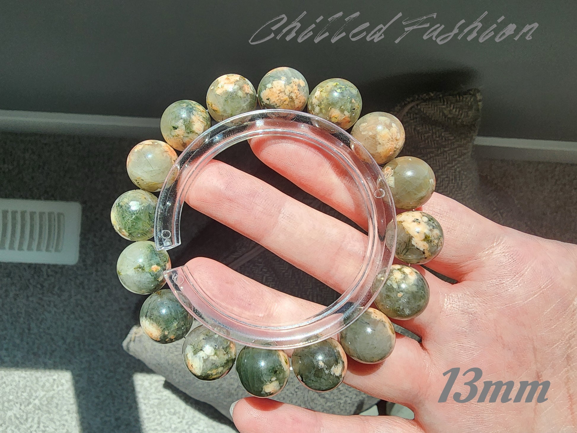 Please note that each Cherry Blossom Green Rutilated Quartz bracelet is crafted from natural gemstones, making every bead unique in appearance. Due to the organic nature of these stones, inclusions may be present within the beads, and there may be minor surface imperfections. These characteristics are a testament to their natural origin and add to the distinct beauty and charm of each piece. Embrace the uniqueness of your bracelet, knowing that no two are exactly alike.