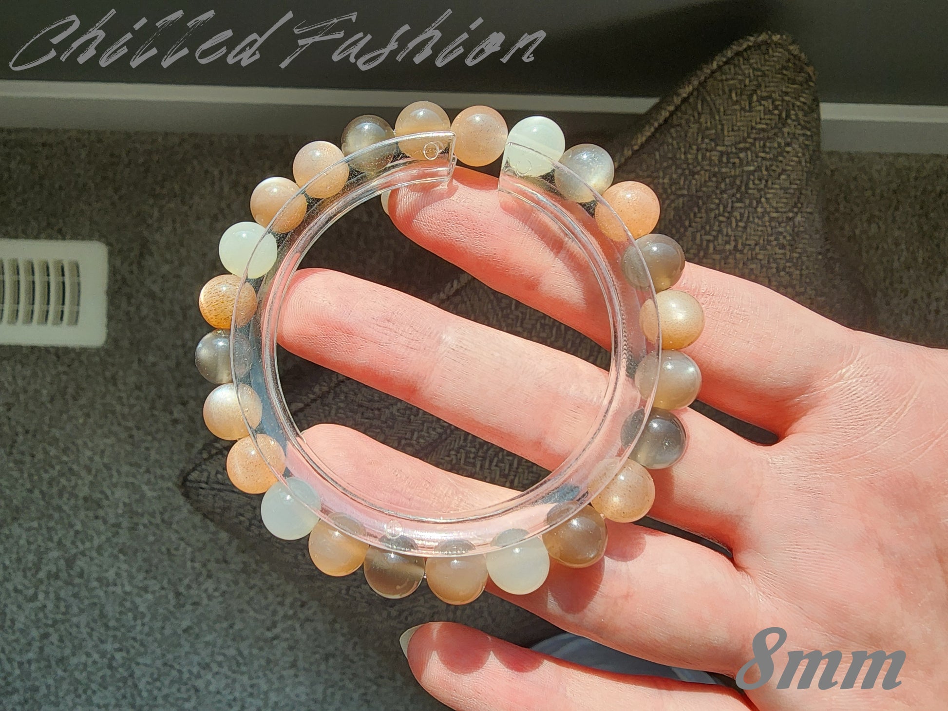 Please note that these bracelets are made with natural moonstone beads, and each bead may vary slightly in color, texture, and shine due to their organic origins. Minor inclusions, surface marks, or subtle imperfections are part of their natural beauty and uniqueness, making every bracelet truly one of a kind. We appreciate your understanding of the inherent variations that make these gemstones special.