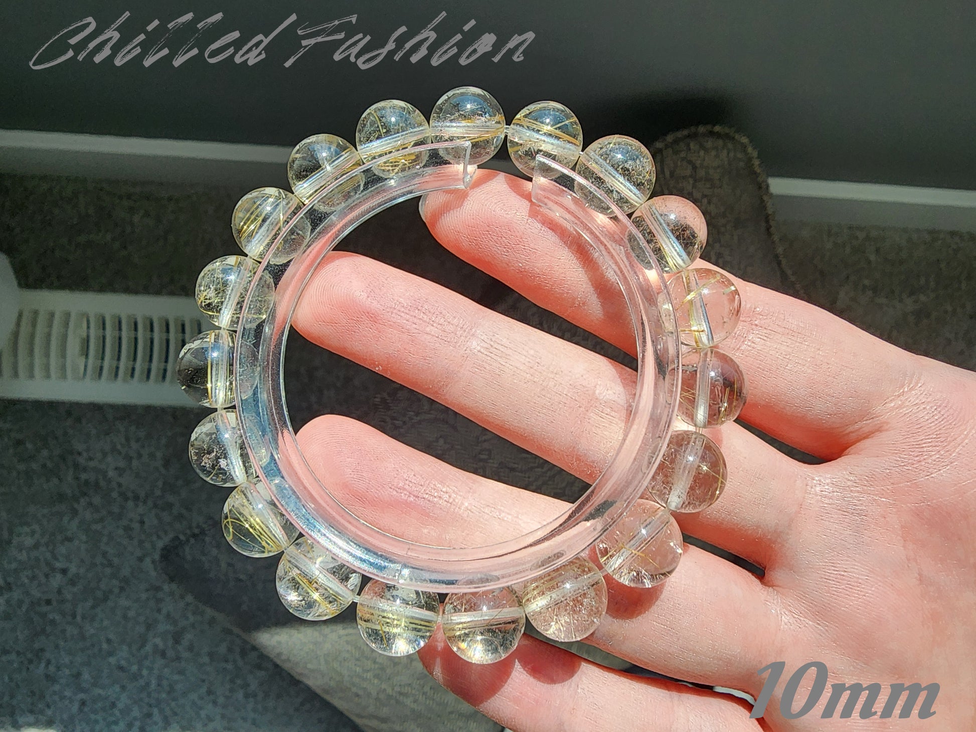 Please note that these Golden Rutilated Quartz bracelets are made from natural gemstones, meaning each bead is unique in its inclusions, clarity, and rutile patterns. Some beads may have more densely packed golden threads, while others may feature finer, more delicate strands or slight variations in transparency. Natural surface imperfections, minor inclusions, or internal fractures are common and do not affect the beauty or quality of the bracelet. These natural characteristics make each piece one-of-a-kind, ensuring you receive a bracelet with its own distinctive charm.