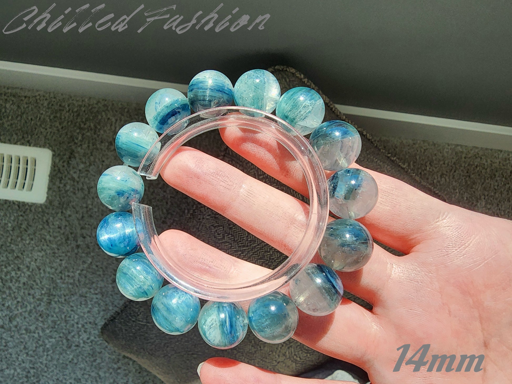 Please note that these Green-Blue Kyanite bracelets are crafted from natural gemstone beads, and as such, slight variations in color, texture, and inclusions are to be expected, making each piece one of a kind. The surface of the beads might not be perfectly smooth due to their natural origins, showcasing the raw beauty and authenticity of the stones. These characteristics are not flaws but a testament to the natural formation of the crystals. Additionally, as Kyanite is a delicate stone, we recommend handling the bracelet with care to maintain its polished finish. If you have any questions or specific requests, feel free to contact us before purchasing!