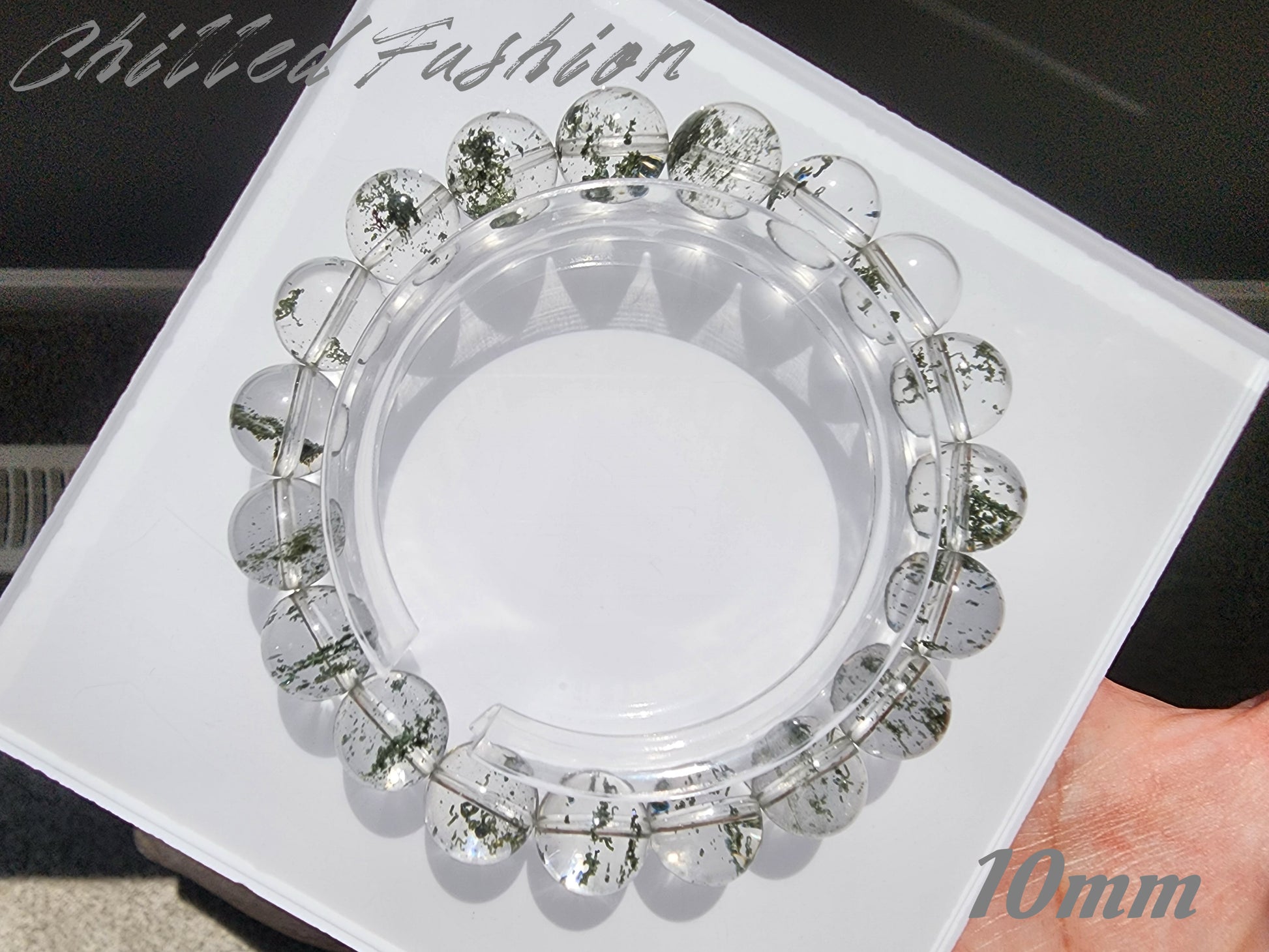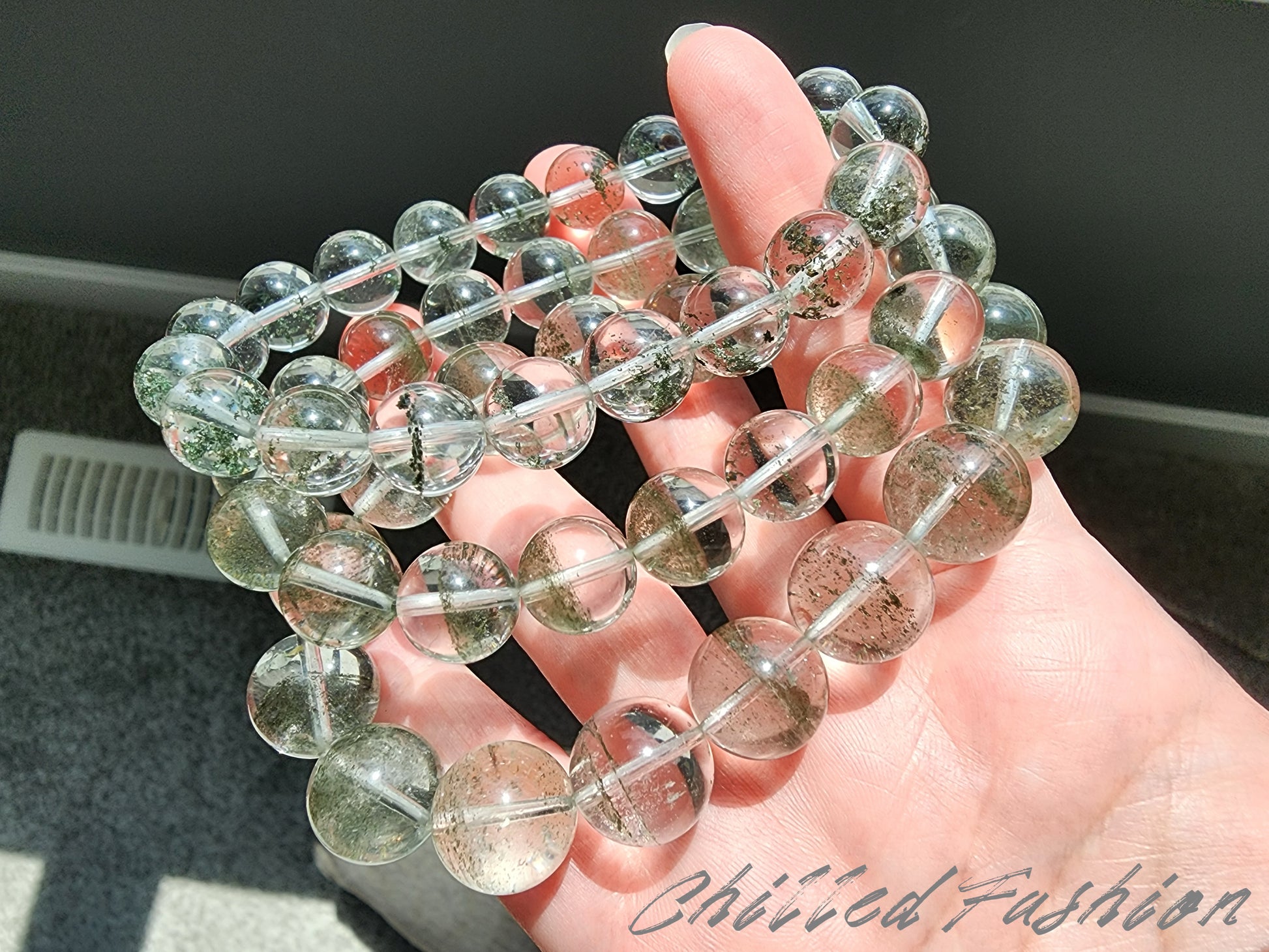 These stunning Green Phantom Quartz bracelets feature natural clear quartz beads with beautiful green inclusions, creating unique "phantom" patterns inside each stone. Known for its powerful metaphysical properties, Green Phantom Quartz is often associated with growth, prosperity, and the manifestation of wealth. This crystal is believed to aid in spiritual and personal development, helping to balance energies and attract positive opportunities. Handcrafted with care, these bracelets are not only a striking accessory but also a meaningful piece for those seeking to enhance their journey of abundance and self-growth. Ideal as a gift or for personal wear, each bracelet is a one-of-a-kind treasure with its own distinct character.