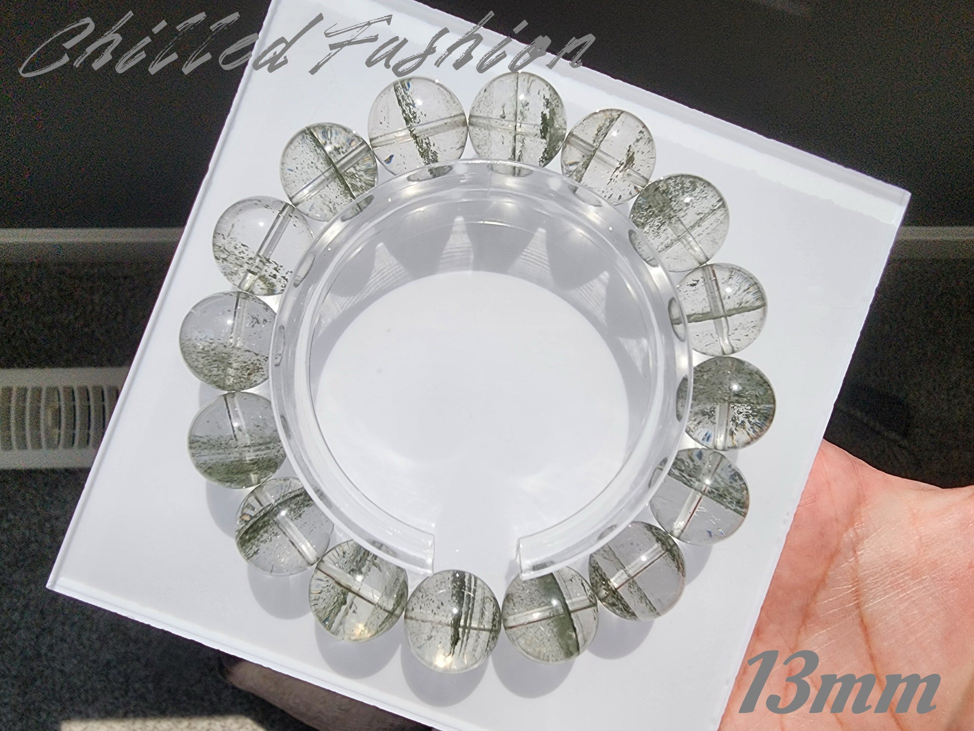 Please note that each Green Phantom Quartz bracelet is made with natural stones, meaning that the green inclusions and patterns inside the beads may vary from one bracelet to another, making each piece truly unique. Due to the natural formation process, there may be slight variations in color, size, and clarity, as well as minor surface imperfections, which are a normal part of the crystal's beauty. We believe these natural characteristics add to the charm and individuality of the bracelets, ensuring that no two pieces are exactly alike.