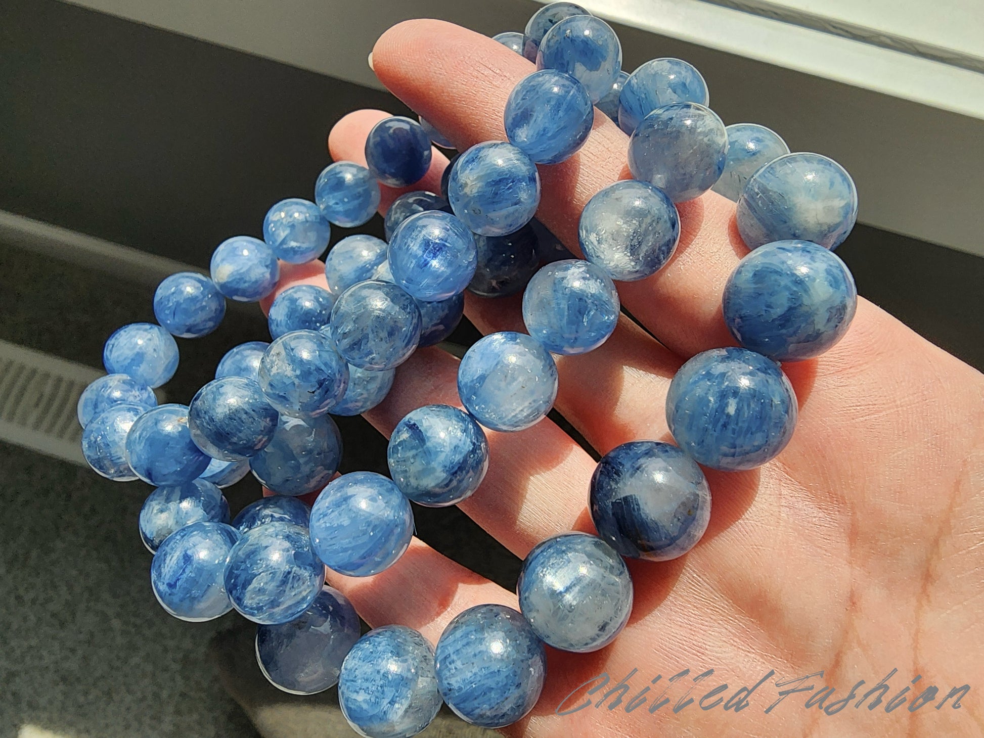 Embrace the beauty of nature's own handiwork! Due to the unique character of these genuine kyanite beads, you might find slight variations in color, inclusions within the stones, and slight surface imperfections. These aren't flaws, but a testament to the authenticity of your bracelet, each one as unique as you are.