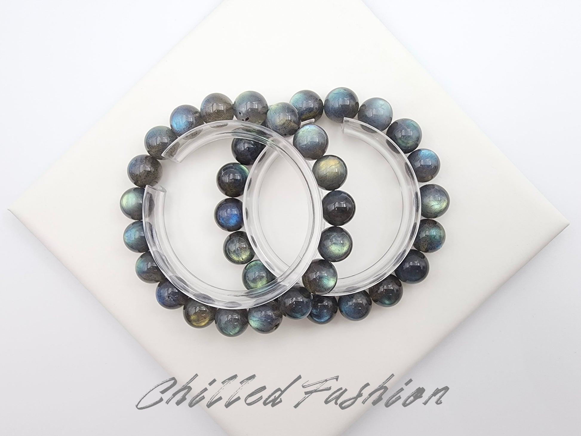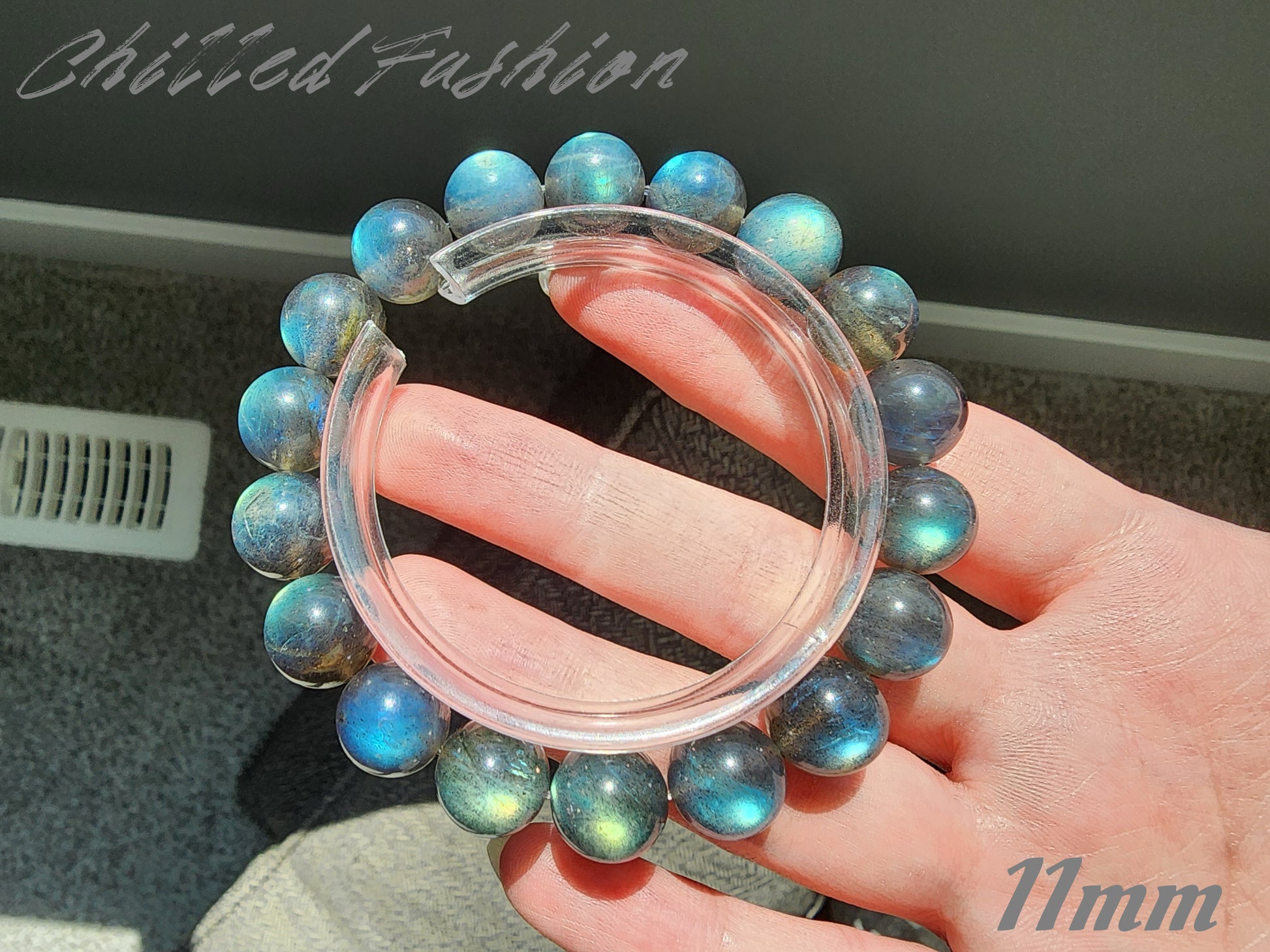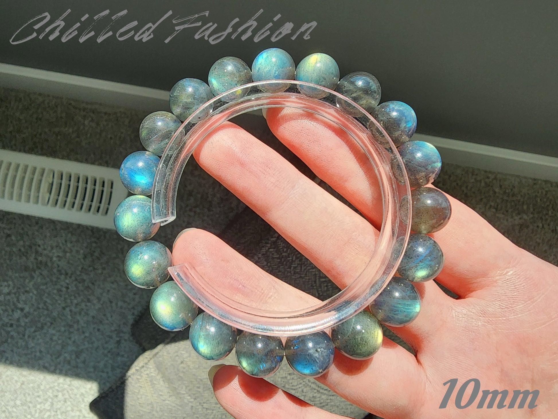Please note: These bracelets are made with natural Labradorite, and each bead is unique in color, sheen, and internal patterning. Variations in flash, inclusions, and tone are expected and part of the stone's natural character. Some beads may have slight surface imperfections such as minor pits or texture differences due to their natural origin — these are not considered flaws but rather signs of authenticity. We do our best to select and match beads thoughtfully, but no two bracelets will be exactly the same.