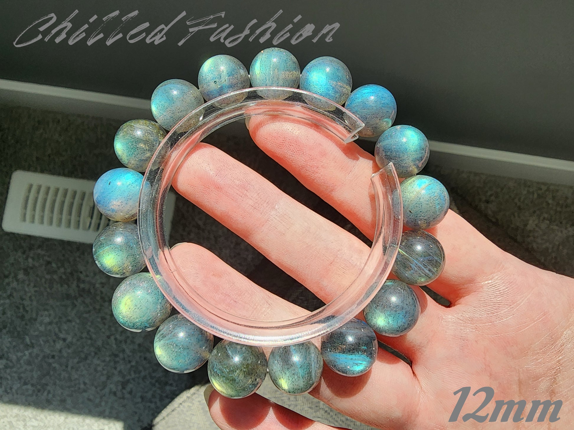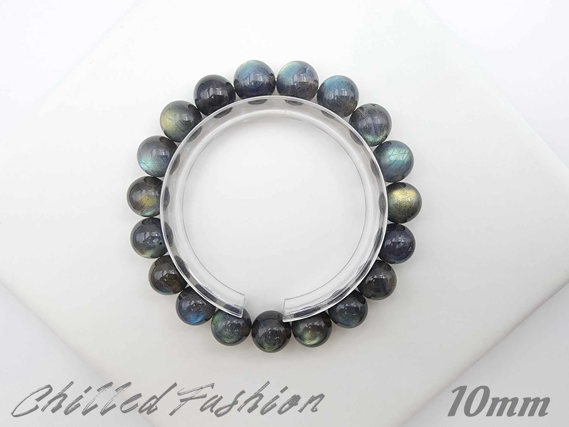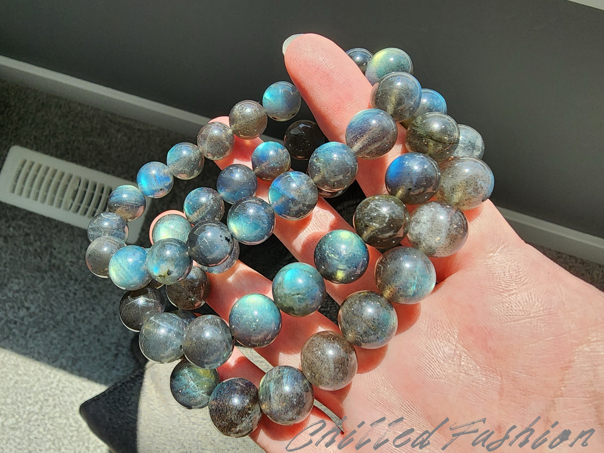 Please note: These bracelets are made with natural Labradorite, and each bead is unique in color, sheen, and internal patterning. Variations in flash, inclusions, and tone are expected and part of the stone's natural character. Some beads may have slight surface imperfections such as minor pits or texture differences due to their natural origin — these are not considered flaws but rather signs of authenticity. We do our best to select and match beads thoughtfully, but no two bracelets will be exactly the same.