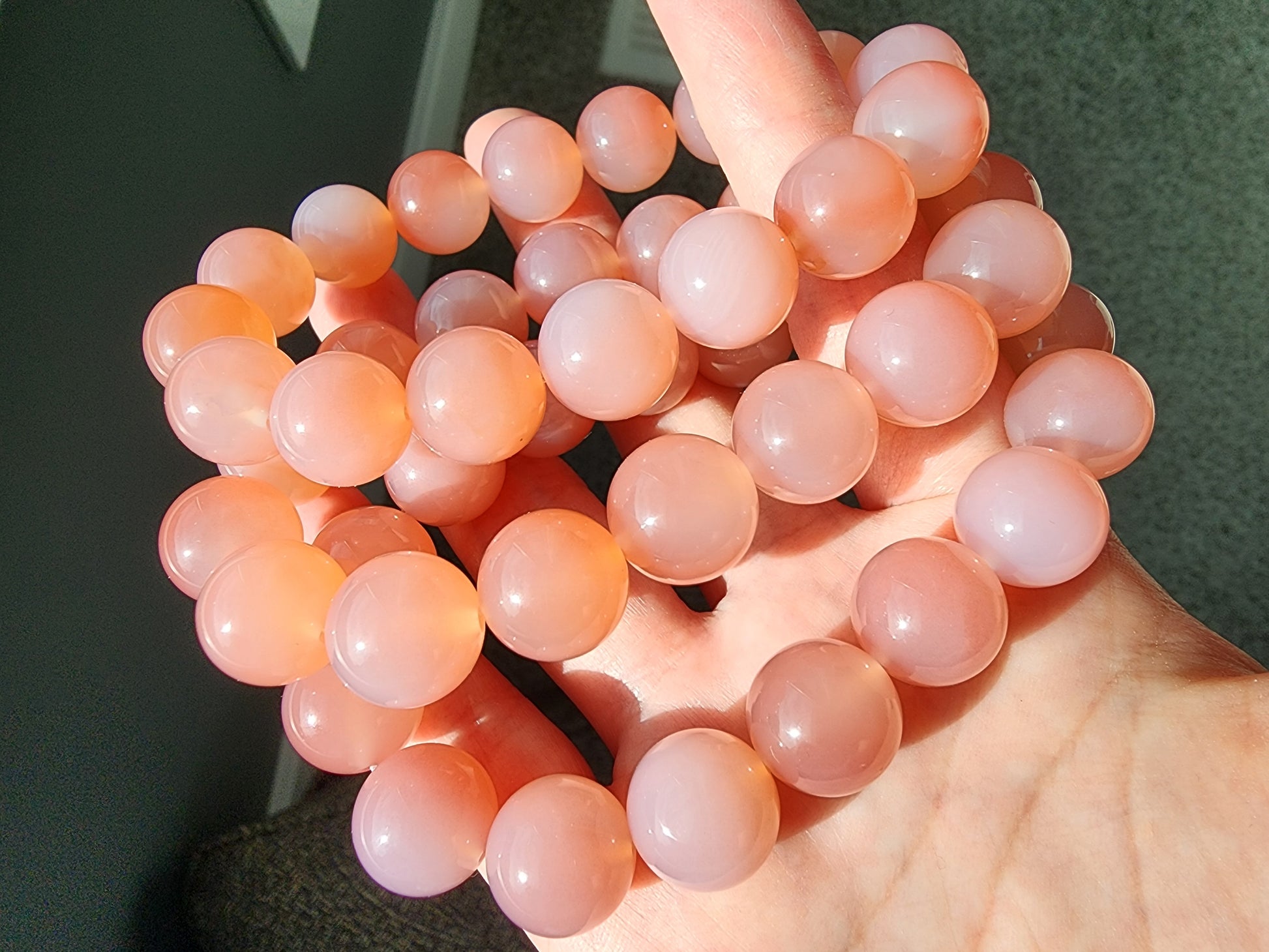Please note that each Peach Agate bracelet is made from natural stones, which means slight variations in color, size, and pattern may be present in each bead. These unique characteristics, including occasional inclusions or subtle surface imperfections, are part of the natural beauty of the gemstone and are not considered flaws. Embrace the individuality of your bracelet, as no two pieces will look exactly alike, making each one truly one-of-a-kind.