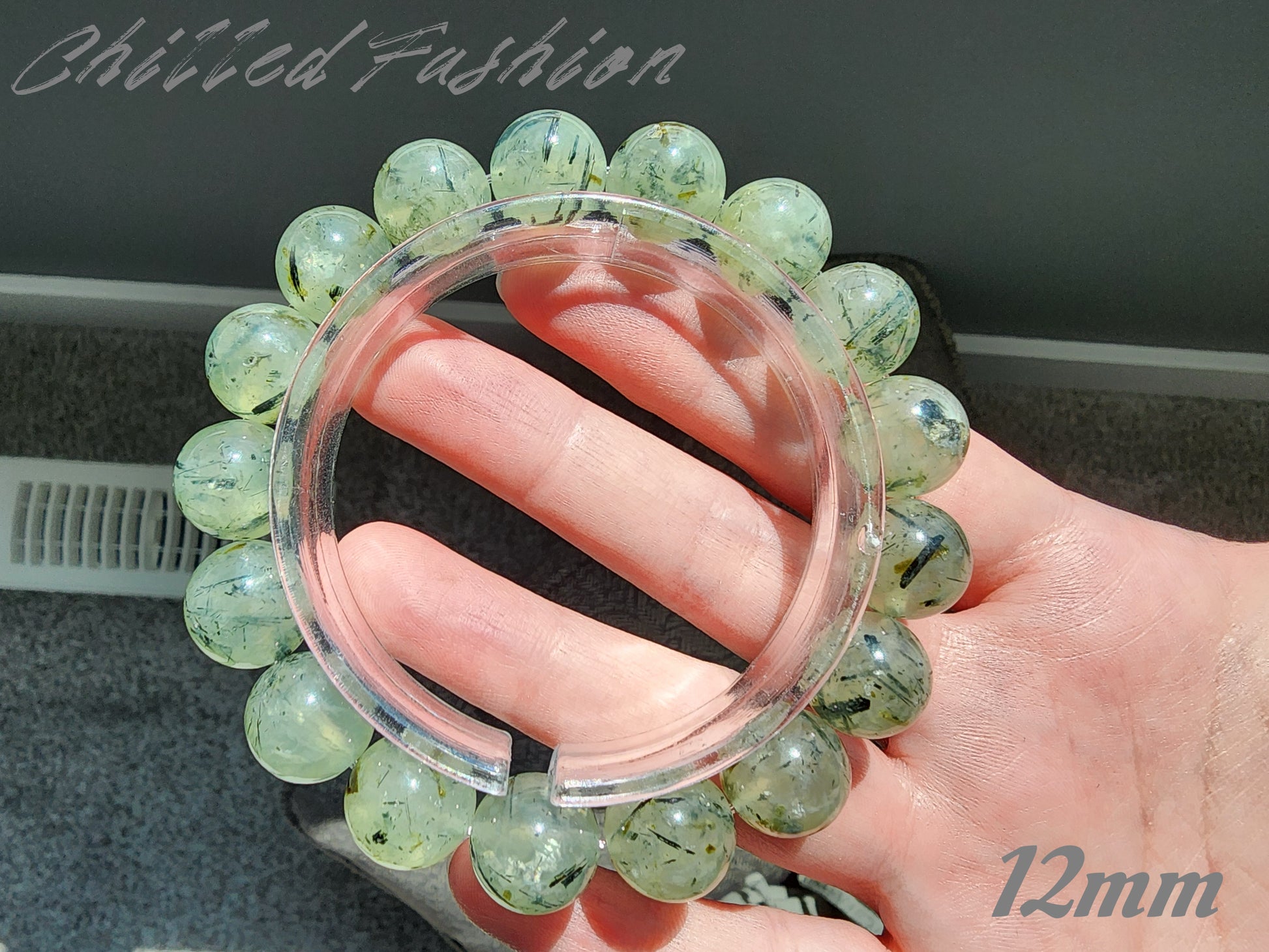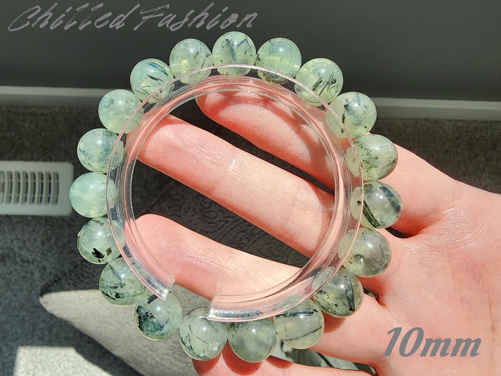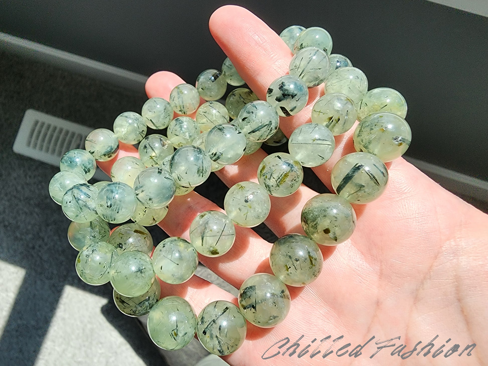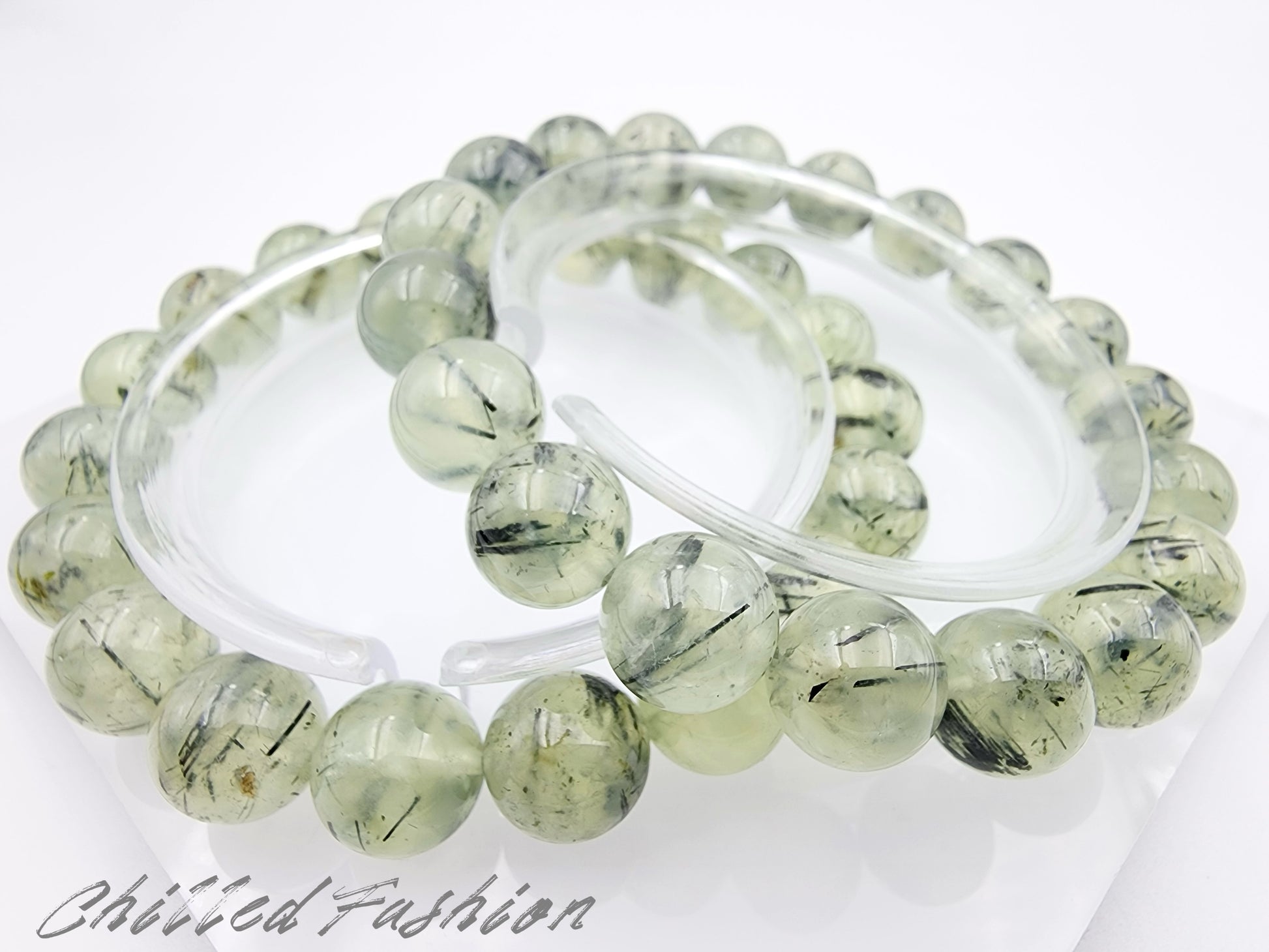 Discover the serene beauty and protective energy of our Prehnite with Black Rutiles Bracelets. Handcrafted with natural green Prehnite, these bracelets are adorned with striking black rutile inclusions, creating a unique and eye-catching design. Known for its calming properties, Prehnite enhances intuition and spiritual growth, while the black rutiles offer grounding and protection. Perfect for meditation, healing practices, or adding a touch of elegance to your everyday look, these bracelets are not only beautiful but also imbued with powerful metaphysical properties. Elevate your jewelry collection with these one-of-a-kind pieces and embrace the harmonious balance they bring.