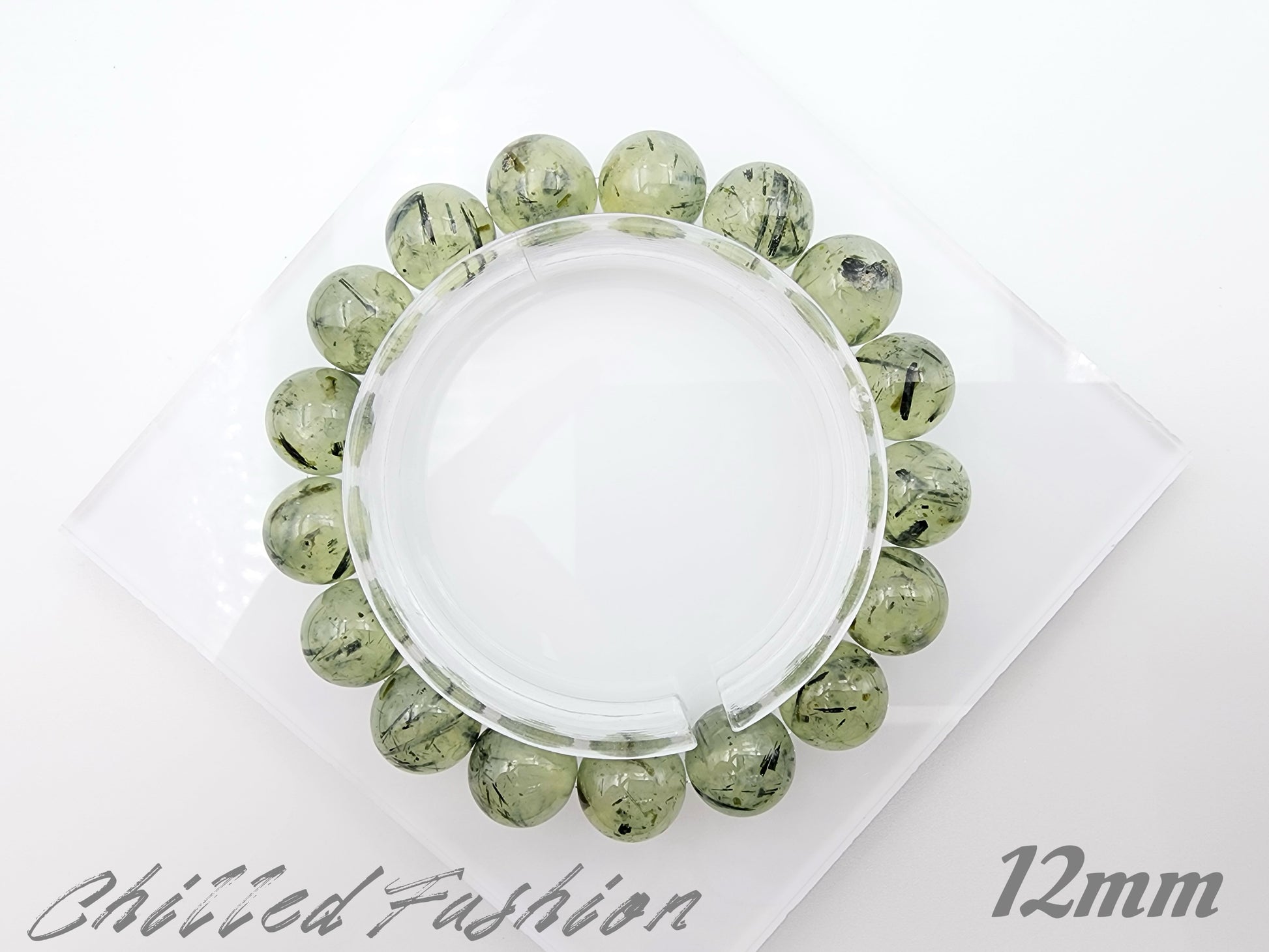 [Bracelet] Natural Prehnite with Black Rutiles Bracelet