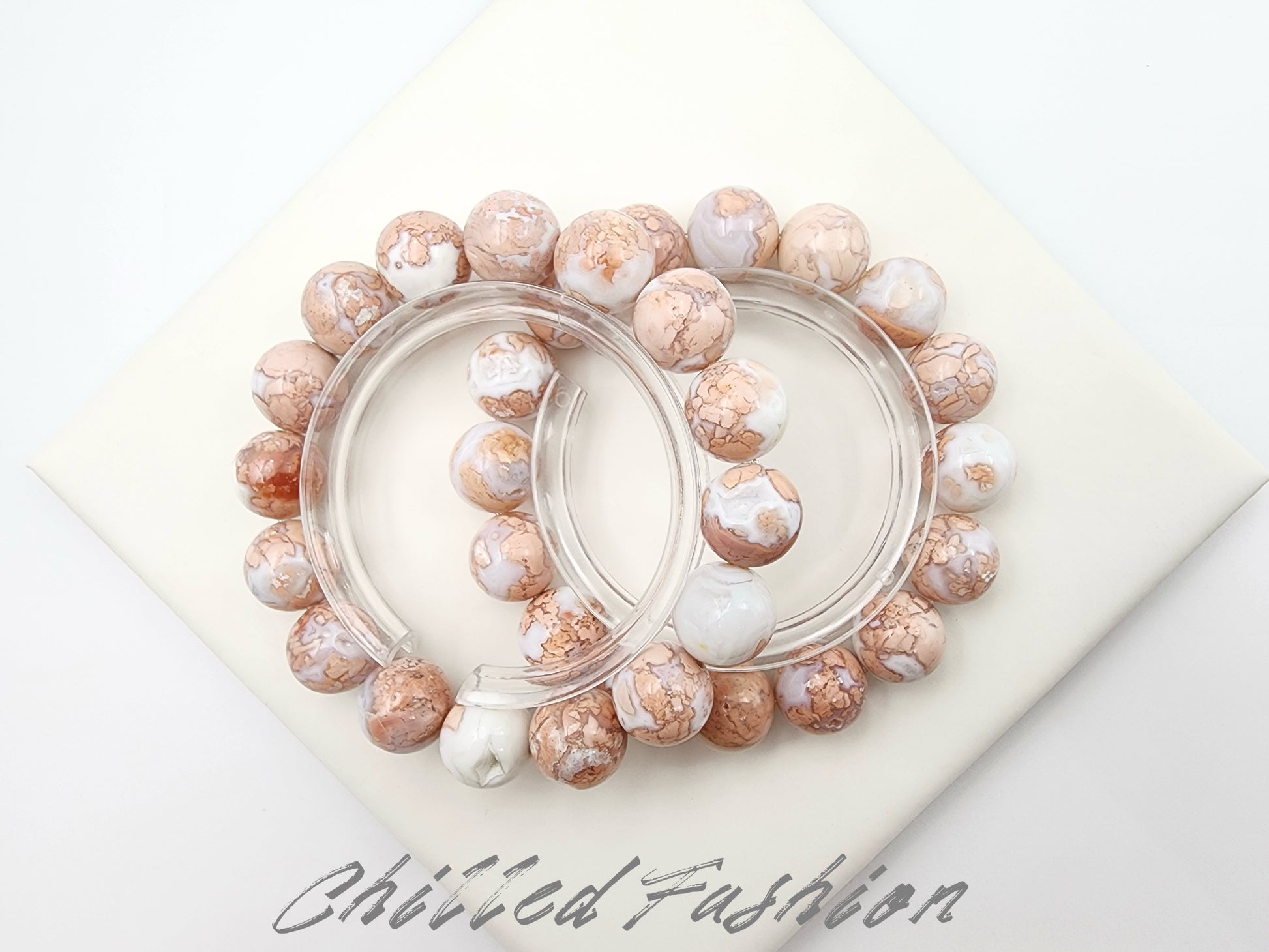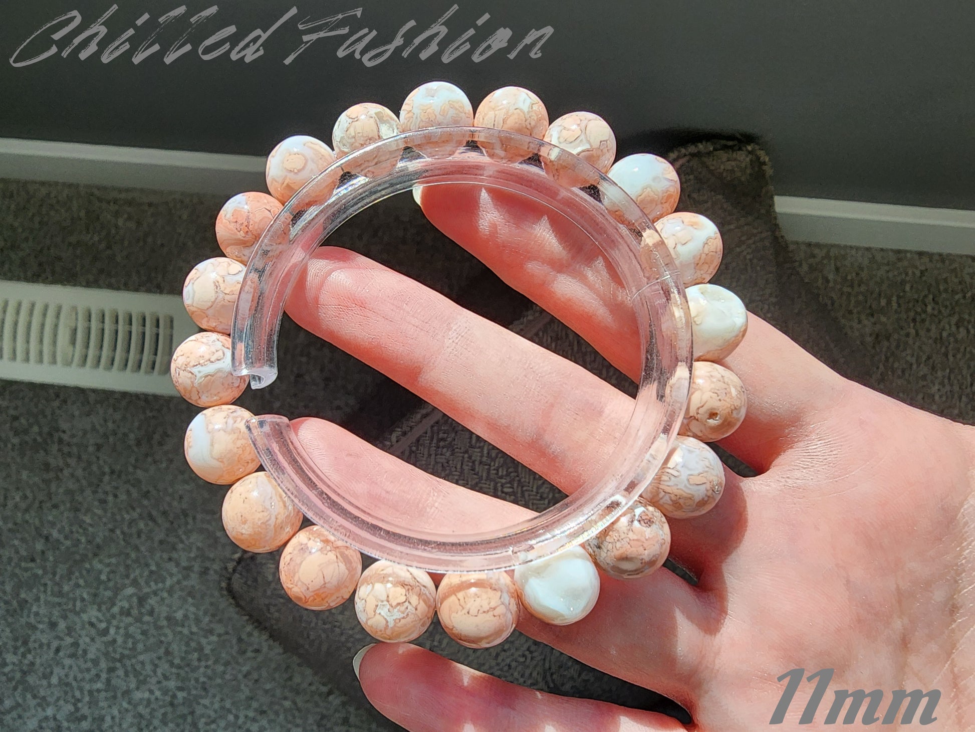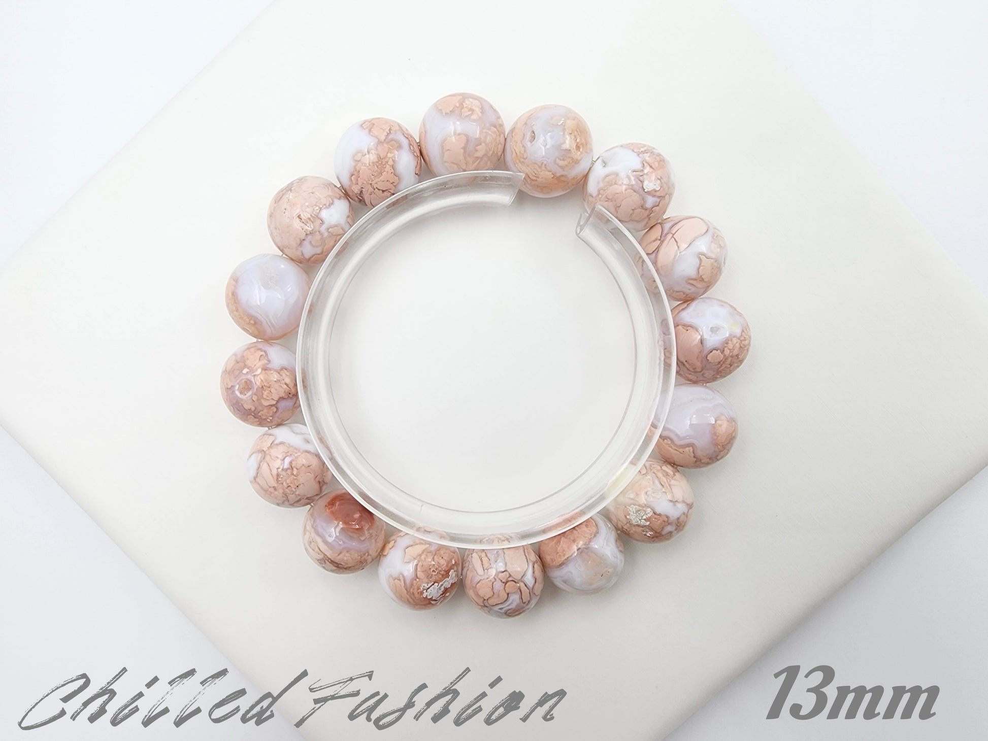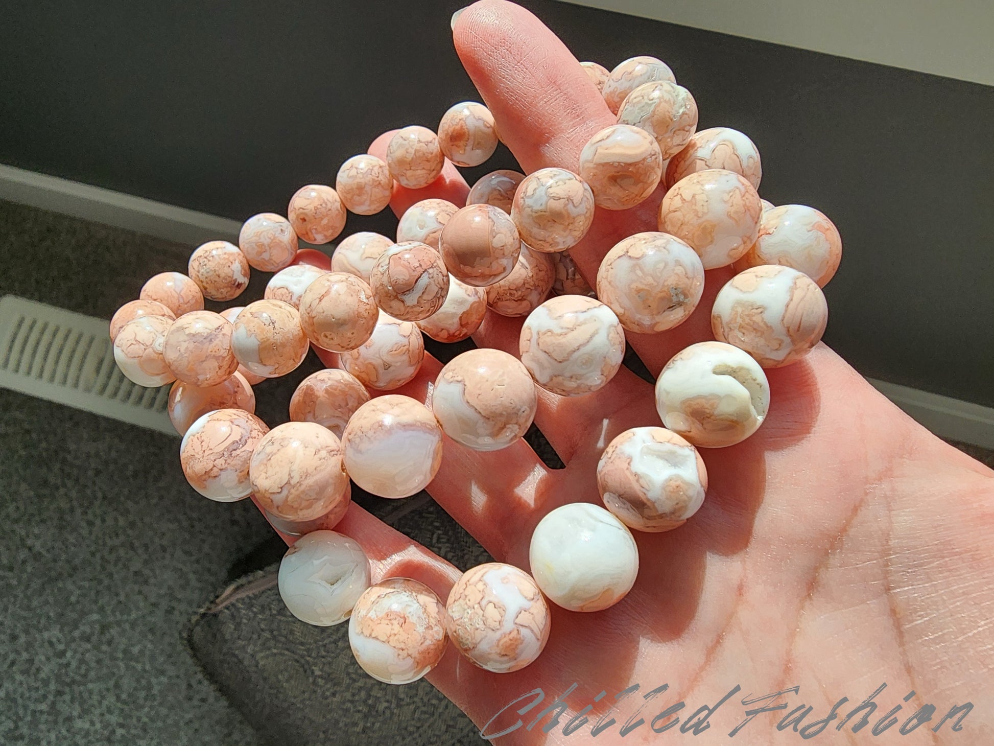 Embrace the soft elegance of this Peach Blossom Chalcedony bracelet, featuring natural gemstone beads in gentle shades of peachy pink and creamy white, each displaying delicate marbling unique to the stone. Often associated with emotional calm, inner grace, and feminine energy, Peach Chalcedony is cherished for its serene presence and warm, nurturing appearance. With its smooth, polished surface and soothing color palette, this bracelet is a beautiful reminder to slow down and stay centered. Whether worn as a daily accessory or gifted to someone special, it offers both understated beauty and meaningful symbolism—an ideal piece for those drawn to the quiet strength of nature’s crystals.