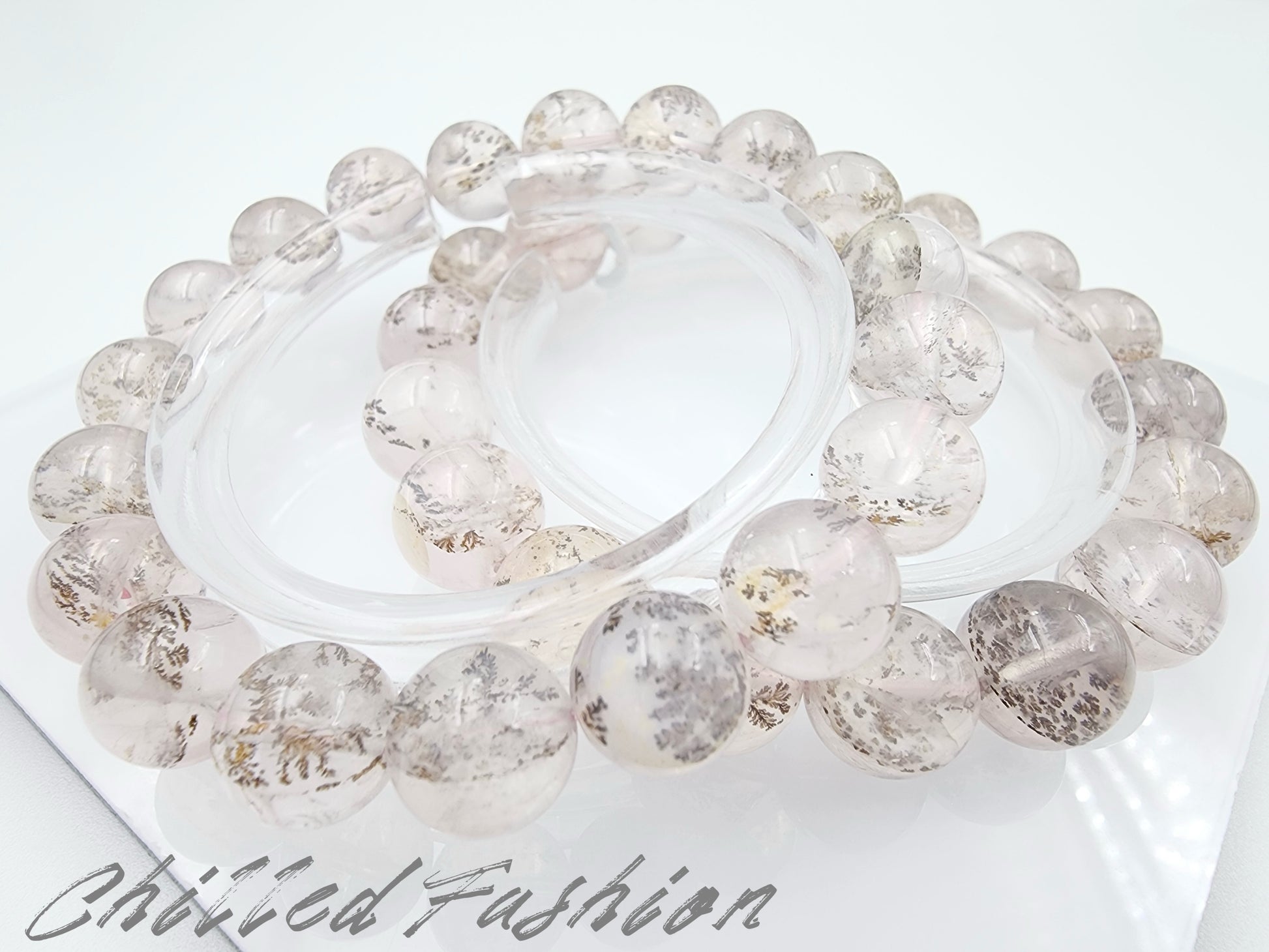 Embrace the beauty of nature with this Light Pink Dendritic Quartz bracelet! Each bead is unique, showcasing natural variations in color and form. You might find inclusions within the stones, and the surfaces may not be perfectly uniform – these are hallmarks of genuine gemstones, not imperfections. Celebrate the individuality of your bracelet, a one-of-a-kind piece that reflects the earth's natural wonders.