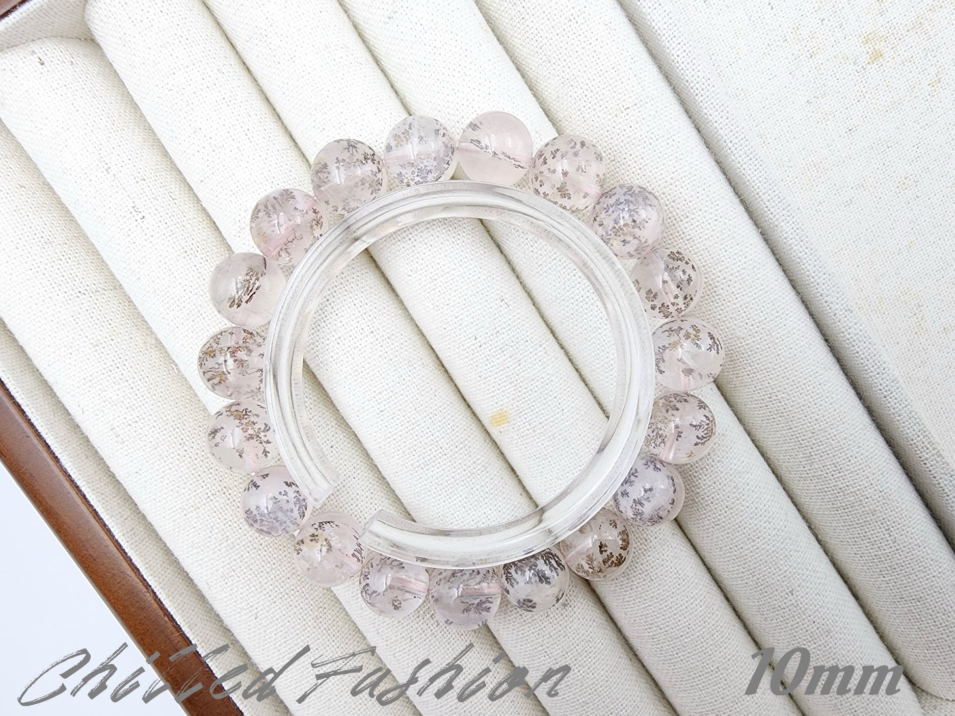 [Bracelet] Pink Dendritic Quartz Crystal Bracelet - Natural Stone Jewelry