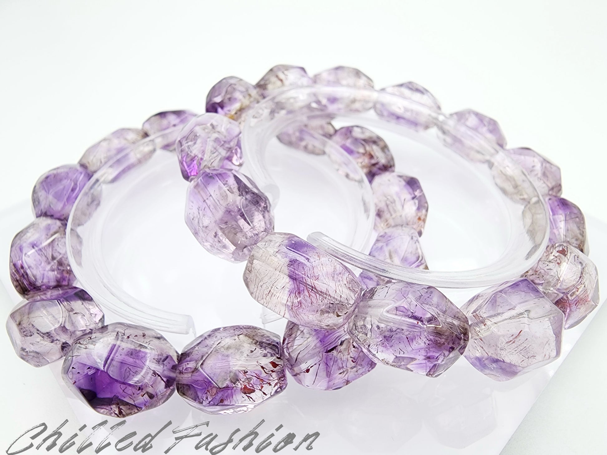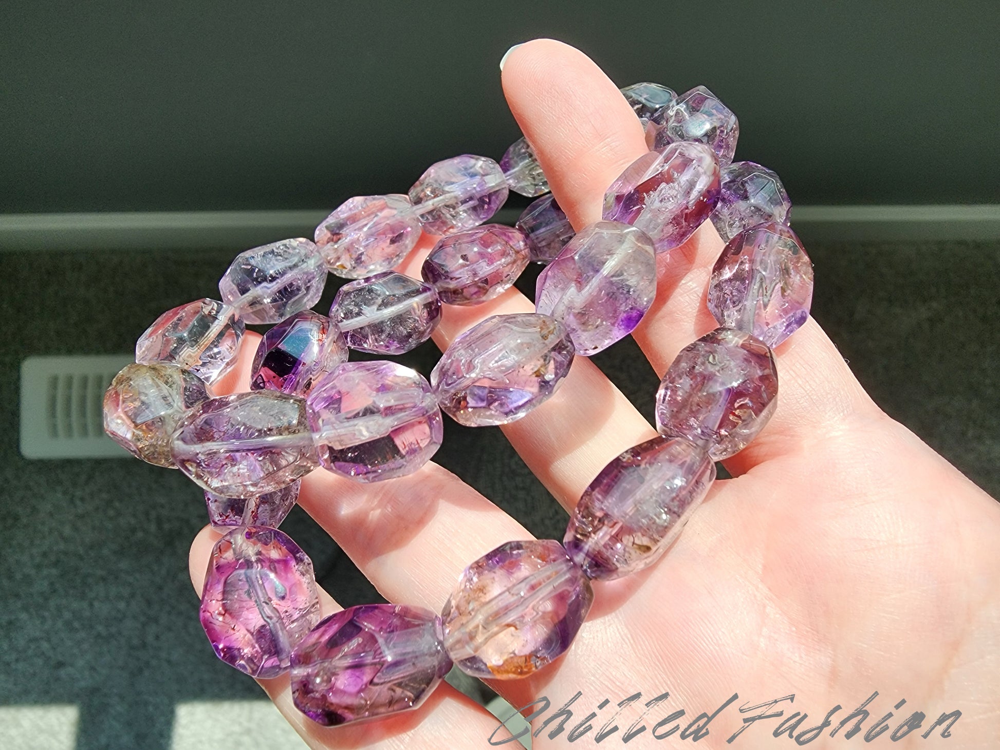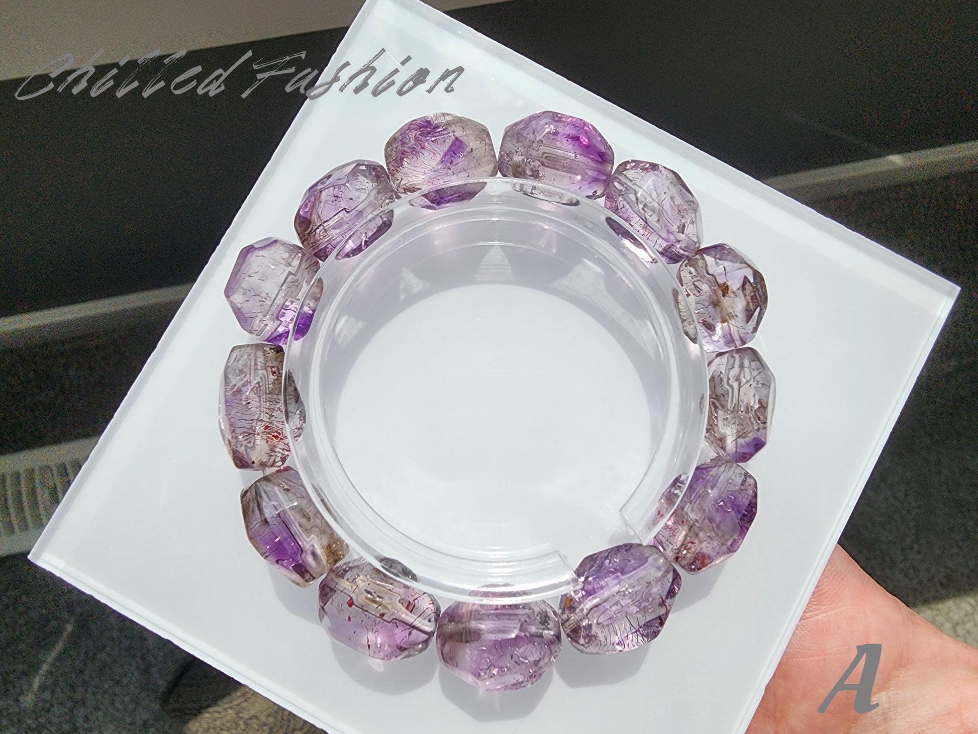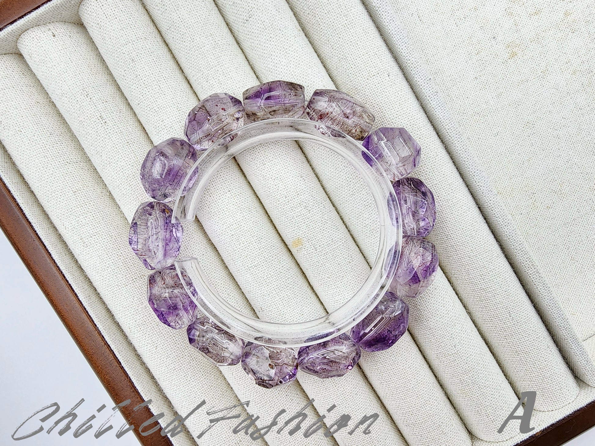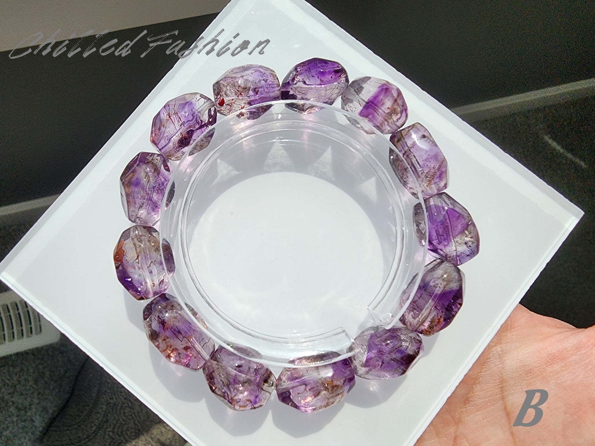 [Bracelet] Purple Super Seven Quartz Bracelet – Faceted Nugget Cut with Red Fire Streaks