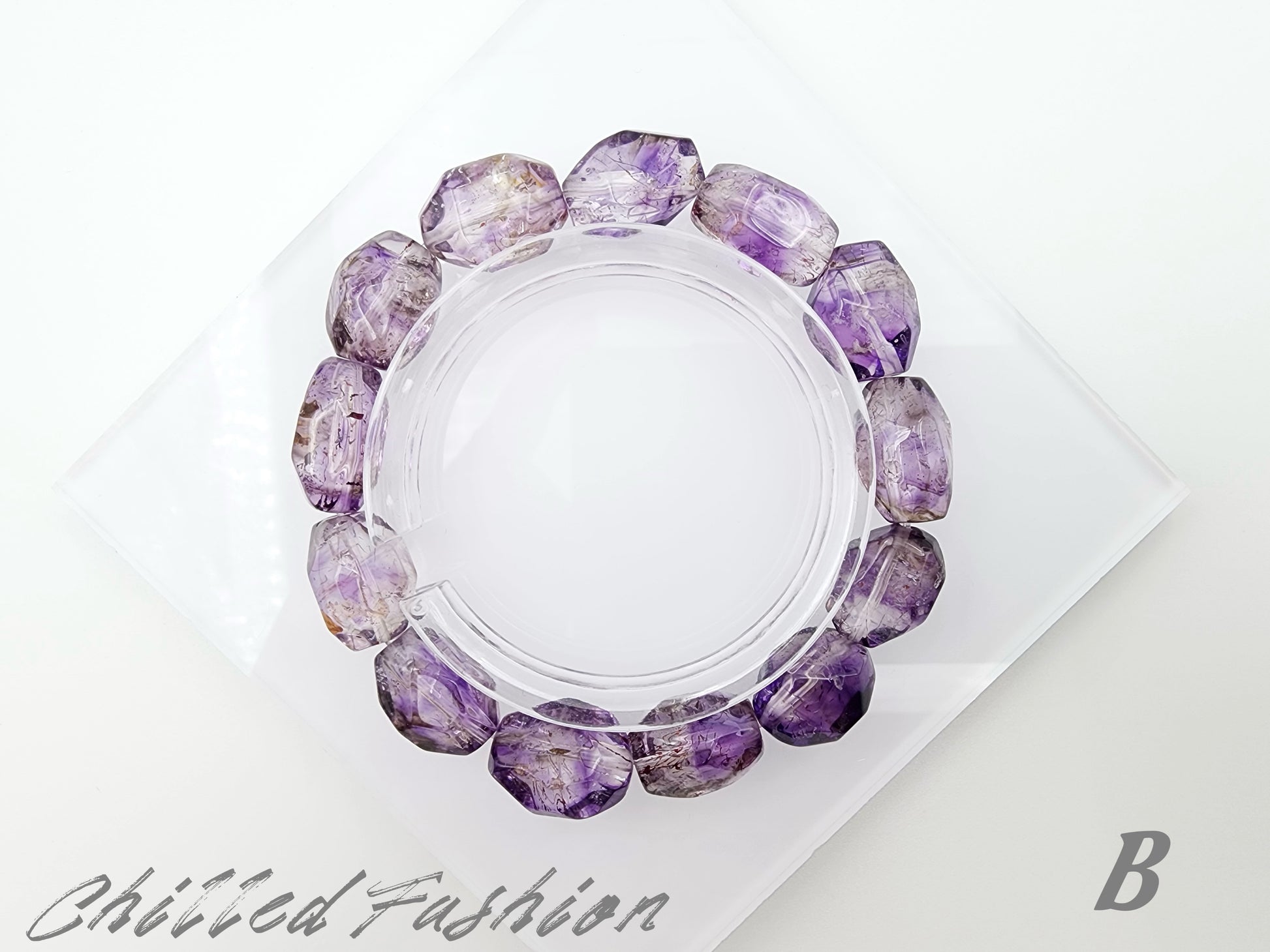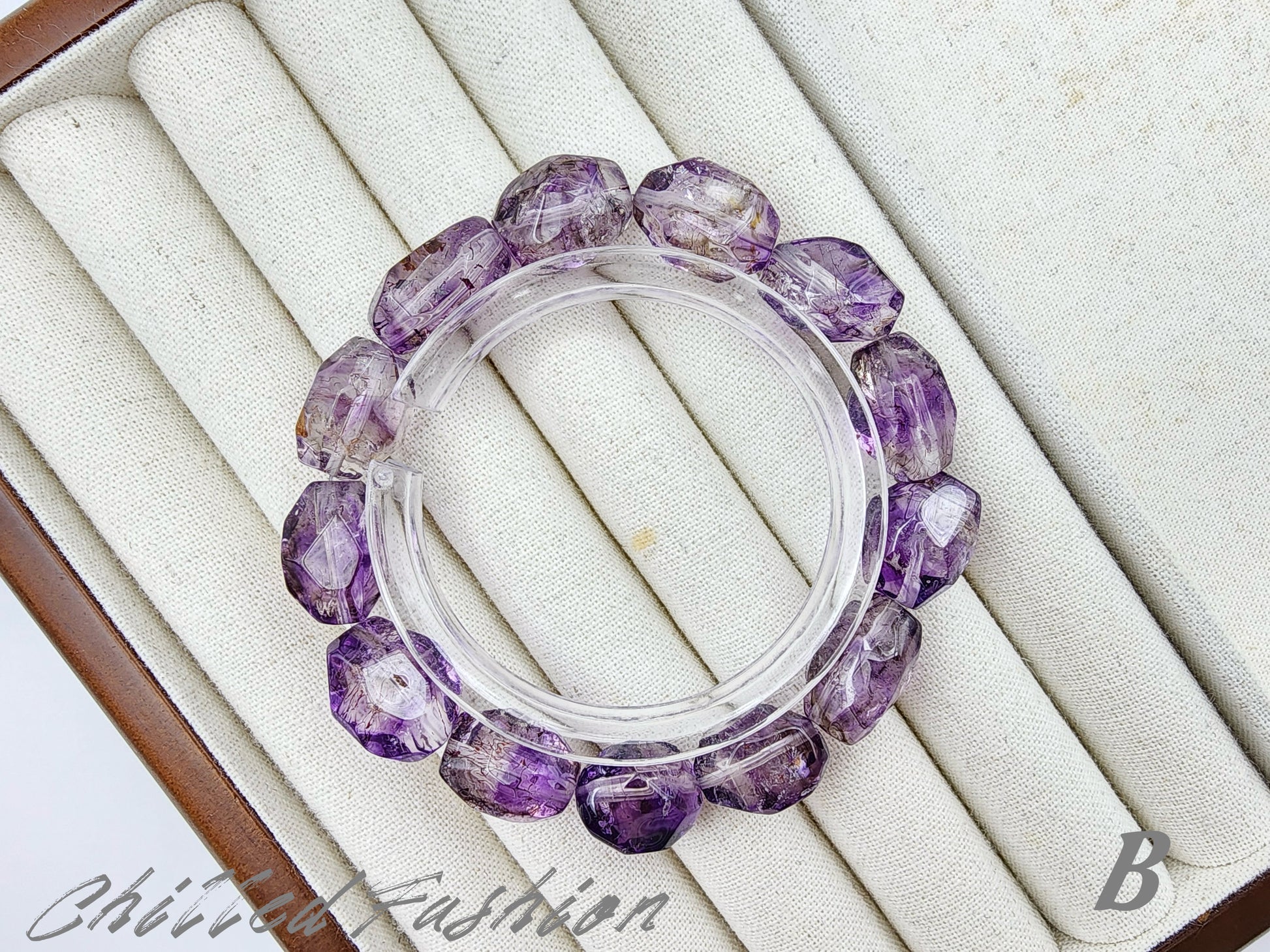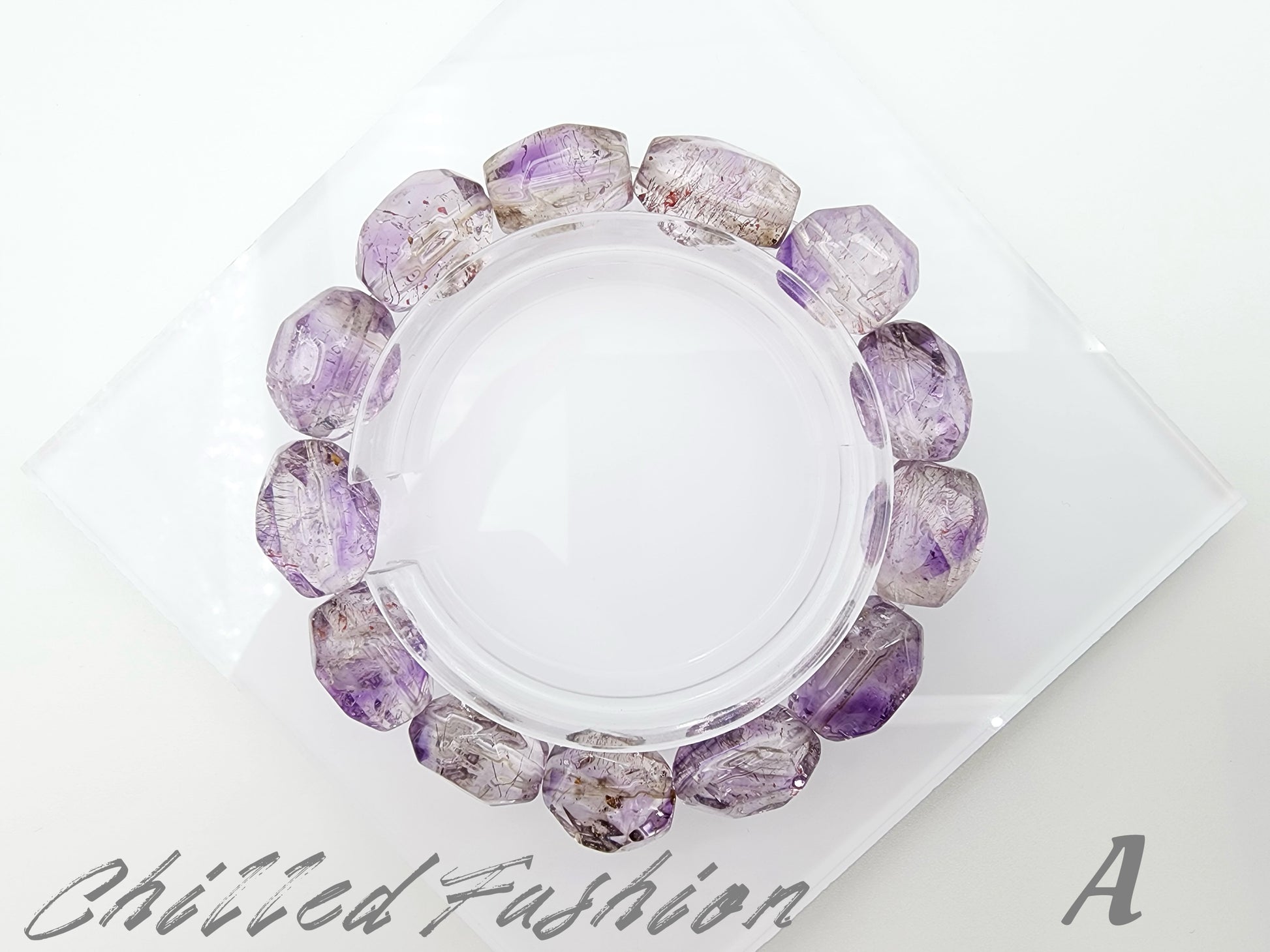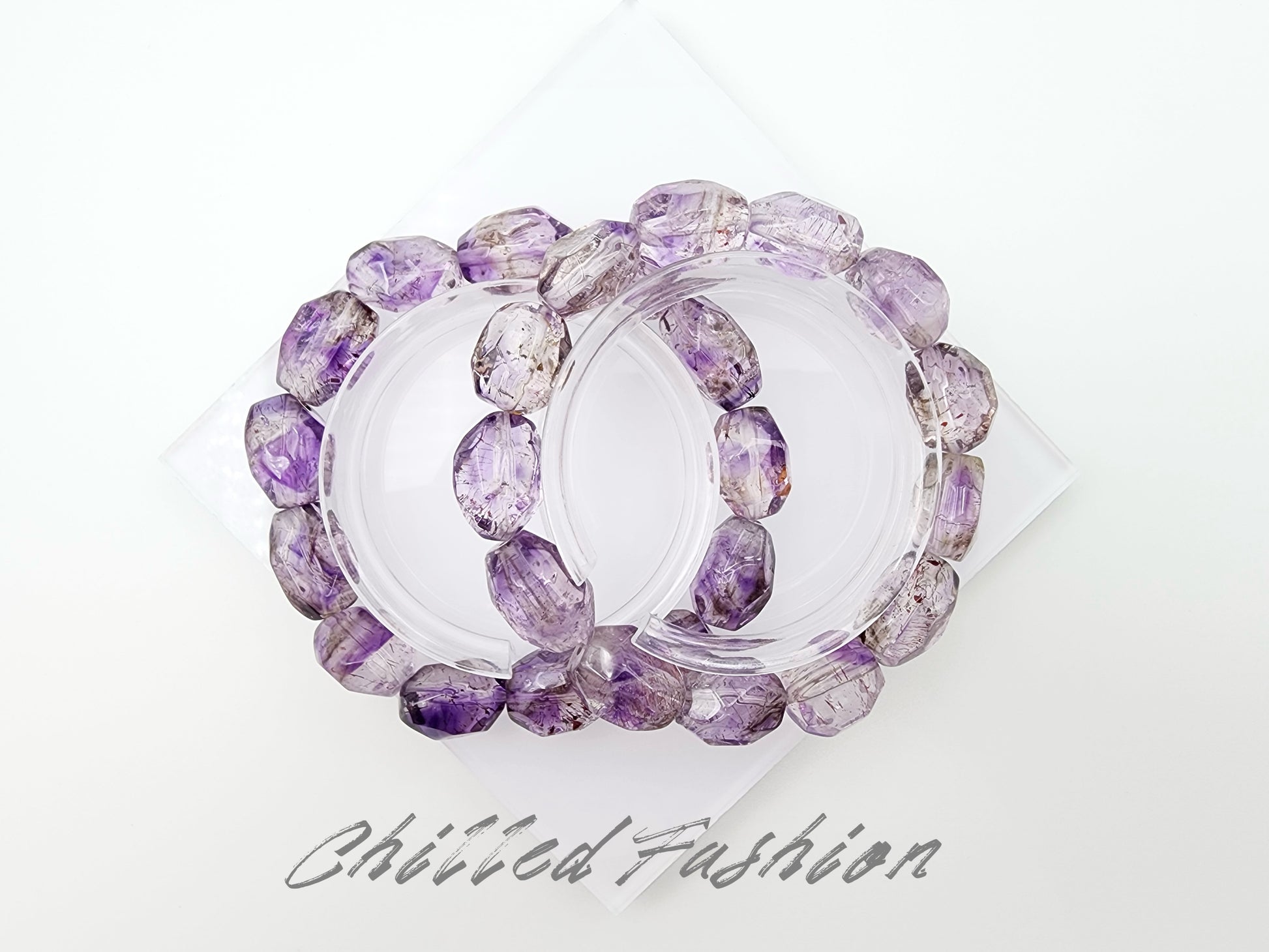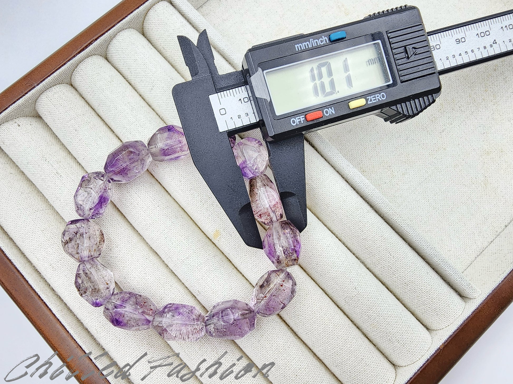 [Bracelet] Purple Super Seven Quartz Bracelet – Faceted Nugget Cut with Red Fire Streaks