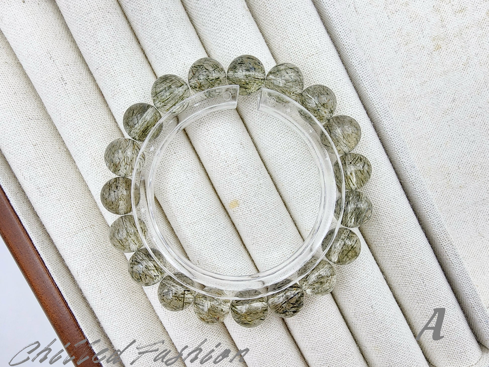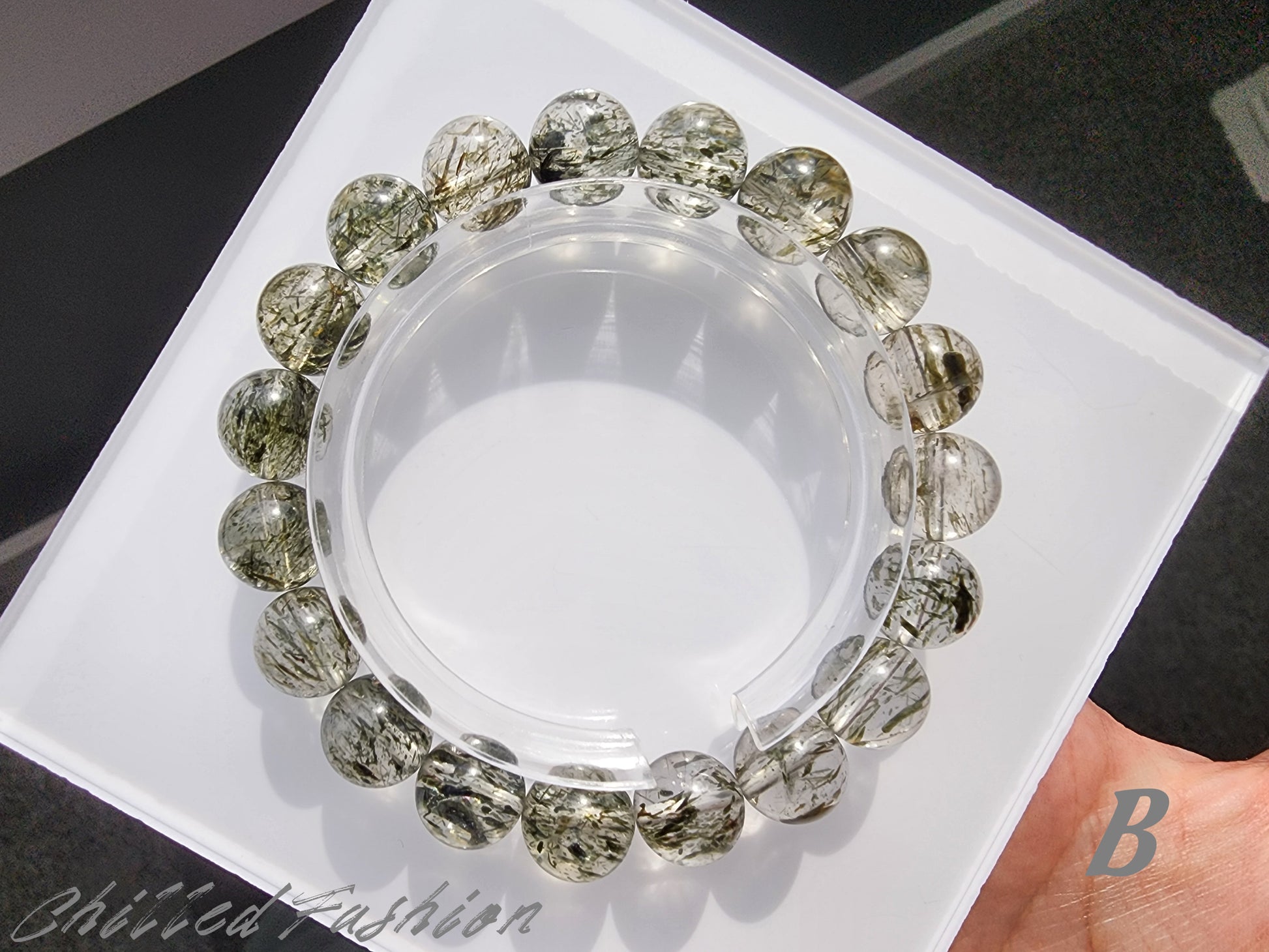 [Bracelet] 10mm Quartz Bracelet with Green Tourmaline Needles - Wealth & Abundance