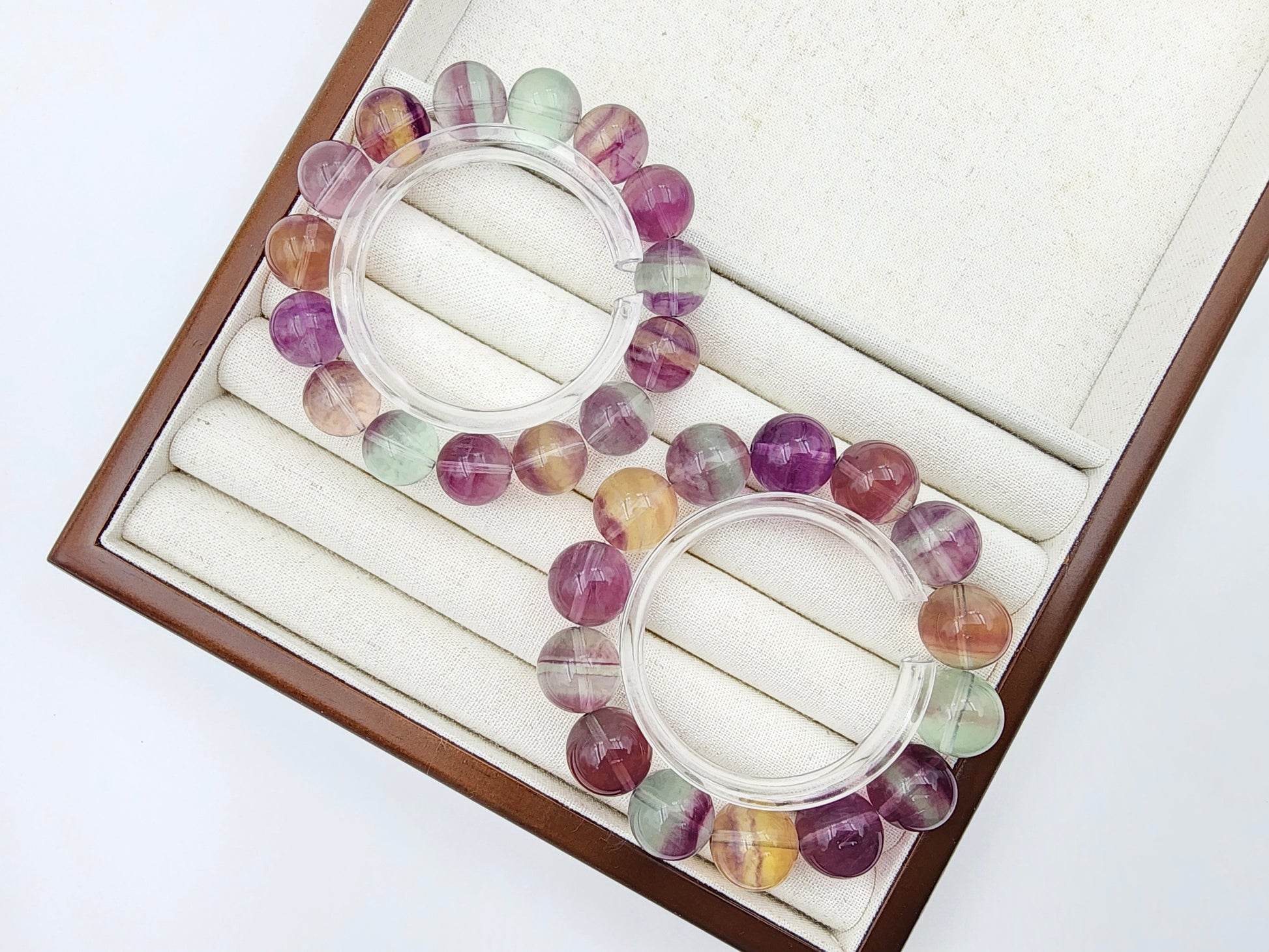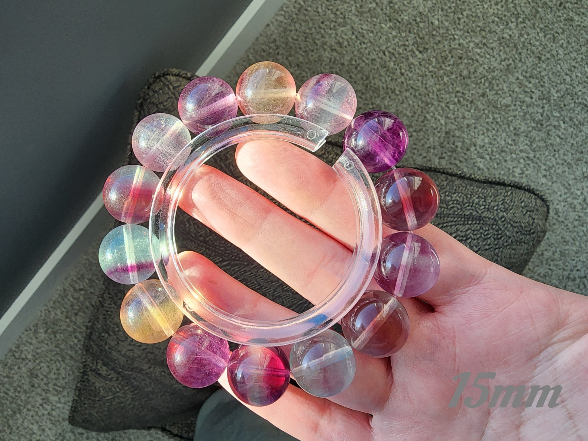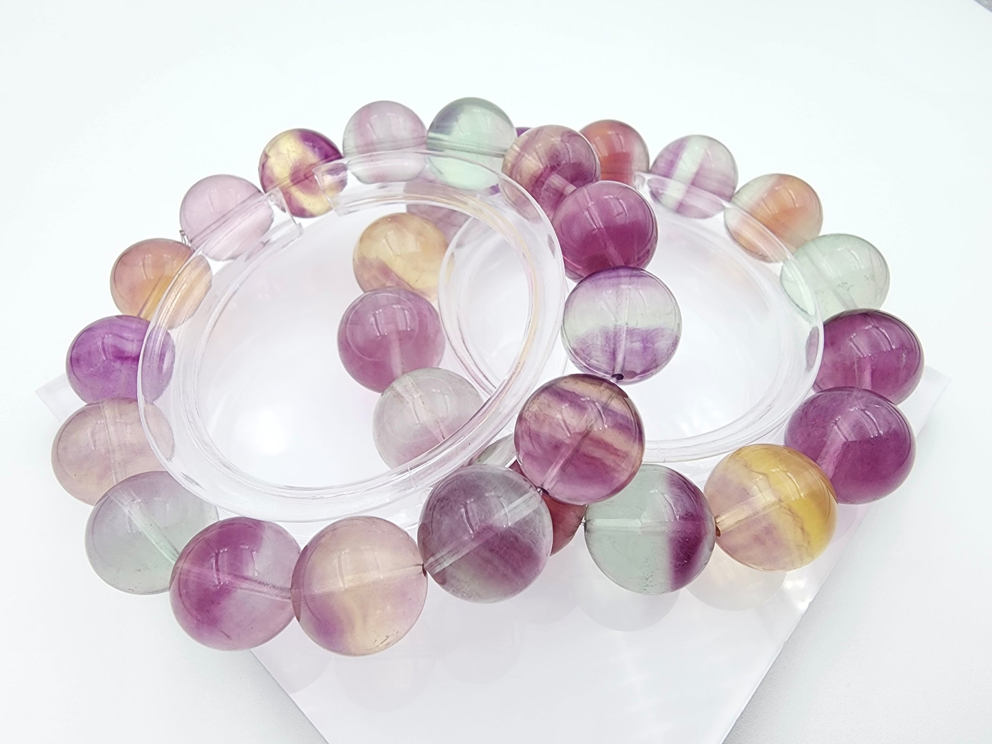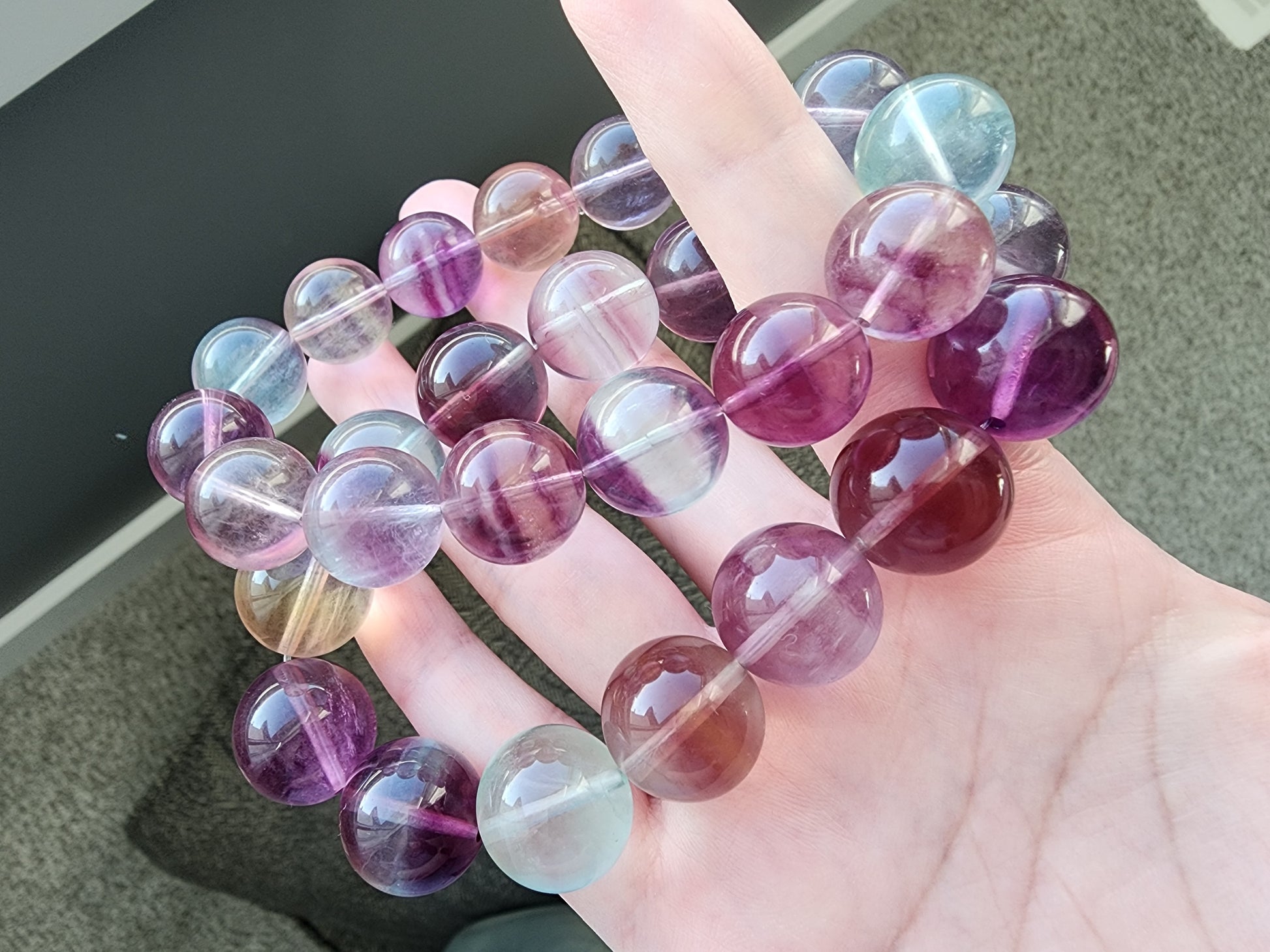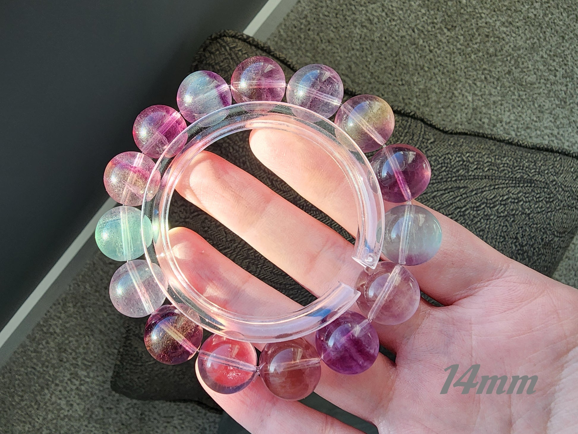 Please Note: These Unicorn Rainbow Fluorite bracelets are made from natural Fluorite gemstones, so each bead may vary in color, translucency, and pattern, making every piece one of a kind. Some beads may have slight internal inclusions or natural surface imperfections, which are part of the stone’s organic beauty and do not affect its quality or durability. Due to differences in lighting and screen settings, the actual colors may appear slightly different from the photos. Please handle your bracelet with care, as Fluorite is a delicate gemstone. If you have any questions, feel free to reach out before purchasing!