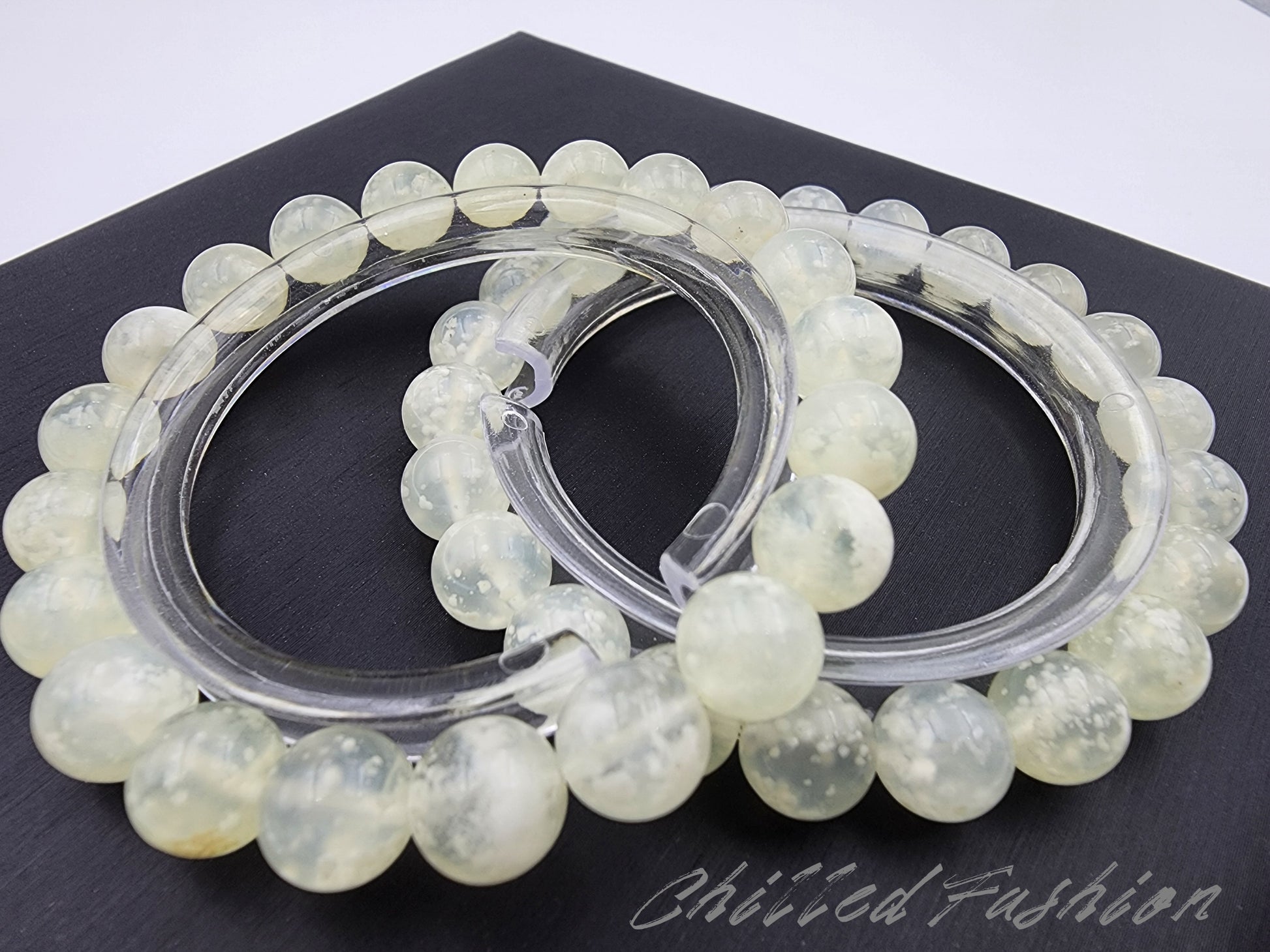 Embrace the beauty of nature's handiwork! This Snowflake Jade bracelet features genuine stones with unique variations in color and pattern. Each bead boasts its own character, with natural inclusions and surface variations that celebrate the stone's authenticity. Please note that no two bracelets will be exactly alike, making yours a one-of-a-kind treasure.